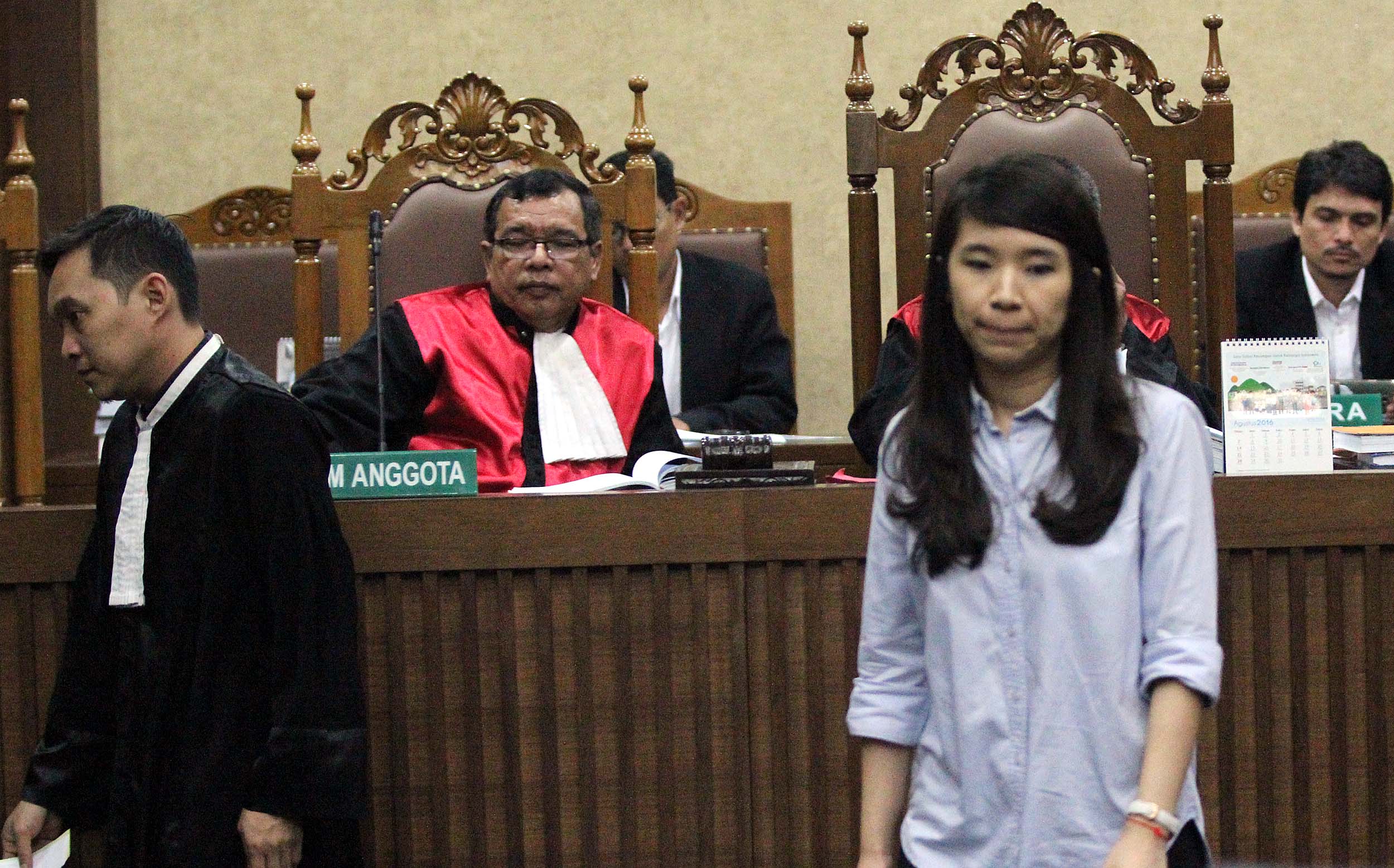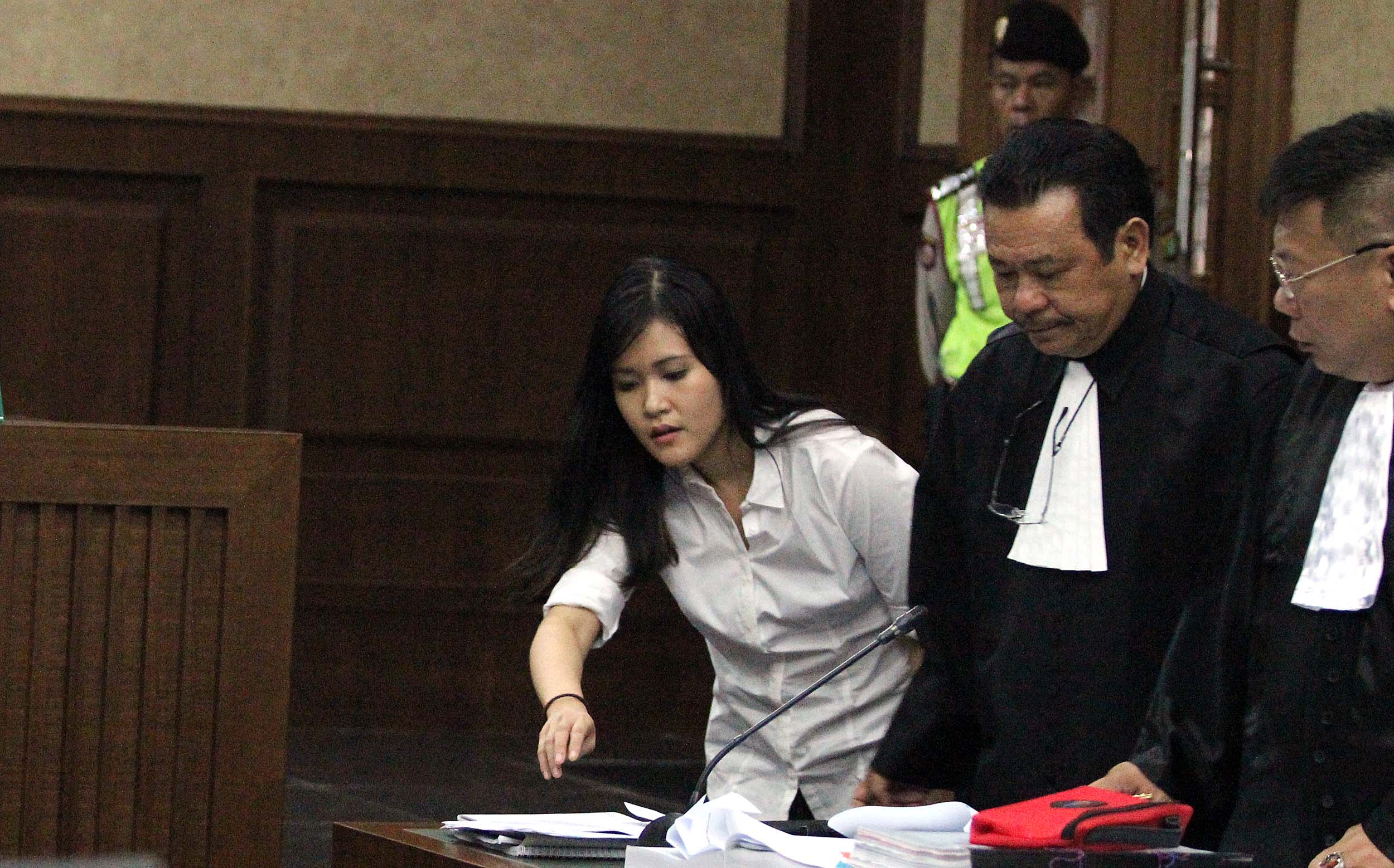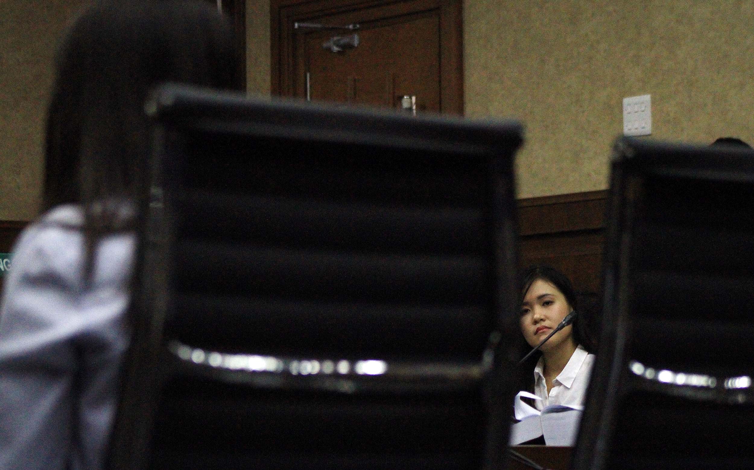 Saksi kunci, Hani alias Juwita Boon saat menjadi saksi dalam sidang lanjutan kematian Wayan Mirna Salihin dengan terdakwa Jessica di Pengadilan Negeri, Jakarta Pusat, Rabu (13/7/2016). Dalam sidang tersebut, Hani menceritakan kondisi Mirna setelah meminum es kopi Vietnam di kafe Olivier.