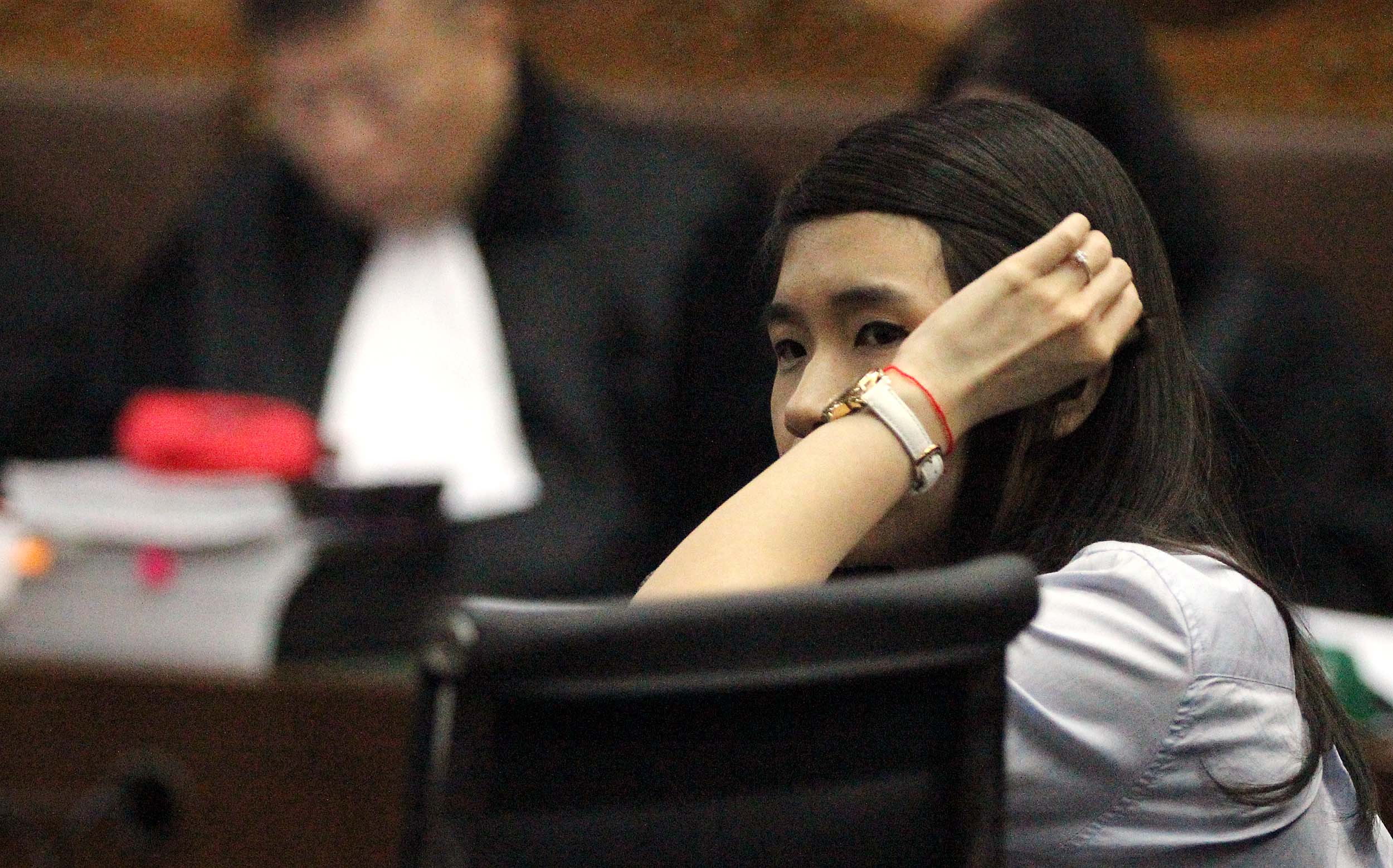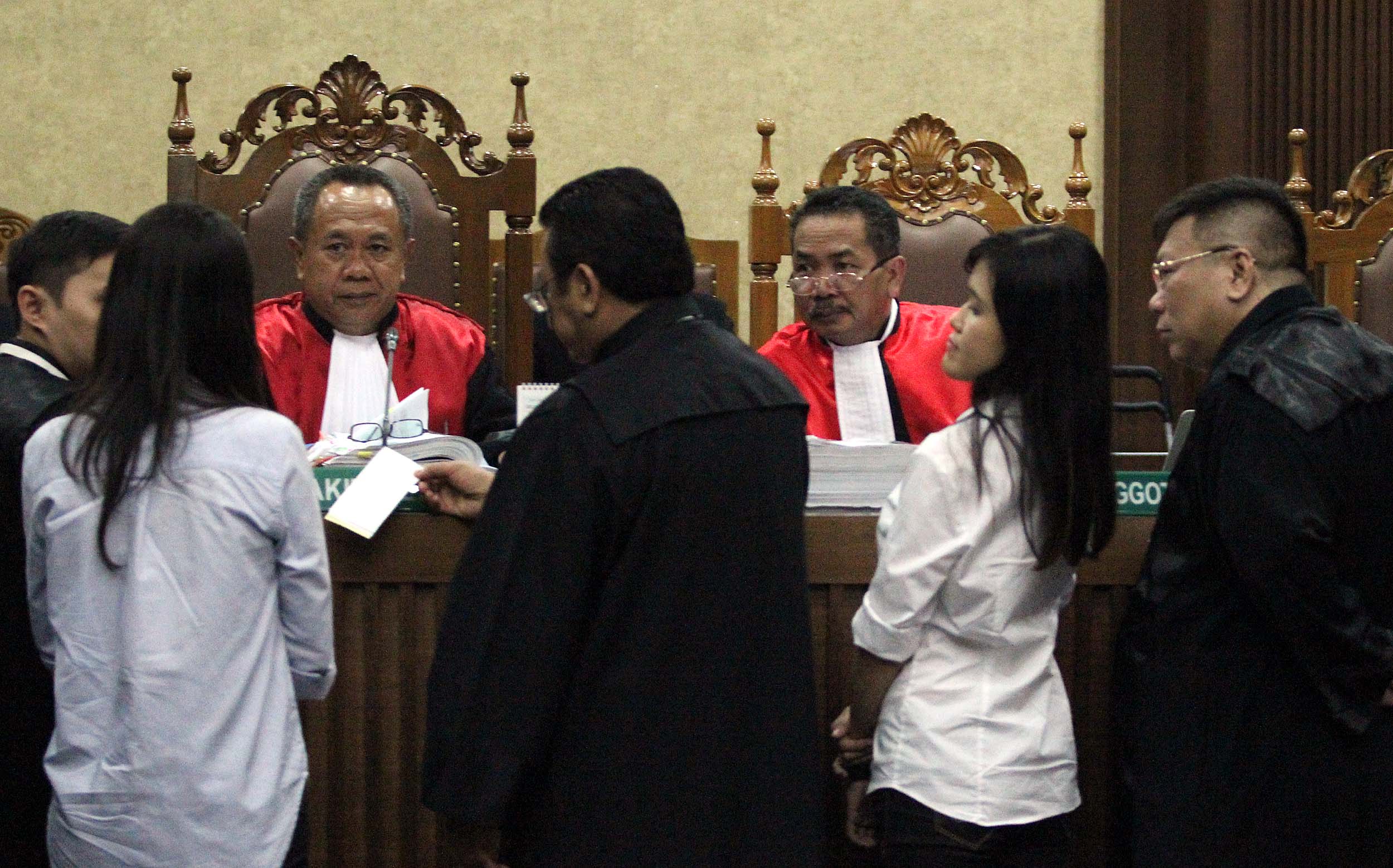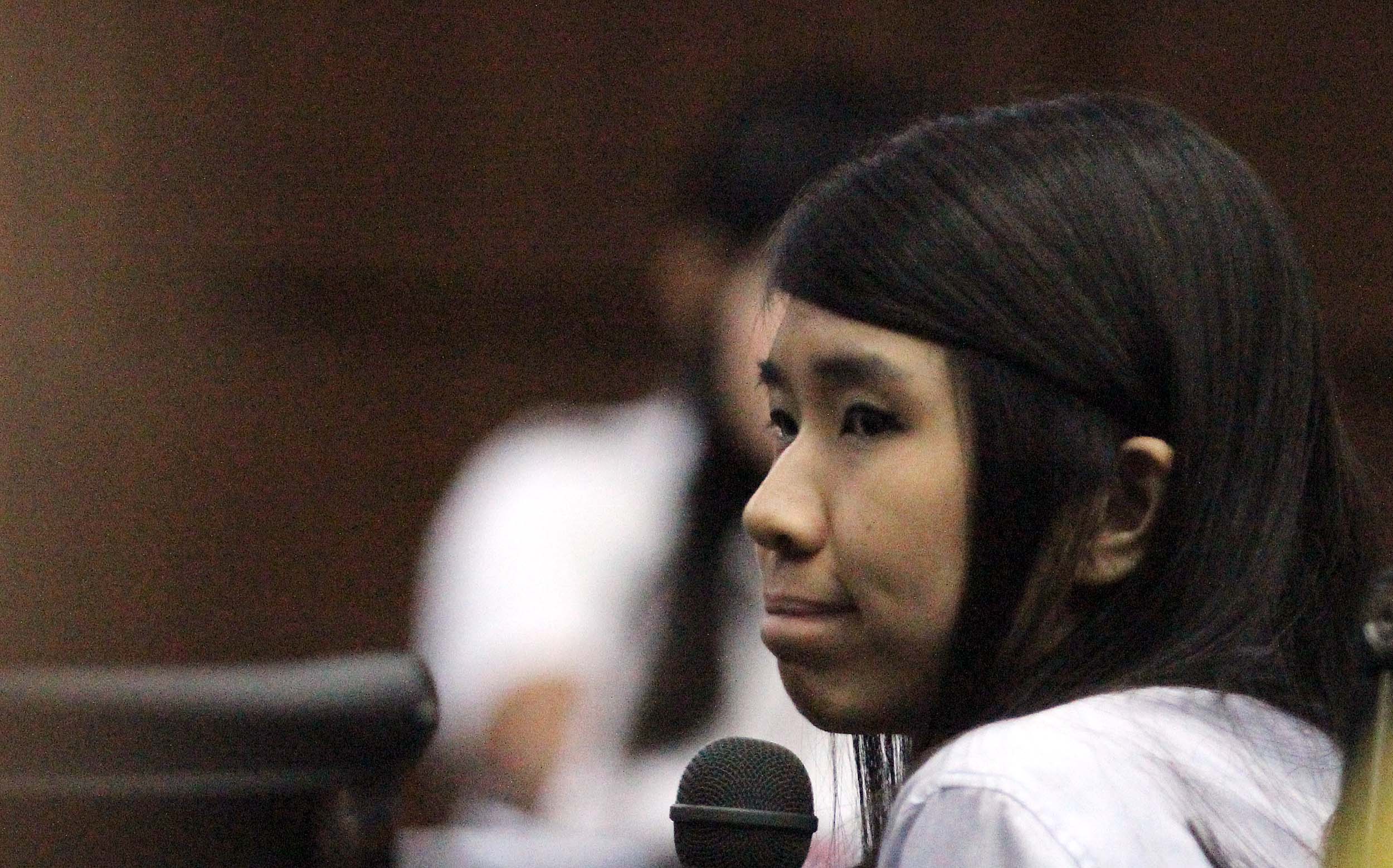 Saksi kunci, Hani alias Juwita Boon saat menjadi saksi dalam sidang lanjutan kematian Wayan Mirna Salihin dengan terdakwa Jessica di Pengadilan Negeri, Jakarta Pusat, Rabu (13/7/2016). Dalam sidang tersebut, Hani menceritakan kondisi Mirna setelah meminum es kopi Vietnam di kafe Olivier.