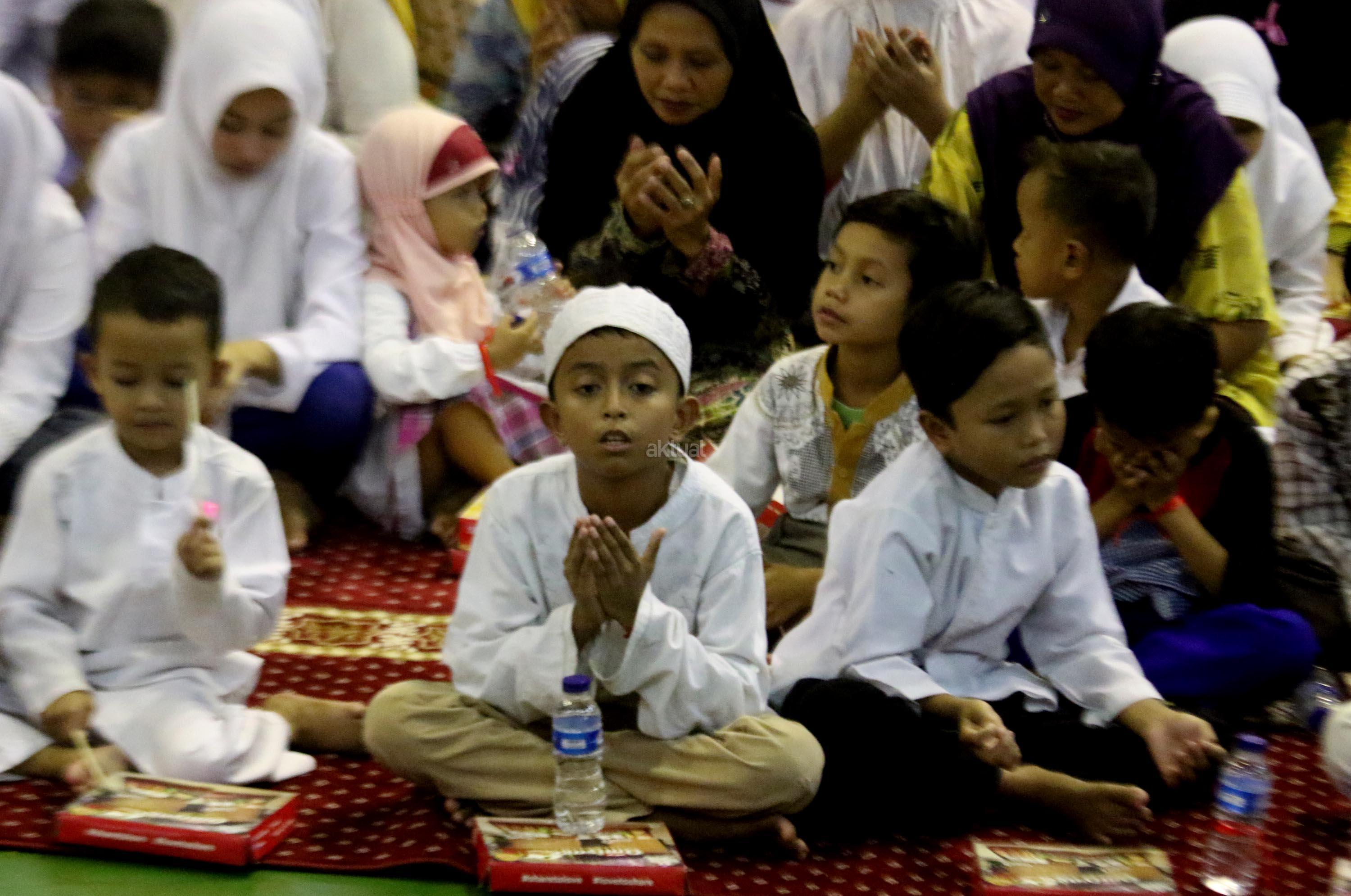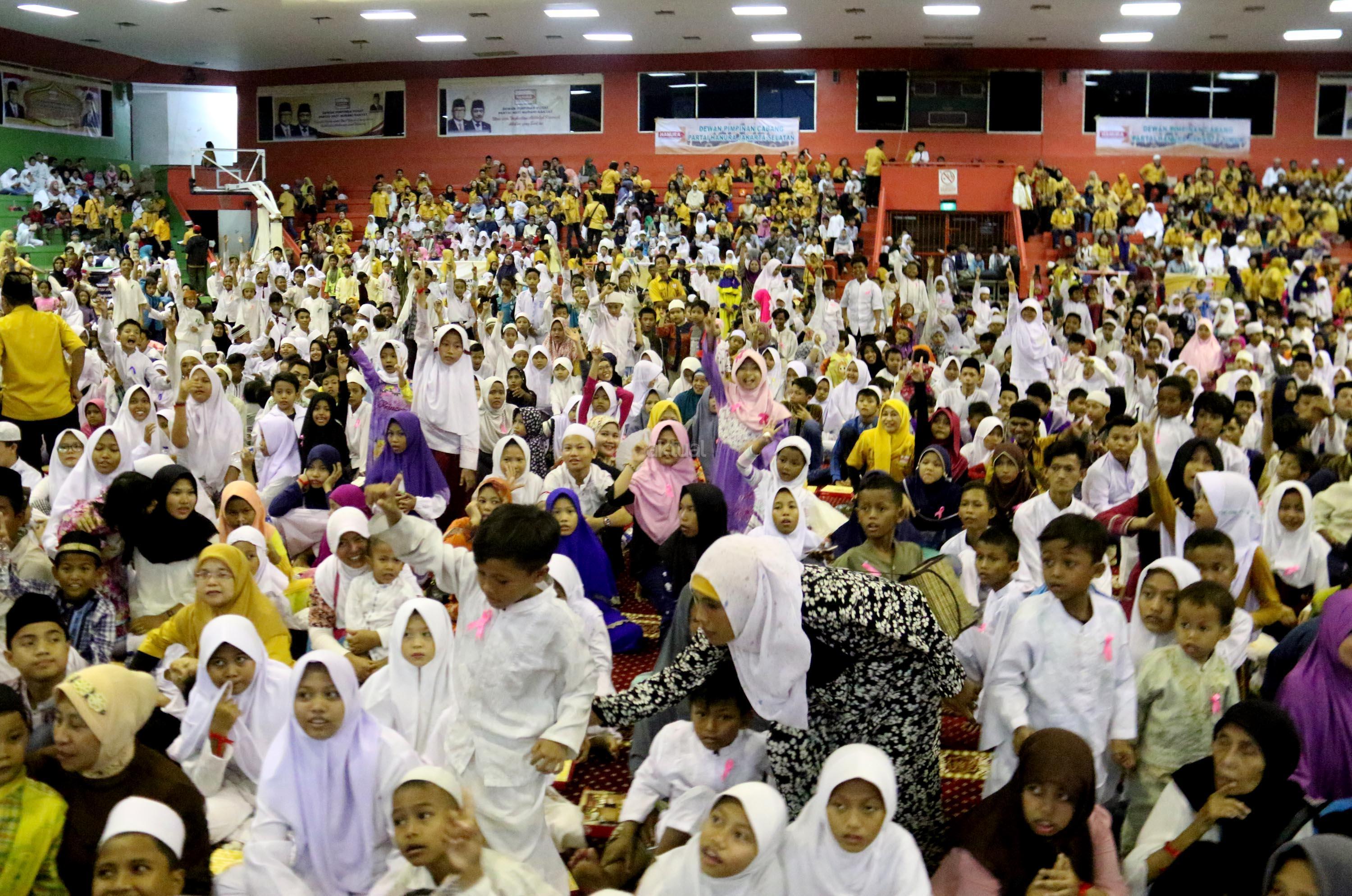 Ribuan anak yatim yang hadir di acara Buka Bersama Partai Hanura di Jakarta, Jumat (16/6/2017). Dalam acara tersebut Partai Hanura memberikan santunan uang dan bingkisan kepada sedikitnya 1000 anak Yatim-Piatu dan Dhuafa se Jakarta, agar dapat memenuhi kebutuhan untuk merayakan Lebaran Idul Fitri 1438 H. AKTUAL/Munzir