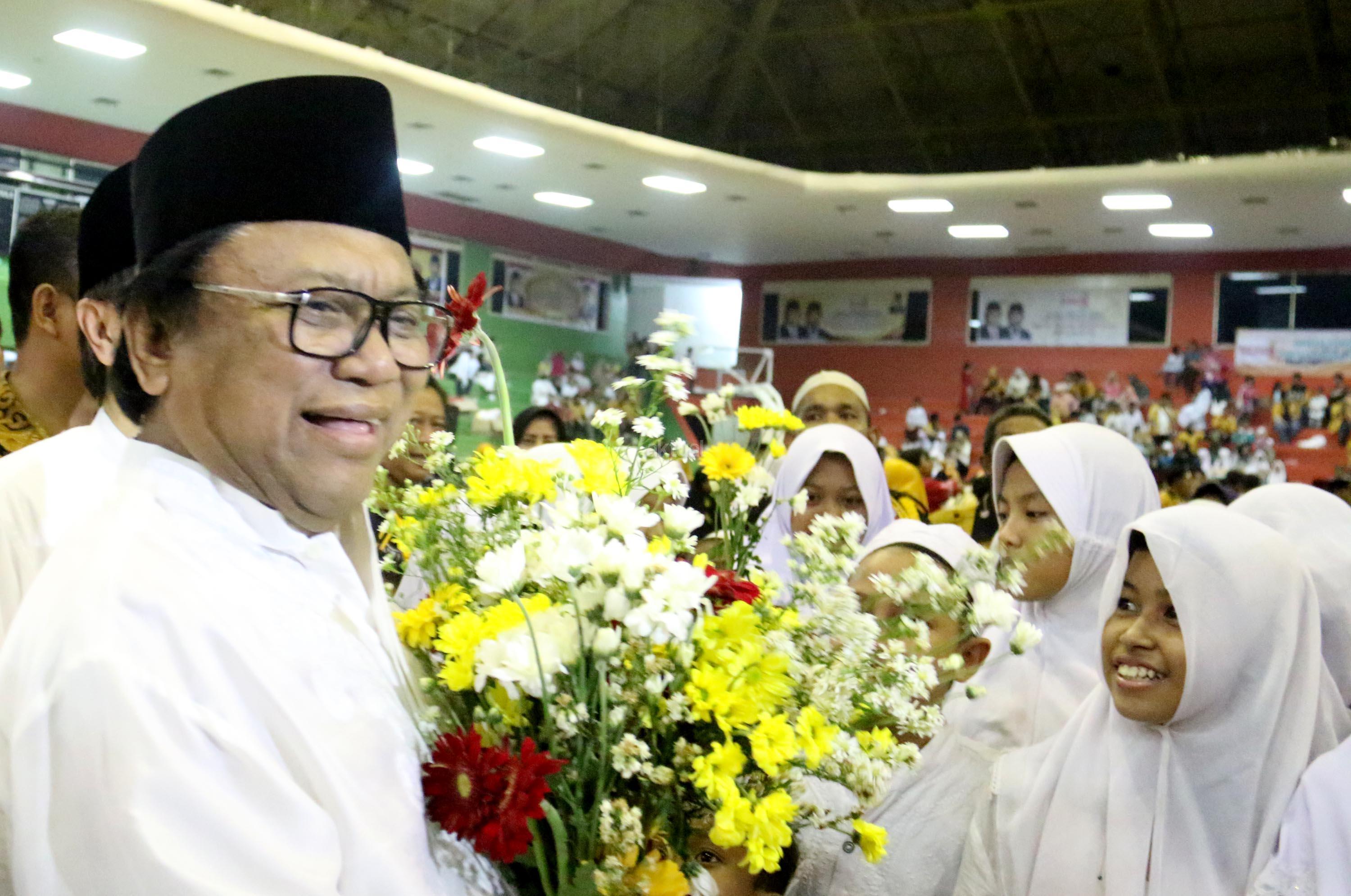 Ketua Umum DPP Partai Hanura Oesman Sapta Odang (kedua dari kiri) didampingi Sekjen Partai Hanura Syarifuddin Suding (kiri), menerima bunga dari Anak-anak Yatim-Piatu dan Dhuafa, saat “Silahturahmi dan Buka Puasa Bersama DPP Partai Hanura bersama Anak Yatim”, di Jakarta, Jumat (16/6/2017). Dalam acara tersebut Partai Hanura memberikan santunan uang dan bingkisan kepada sedikitnya 1000 anak Yatim-Piatu dan Dhuafa se Jakarta, agar dapat memenuhi kebutuhan untuk merayakan Lebaran Idul Fitri 1438 H. AKTUAL/Munzir