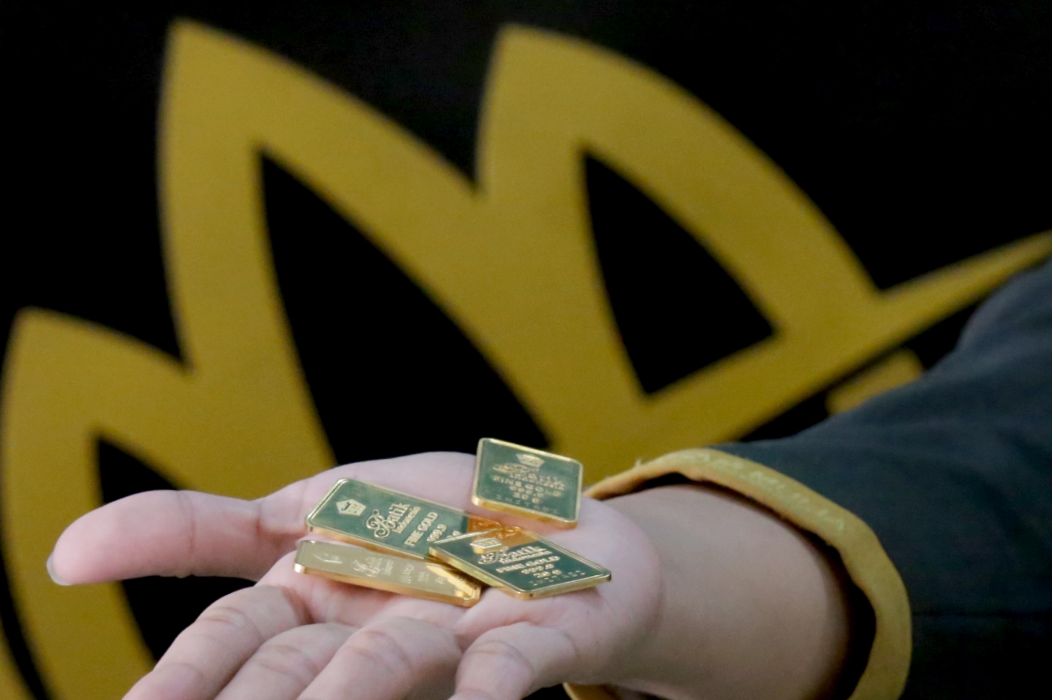 Seorang karyawan PT Aneka Tambang Tbk (Antam) memperlihatkan emas batangan di gerai Antam, Gedung Sarinah, Jakarta Pusat, Selasa (27/11/2018). Logam mulia atau emas batangan milik Antam hari ini dijual Rp 652.000/gram. Nilai ini turun dibandingkan Senin (26/11/2018) di Rp 653.000/gram. AKTUAL/Tino Oktaviano