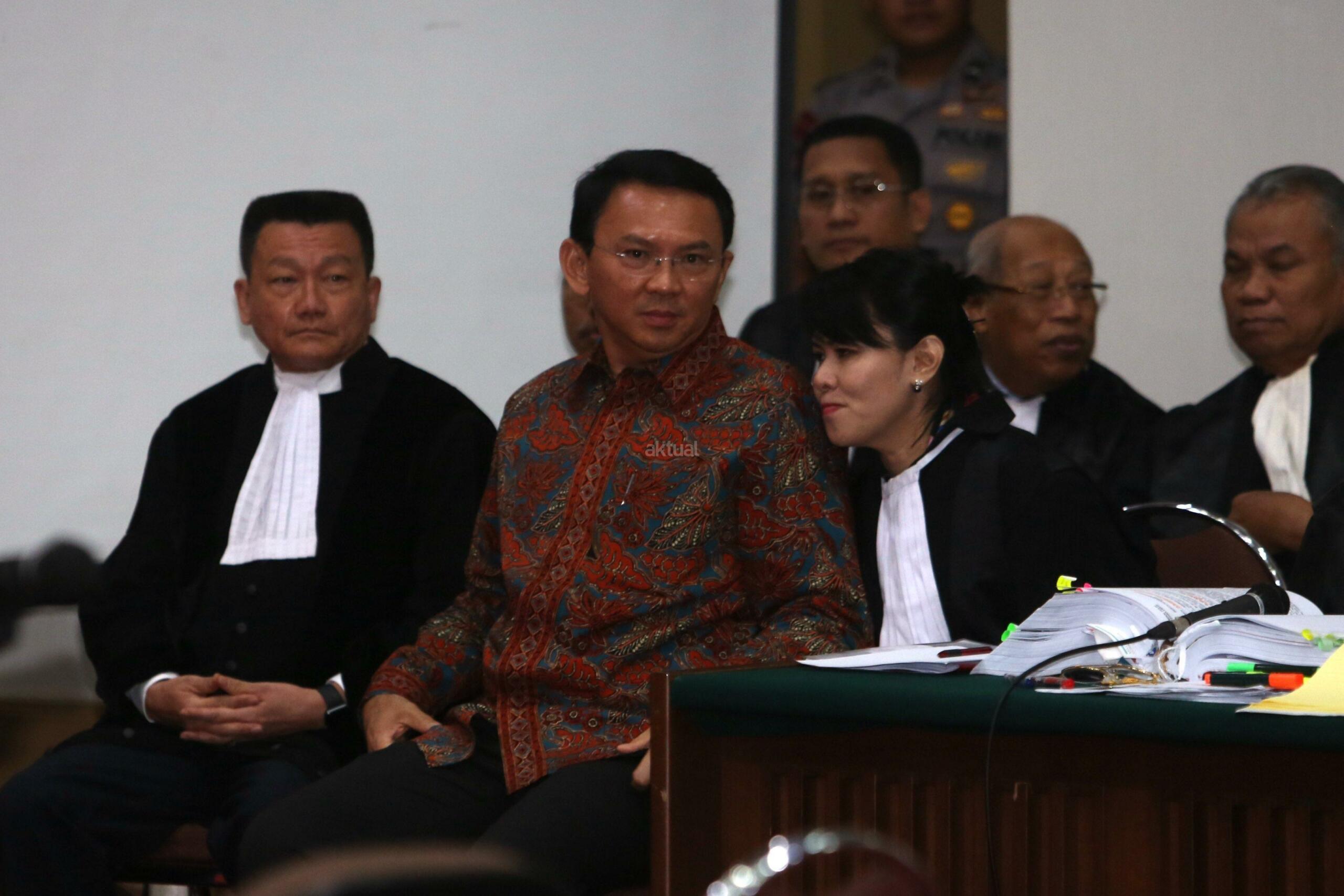Gubernur Non Aktif Basuki Tjahaja Purnama Menghadiri sidang Lanjutan Kasus Dugaan Penistaan Agama di Auditorium Kementrian Pertanian, Jakarta, Selasa, 31 Januari 2016. Sidang lanjutan yang ke delapan ini diagendakan mendengarkan keterangana saksi salah satunya ketua MUI, Ma’aruf Amin dan anggota KPUD DKI Jakarta Dahlia. Pool/Sindo/Irsa Triansyah