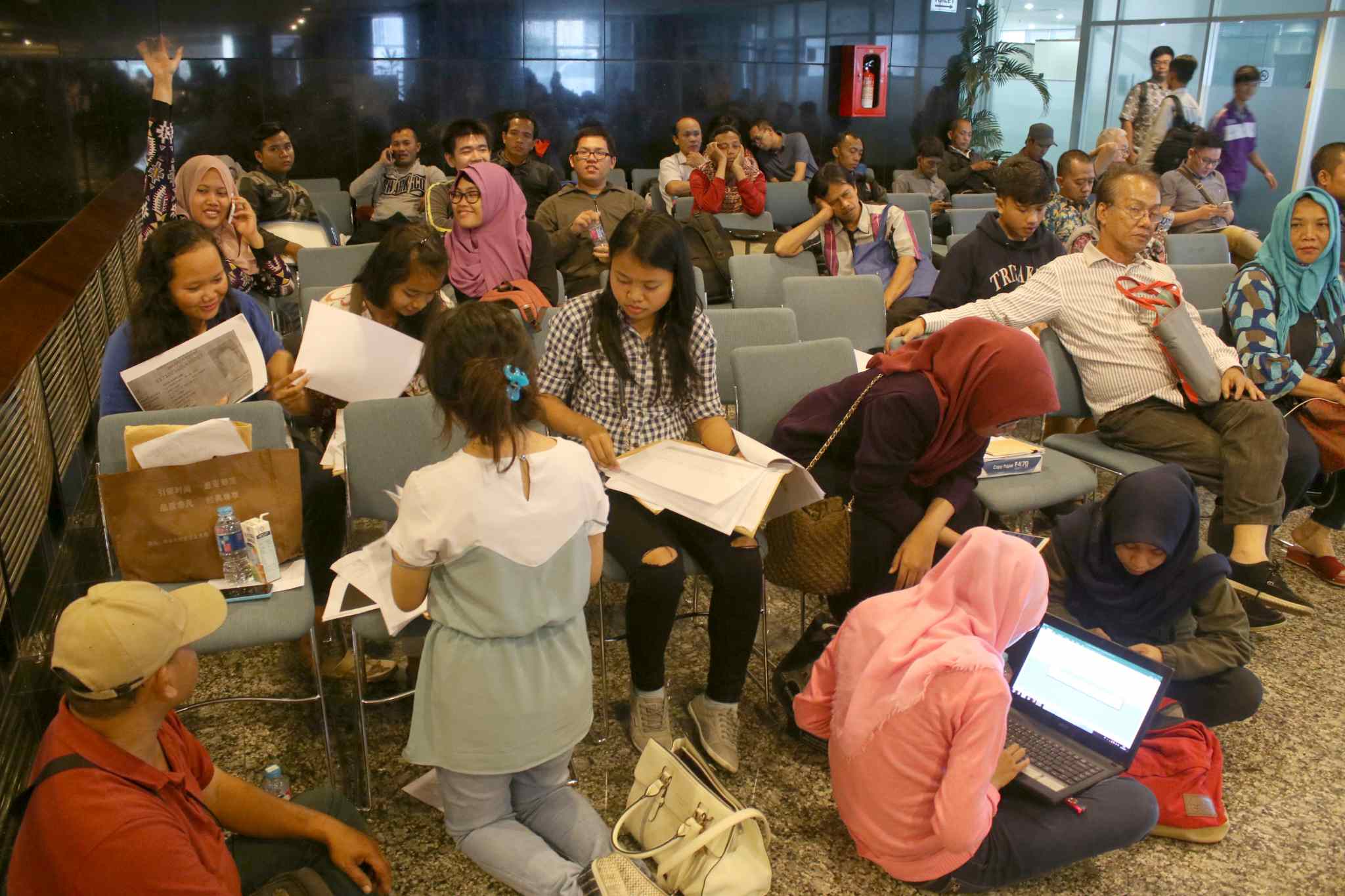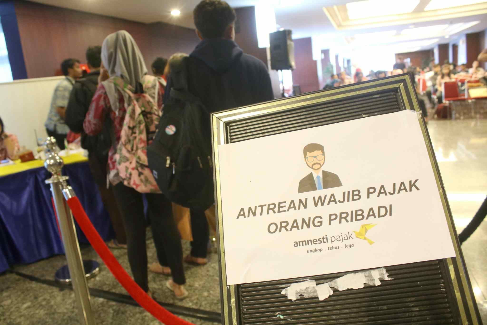 Wajib pajak mengantre sebelum dipanggil menuju bilik tax amnesty di Kantor Pusat Ditjen Pajak, Jakarta, Jumat (31/3). Untuk hari terakhir ini, Direktorat Jenderal Pajak (DJP) Kementerian Keuangan akan membuka pelayanan pengampunan pajak (tax amnesty) hingga pukul 24.00. AKTUAL/Tino Oktaviano
