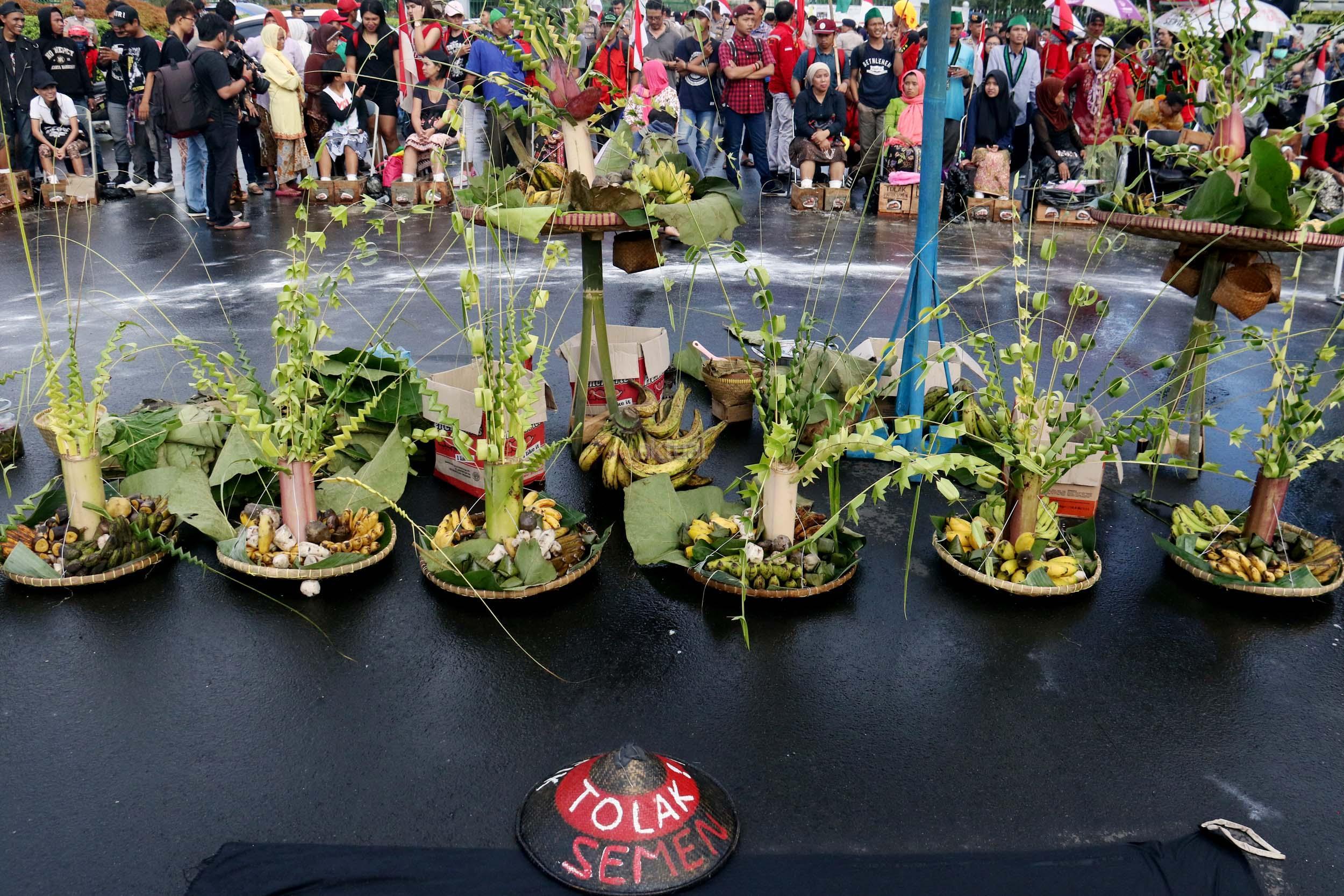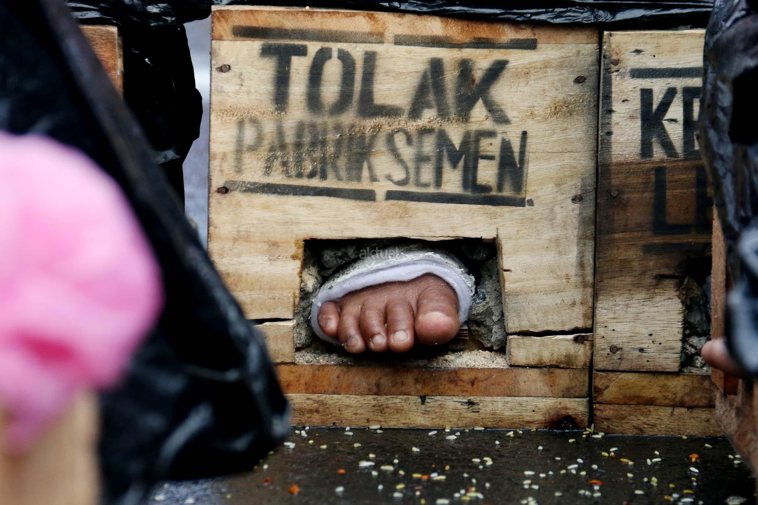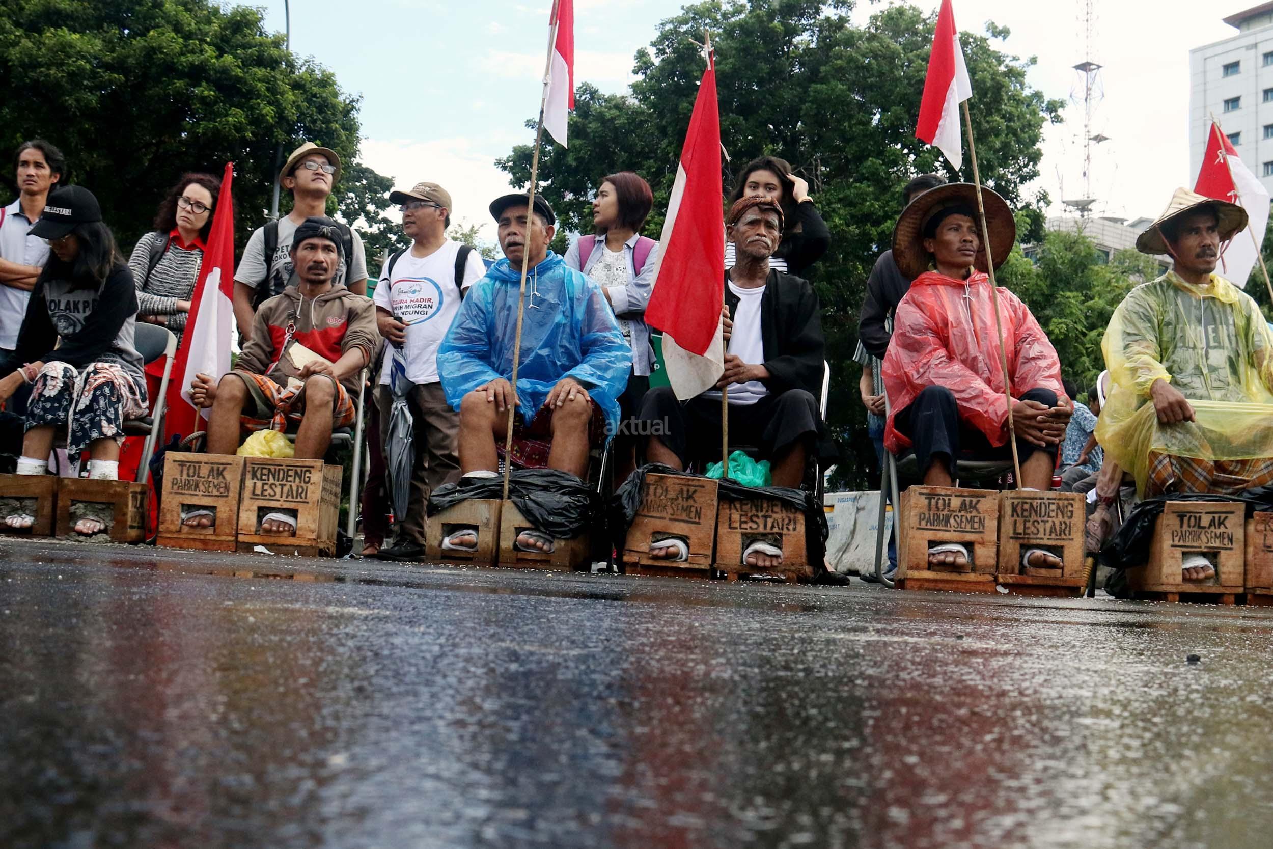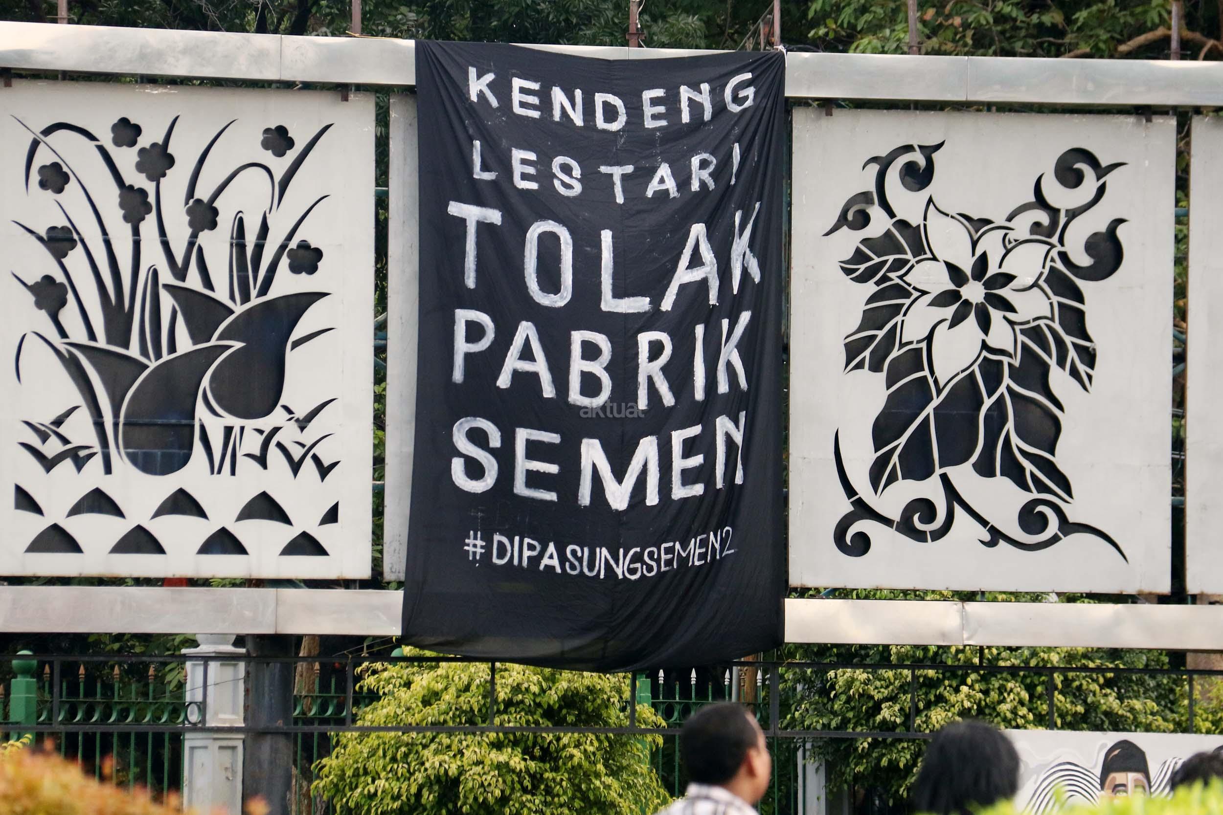 Dalam aksi tersebut mereka meminta kepada Presiden Joko Widodo untuk menghentikan izin lingkungan Pembangunan dan Pertambangan Pabrik PT Semen Indonesia yang diterbitkan kembali oleh Gubernur Jawa Tengah Ganjar Pranowo pada 23 Februari 2017. AKTUAL/Munzir