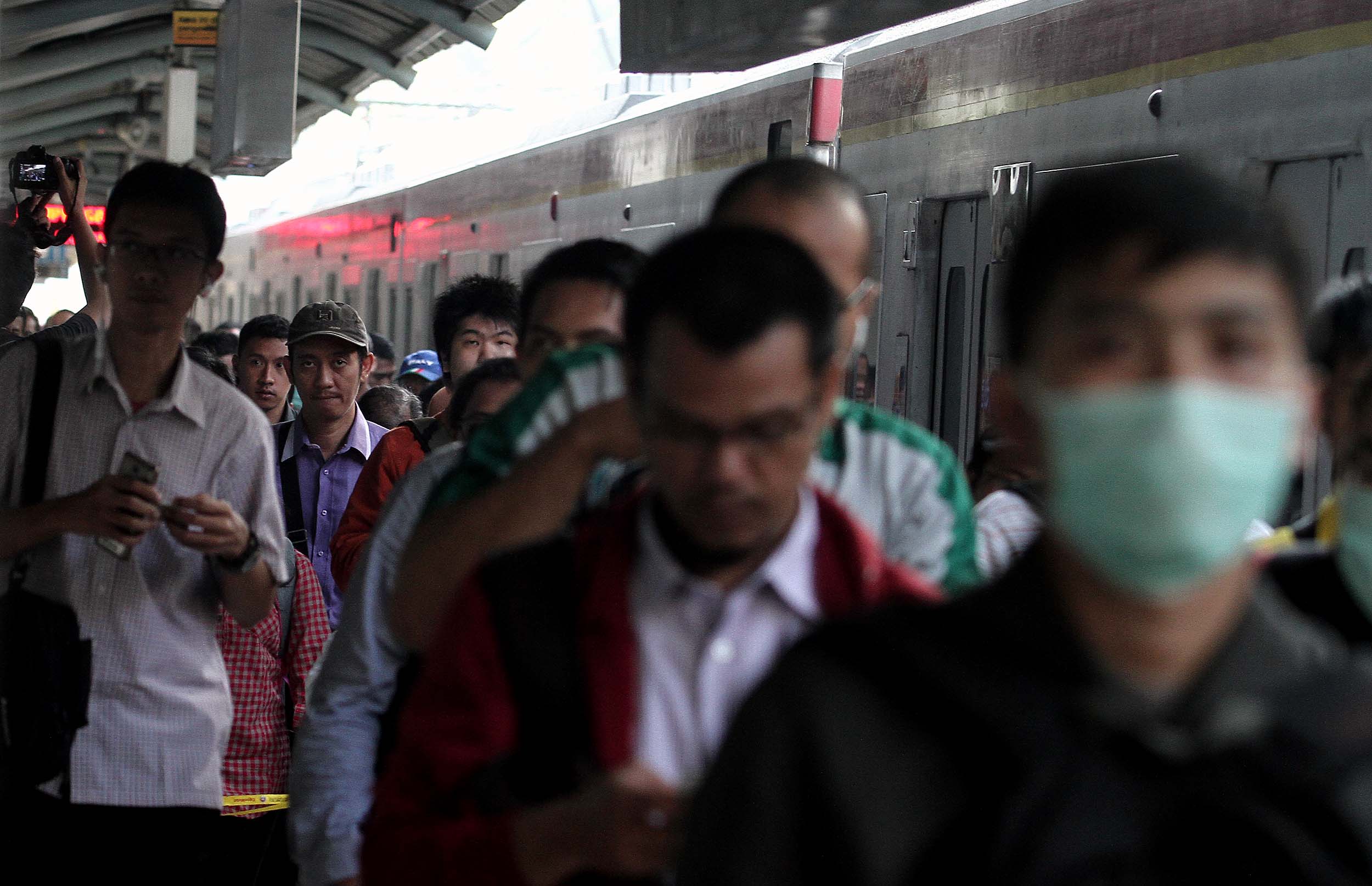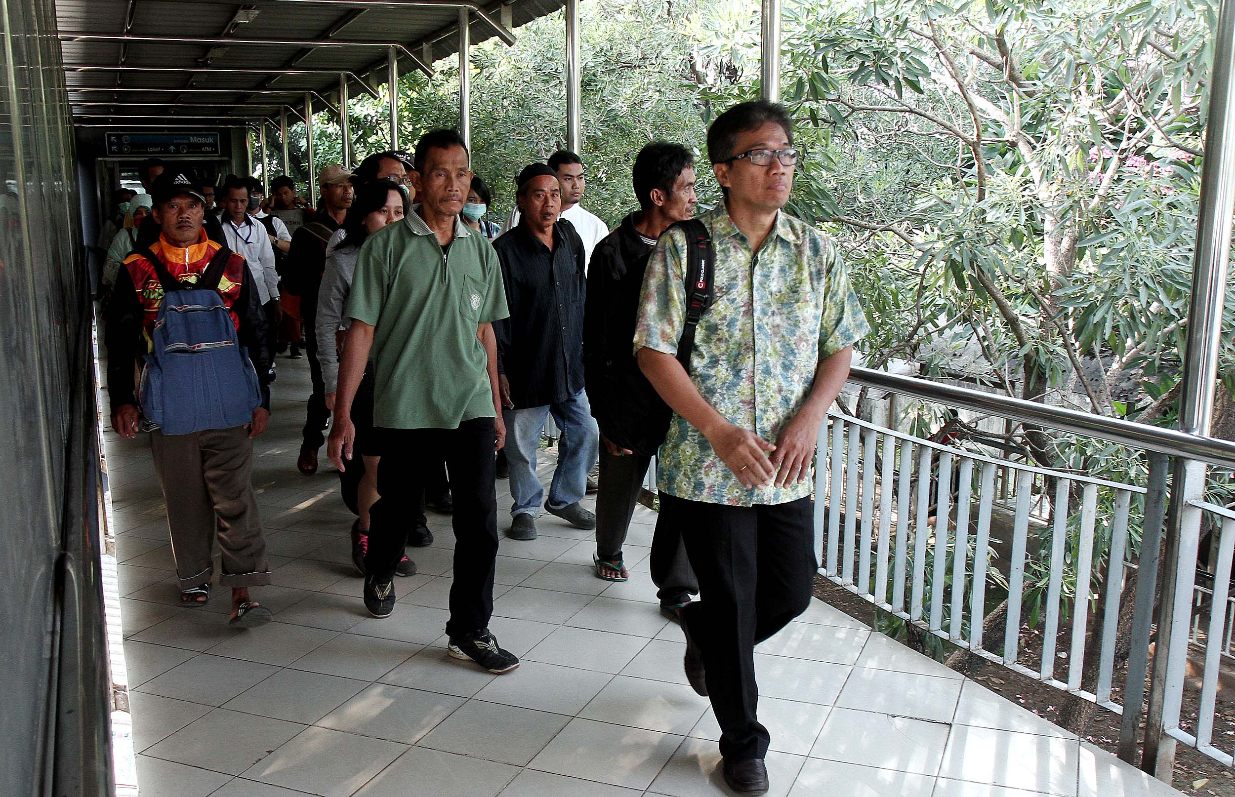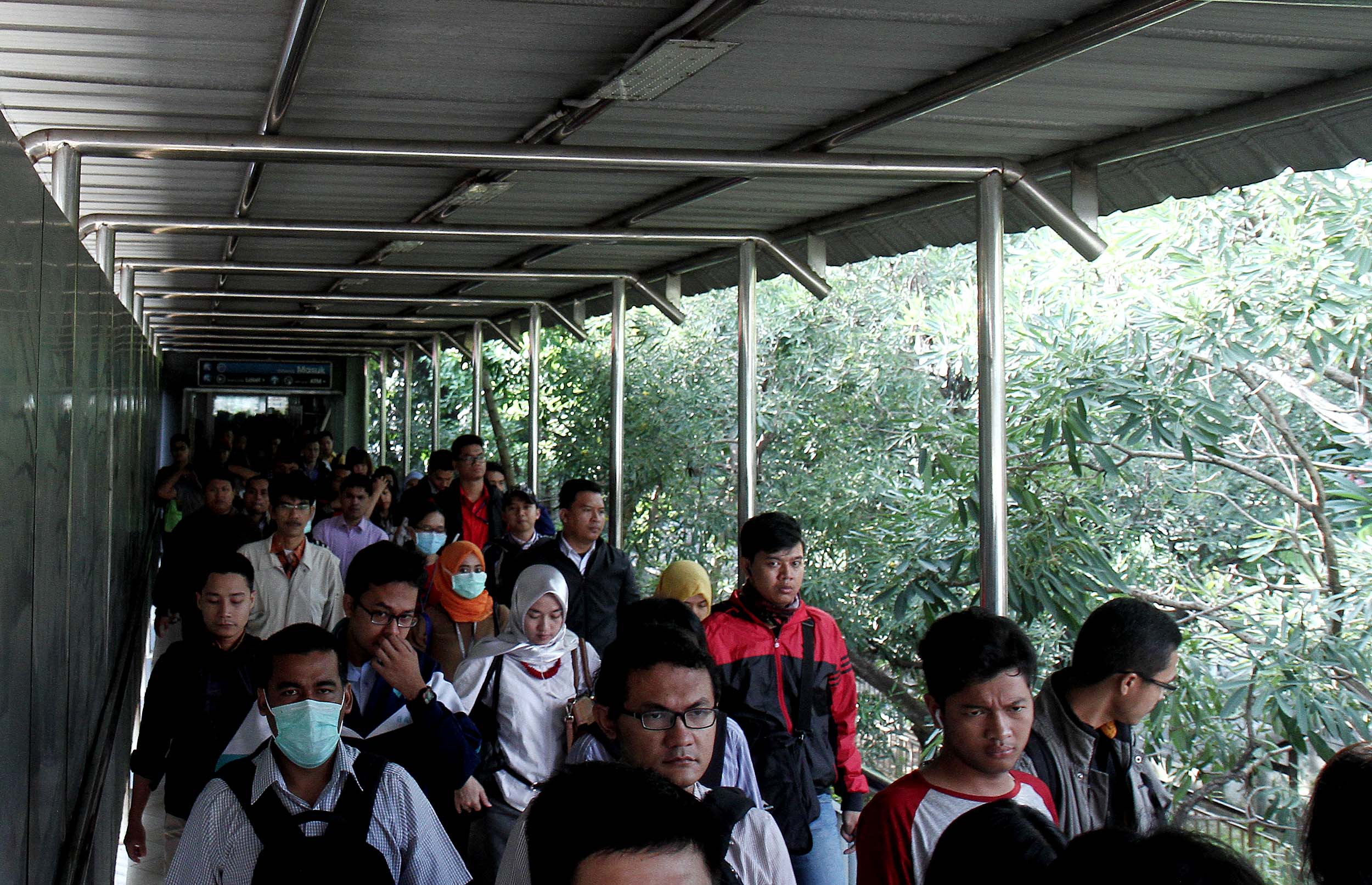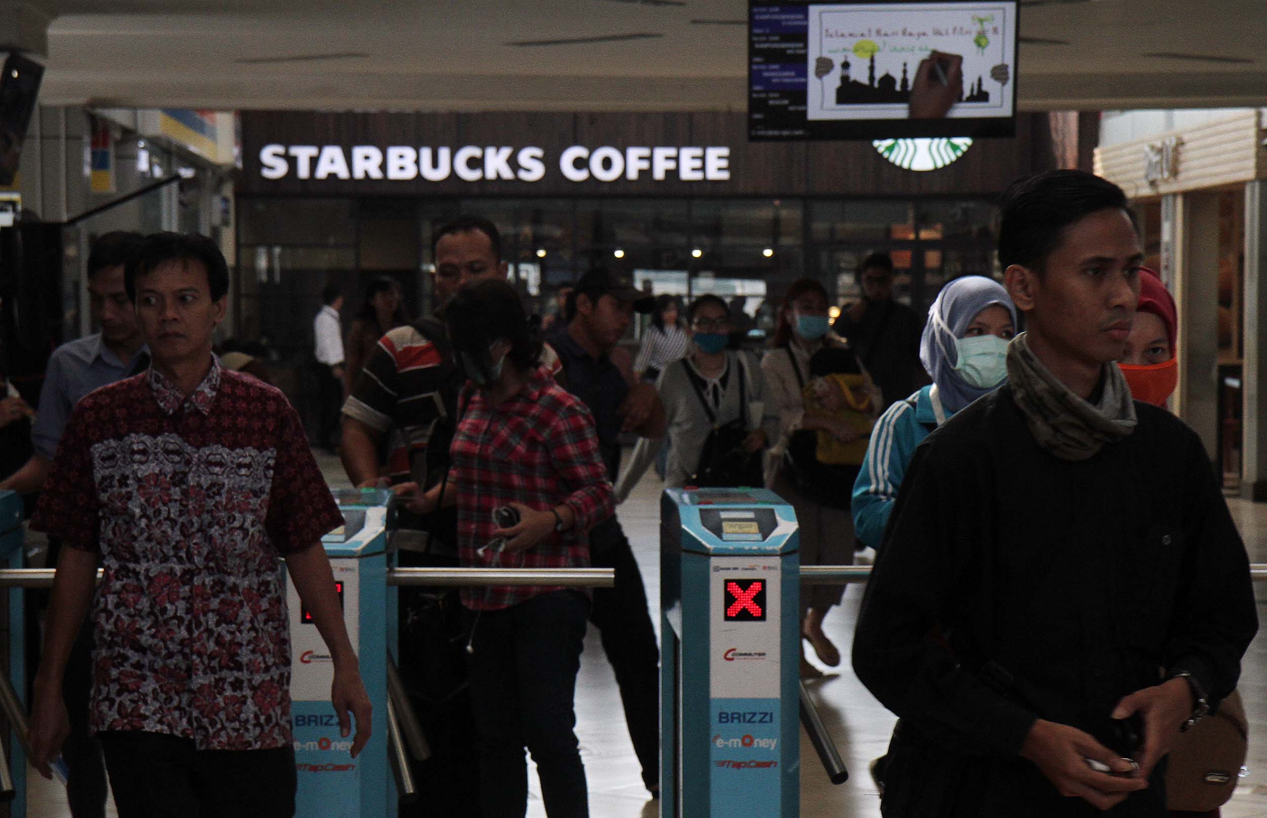 Terlihat para pekerja keluar dari Stasiun Sudirman, Jakarta, Senin (11/7/2016). Usai libur lebaran Idul Fitri hari ini mulai beraktifitas seperti semula.