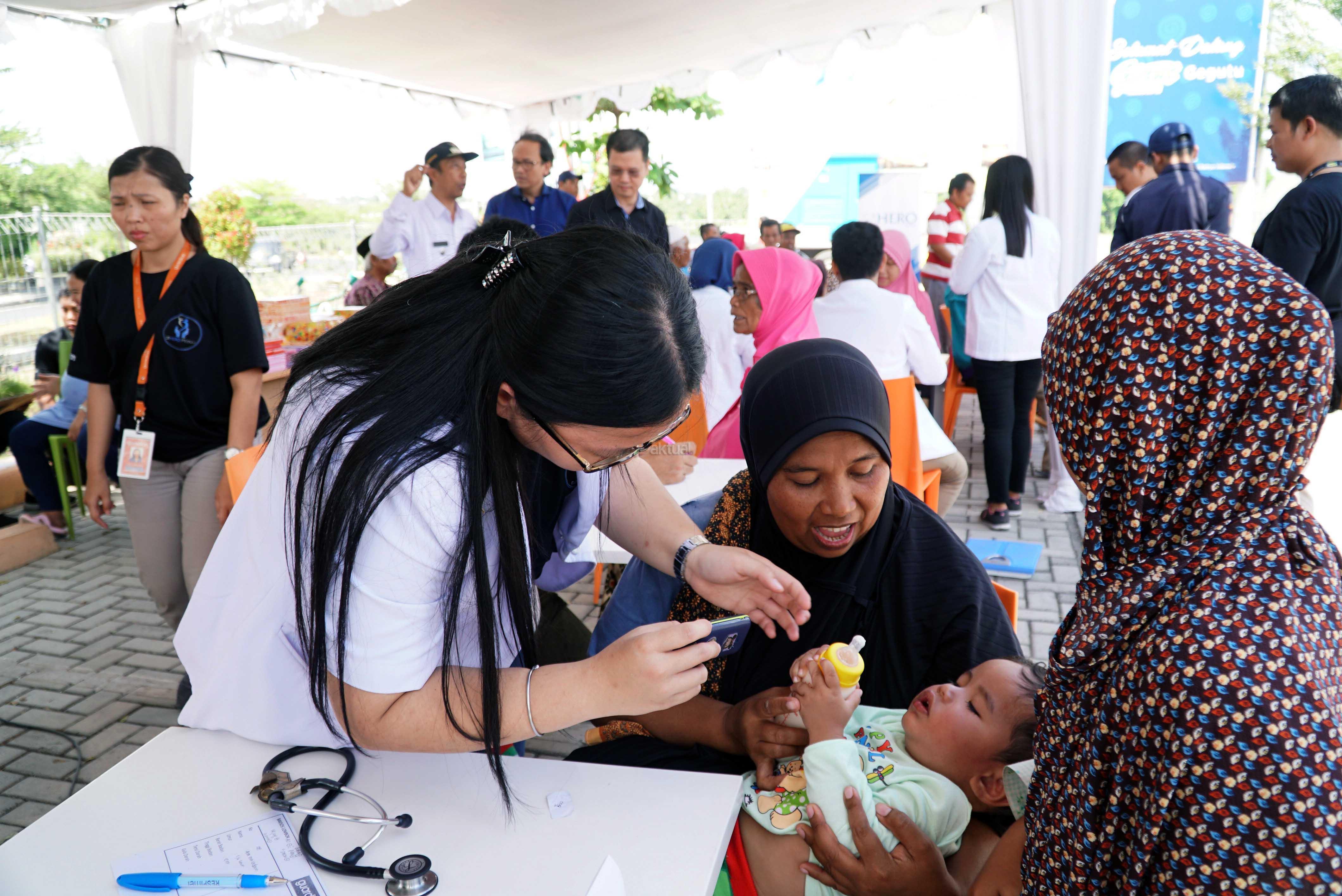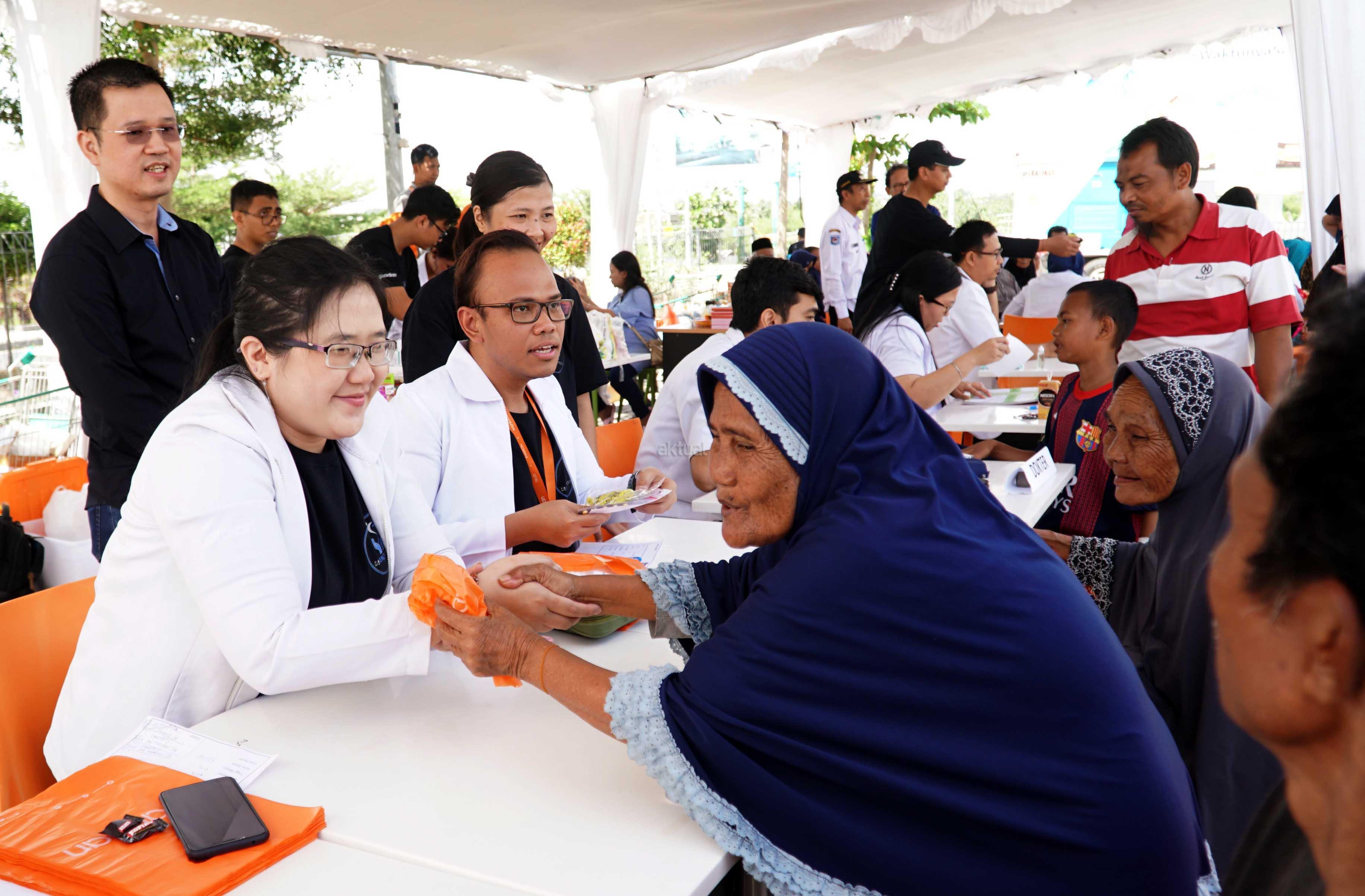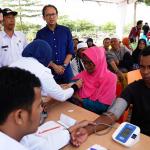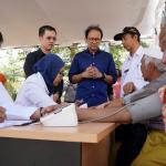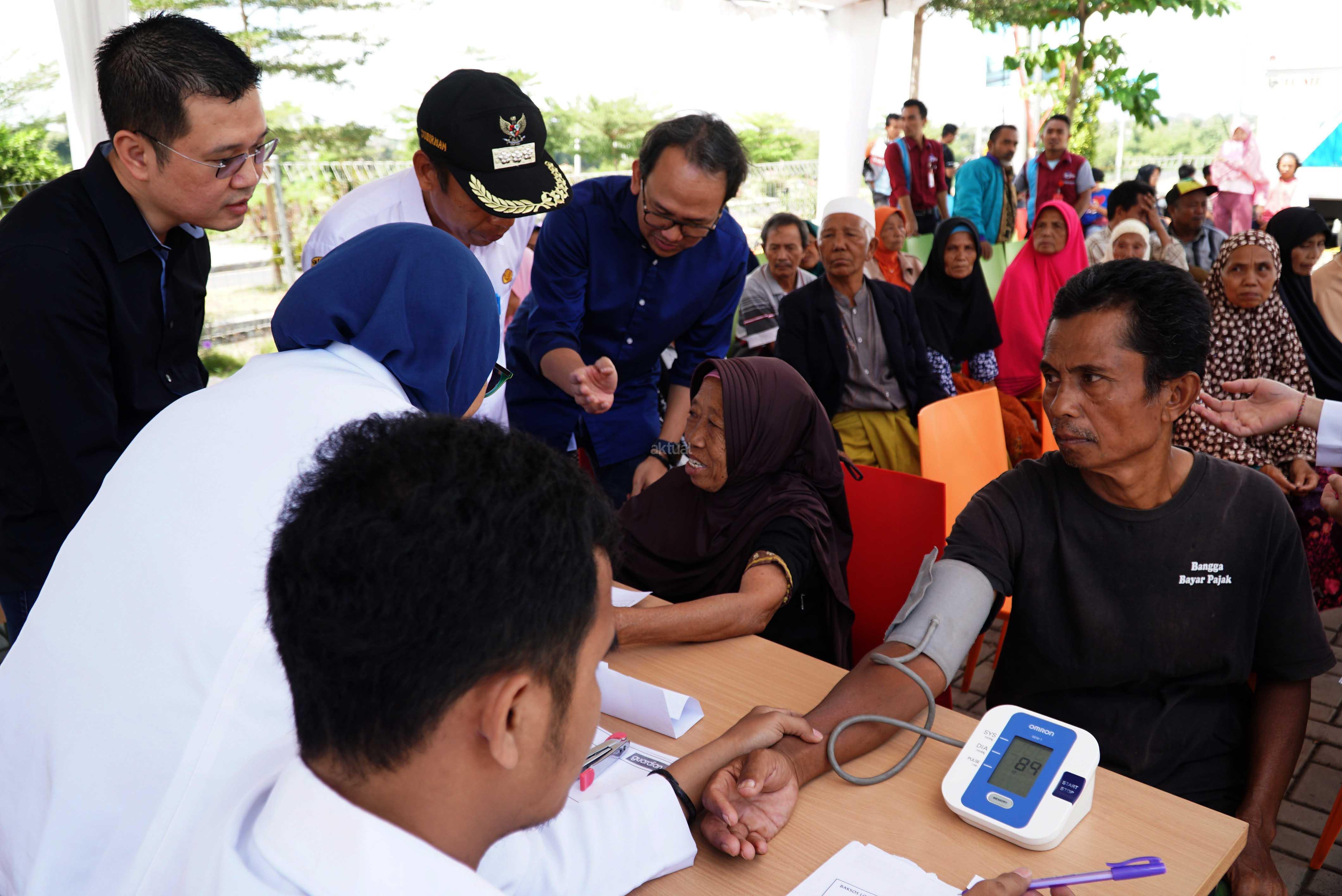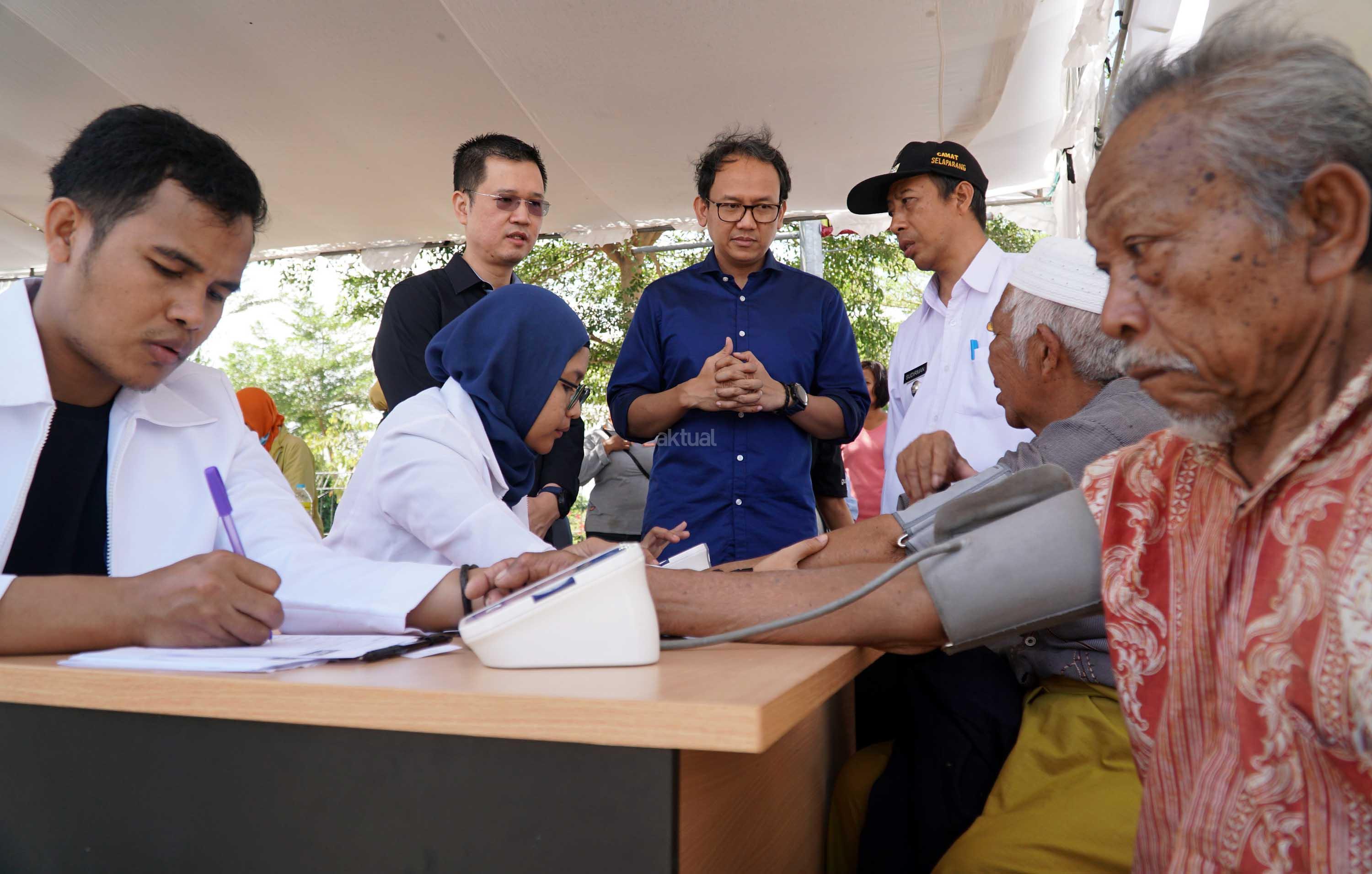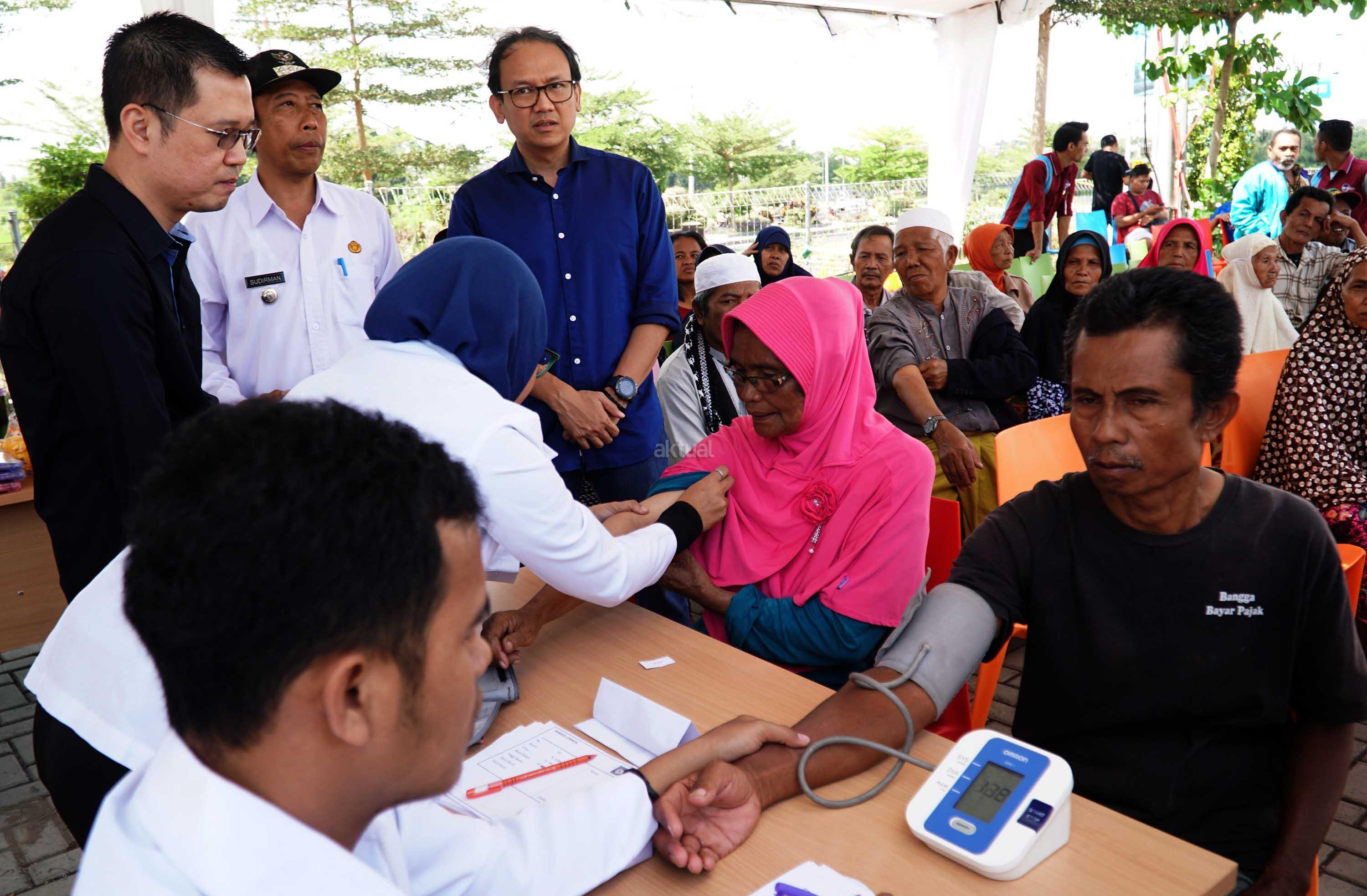 Direktur PT Hero Supermarket Tbk Hadrianus Wahyu Trikusomo (tengah) bersama Camat Selaparang Sudirman (kedua kanan) dan Direktur Hero Supermarket Tbk,Stefeanus Mulianto (kiri) menyaksikan pemeriksaan kesehatan kepada warga terdampak gempa bumi di Mataram, NTB, Rabu (15/8). PT Hero Supermarket Tbk (HERO Group) melalui empat unit bisnisnya yakni Hero Supermarket, Guardian, Giant, dan IKEA memberikan bantuan dan dukungan kepada lingkungan di sekitar toko yang mencakup Kelurahan Monjok, Kelurahan Rambiga dan Kelurahan Karang Baru) maupun daerah yang terkena dampak bencana gempa bumi di Lombok Utara, di mana proses penyaluran bantuan bekerjasama dengan PKPU Human Initiative. AKTUAL/Eko S Hilman