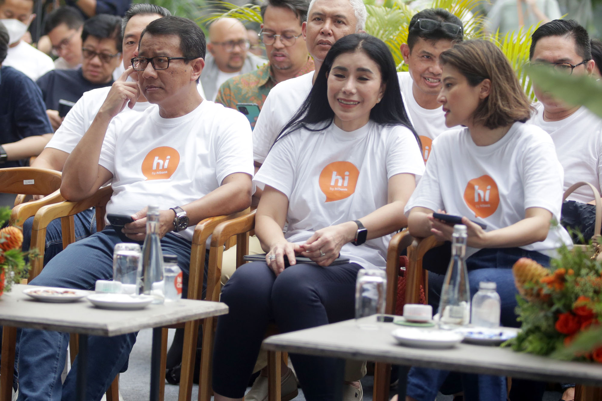 Wakil Direktur Utama BNI Putrama Wahju Setyawan (kiri), Direktur Utama hibank Jenny Wirianto (tengah), SEVP Retail Digital Solution BNI, Rian Eriana Kaslan (kanan), saat menghadiri acara peluncuran aplikasi mobile banking terbaru, hi by hibank di Jakarta, Jumat (21/2/2025).