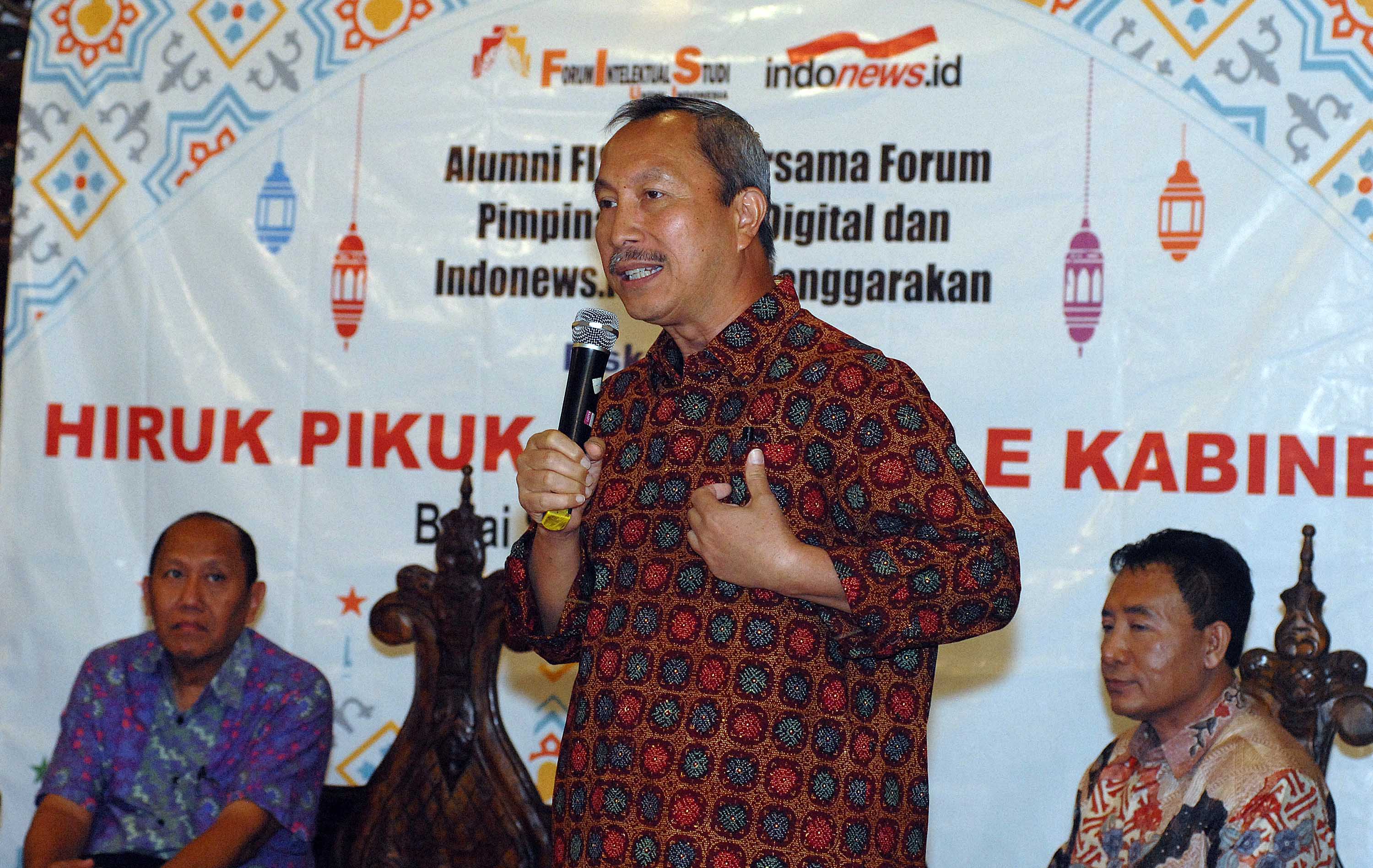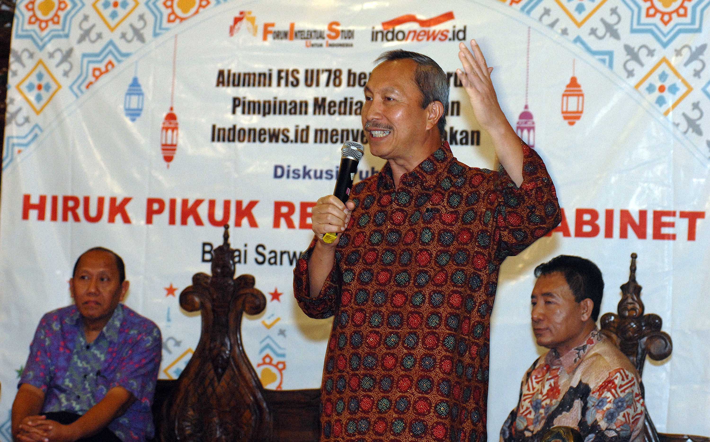Anggota Komisi IX DPR Fraksi PDIP Imam Suroso (kanan), Kepala Badan Keamanan Laut Republik Indonesia (Bakamla) Laksamana Madya TNI Dr. Desi Albert Mamahit (tengah) dan Peneliti Politik Lembaga Ilmu Pengetahuan Indonesia (LIPI) Ikrar Nusa Bhakti menjadi pembicara diskusi publik bertema "Hiruk Pikuk Reshuffle Kabinet" di Jakarta, Selasa (19/7). Aktual.com/Eko S Hilman