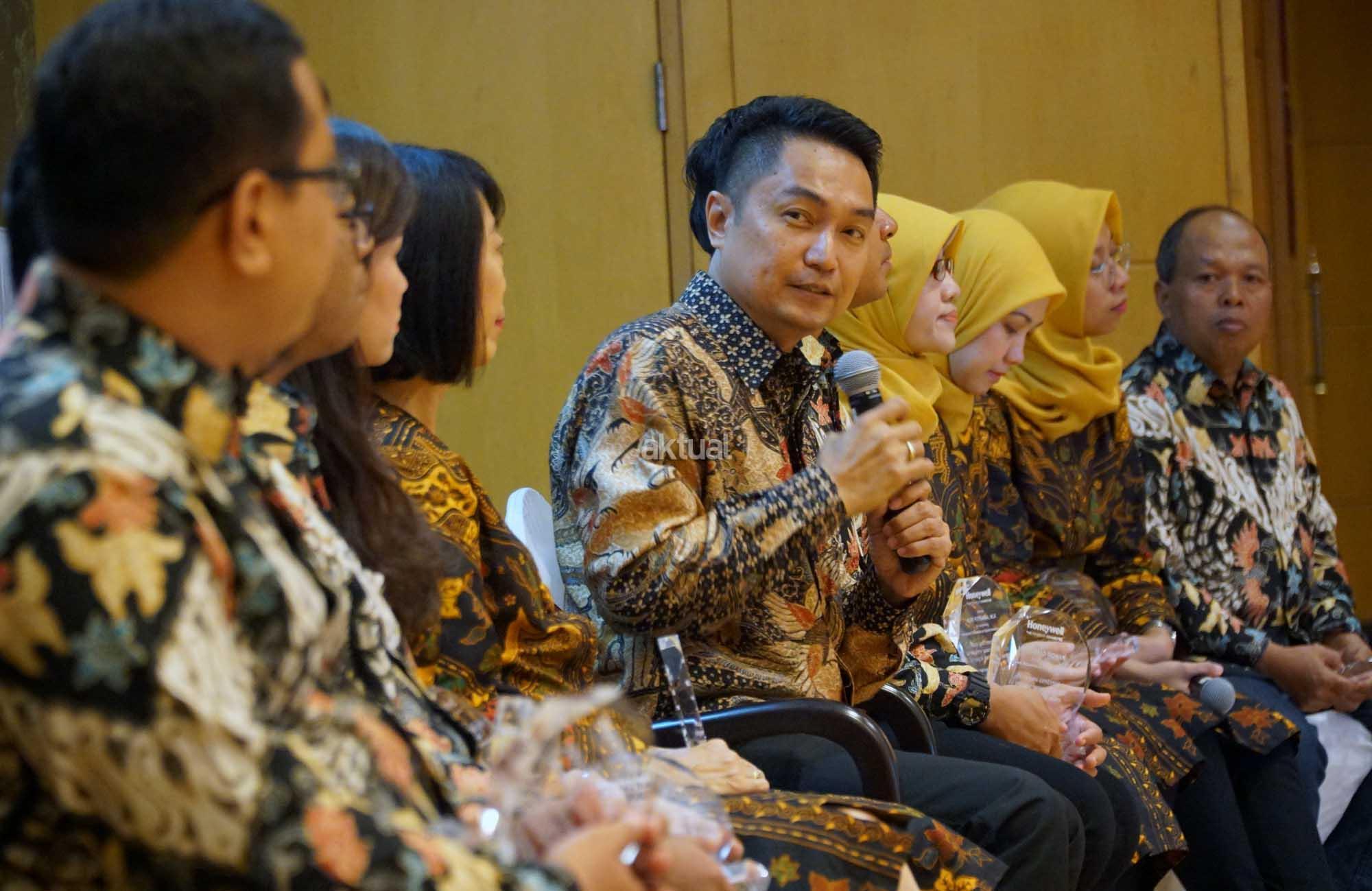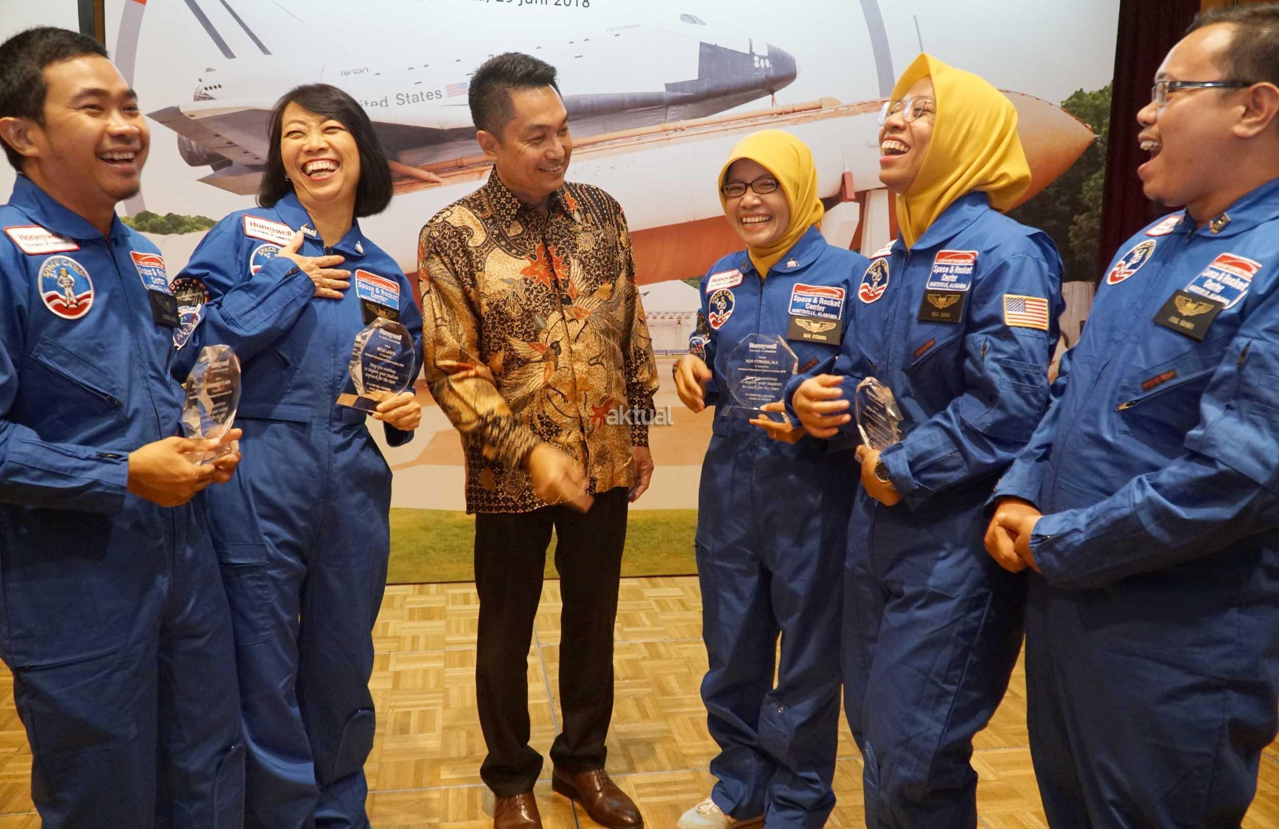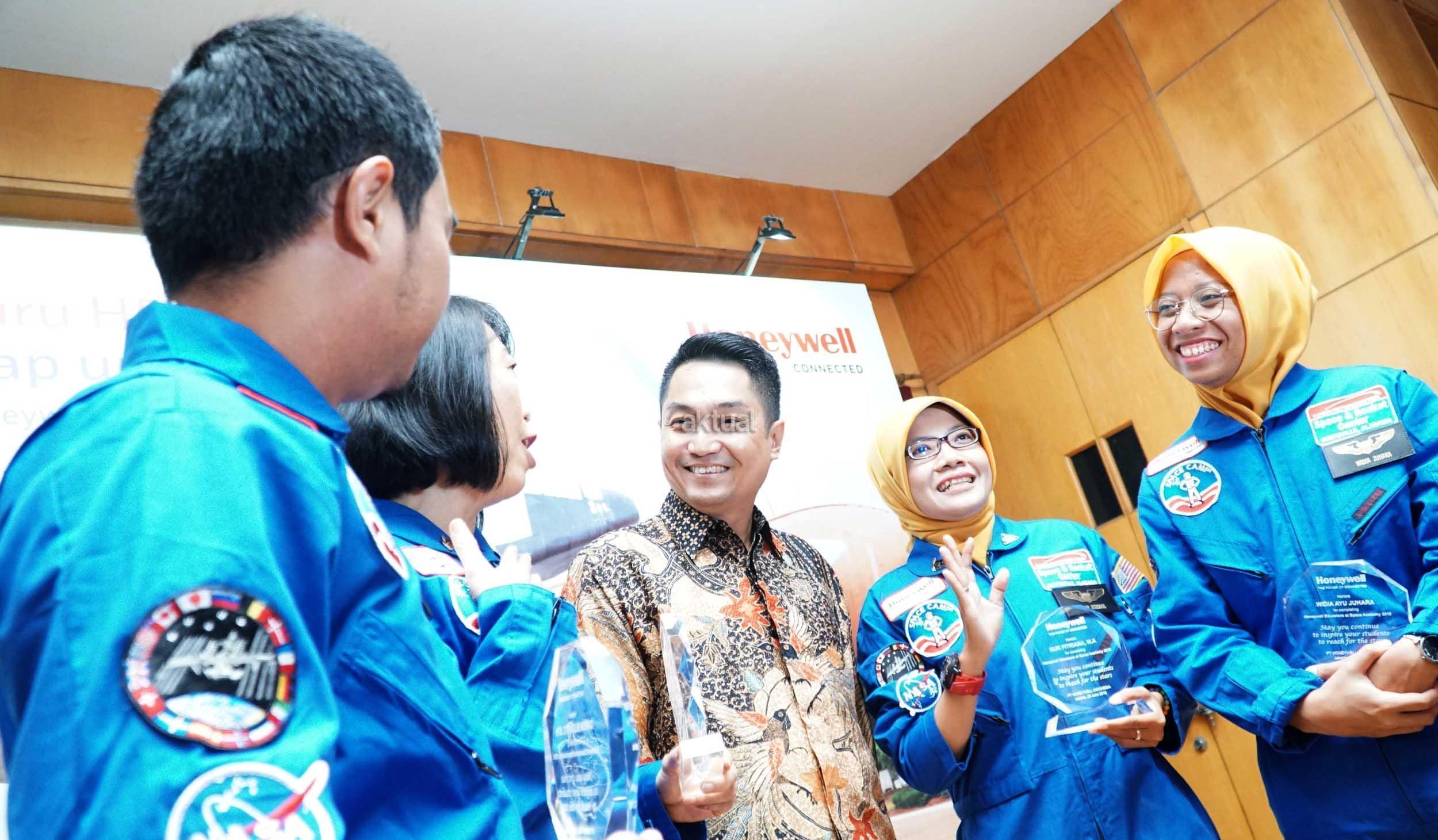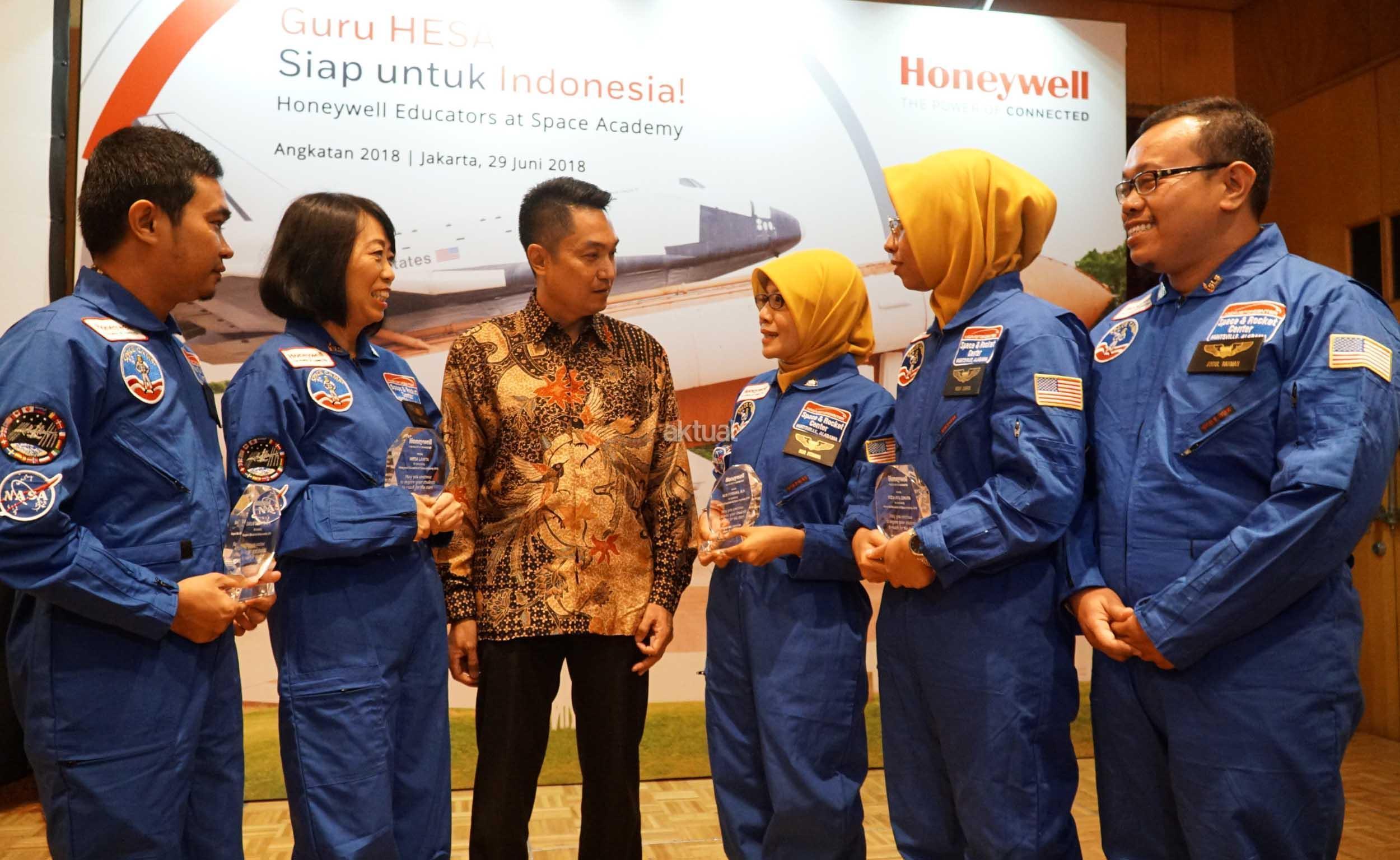 President Honeywell Indonesia Roy Kosasih (tengah) berbincang dengan perwakilan para guru yang telah lulus dari program tahunan Honeywell Educators at Space Academy (HESA) di U.S Space & Rocket Center (USSRC) di Huntsville, Alabama, Amerika Serikat usai jumpa pers di Jakarta, Jumat (29/7). Para guru mengikuti pelatihan dan aktivitas yang berfokus di bidang Sains, Teknologi, Teknik dan Matematika (STEM). Honeywell mengirimkan 10 guru sekolah Indonesia dan bergabung dengan 224 guru dari 35 negara dan 45 negara bagian Amerika Serikat. Program pengembangan profesional ini diciptakan khusus untuk membantu para guru Sains dan matematika di sekolah dasar dan menengah agar mampu menjadi pendidik yang lebih inovatif dan efektif di bidang STEM. Sejak dimulai pada tahun 2004, lebih dari 3.000 guru telah mengkuti program HESA dan diperkirakan mereka telah berhasil menginspirasi lebih dari 5 juta murid di seluruh dunia. AKTUAL/Eko S Hilman