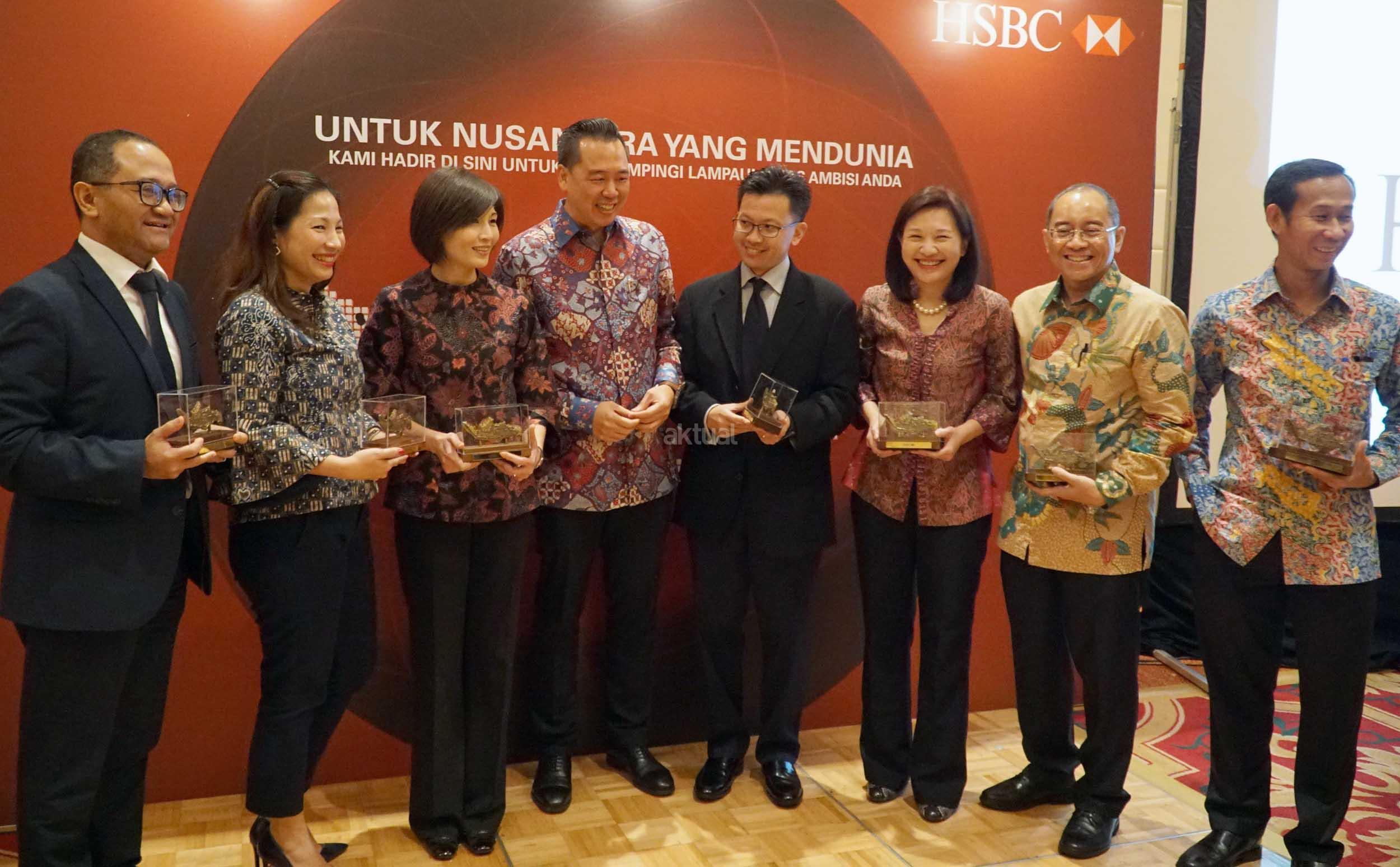 Head of Wealth Management PT Bank HSBC Indonesia Steven Suryana ( kiri) menyerahkan cindera mata kepada President Director Schroeders Indonesia Michael Tjoajadi seusai menjadi pembicara pada acara HSBC Wealth & Beyond 2017 di Jakarta, Selasa (14/11/2017). Diskusi membahas pentingnya masyarakat masa kini mempertimbangkan produk-produk finansial lain di luar tabungan dan deposito, seperti deposito dan investasi, untuk mendukung stabilitas keuangan jangka panjang d tengah kondisi tingkat suku bunga yang rendah. AKTUAL/Eko S Hilman