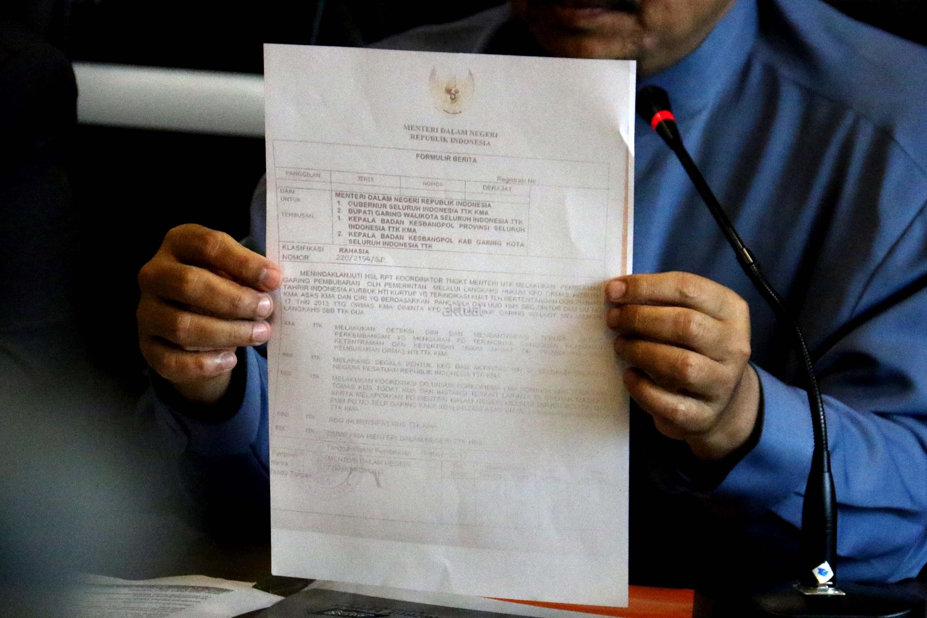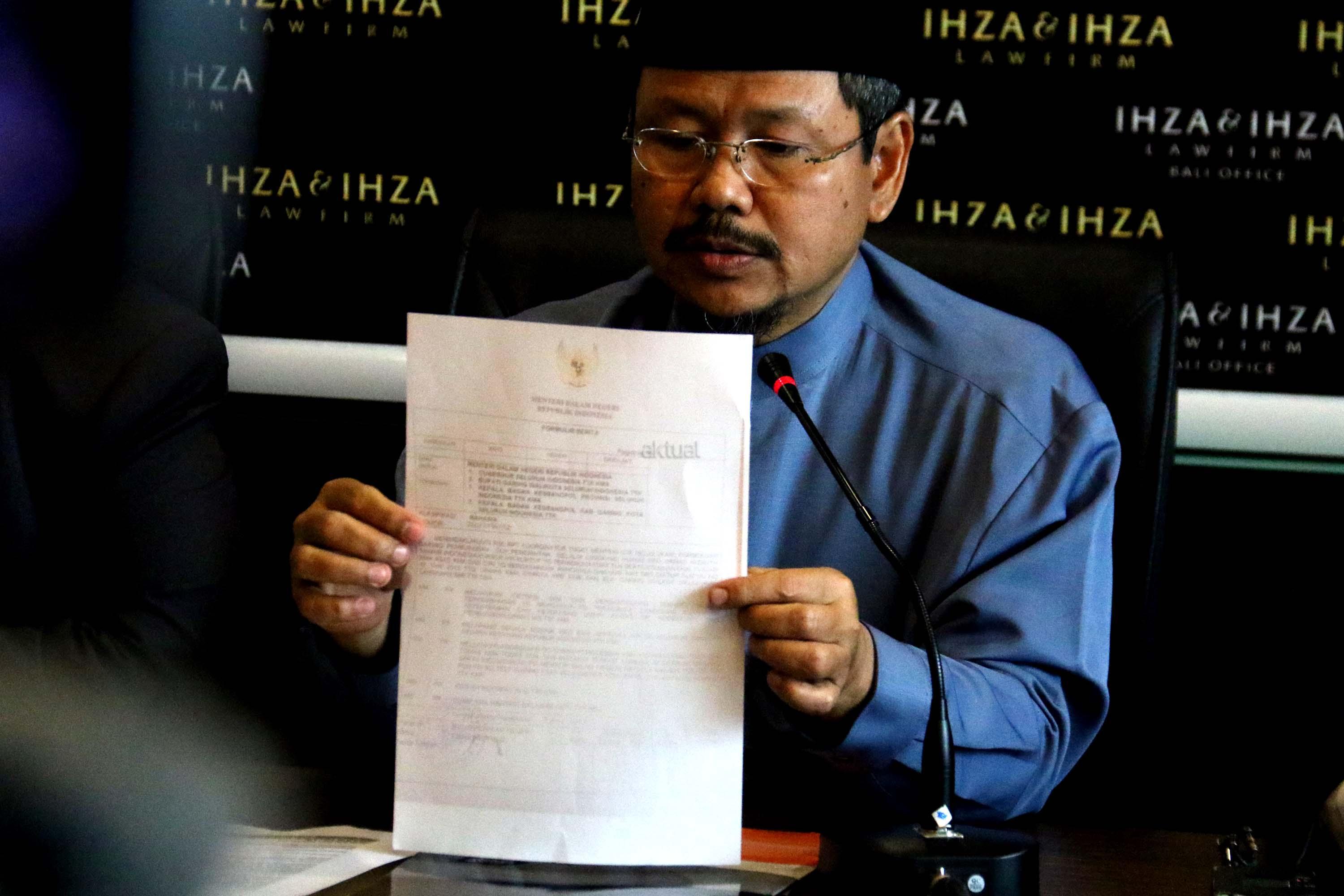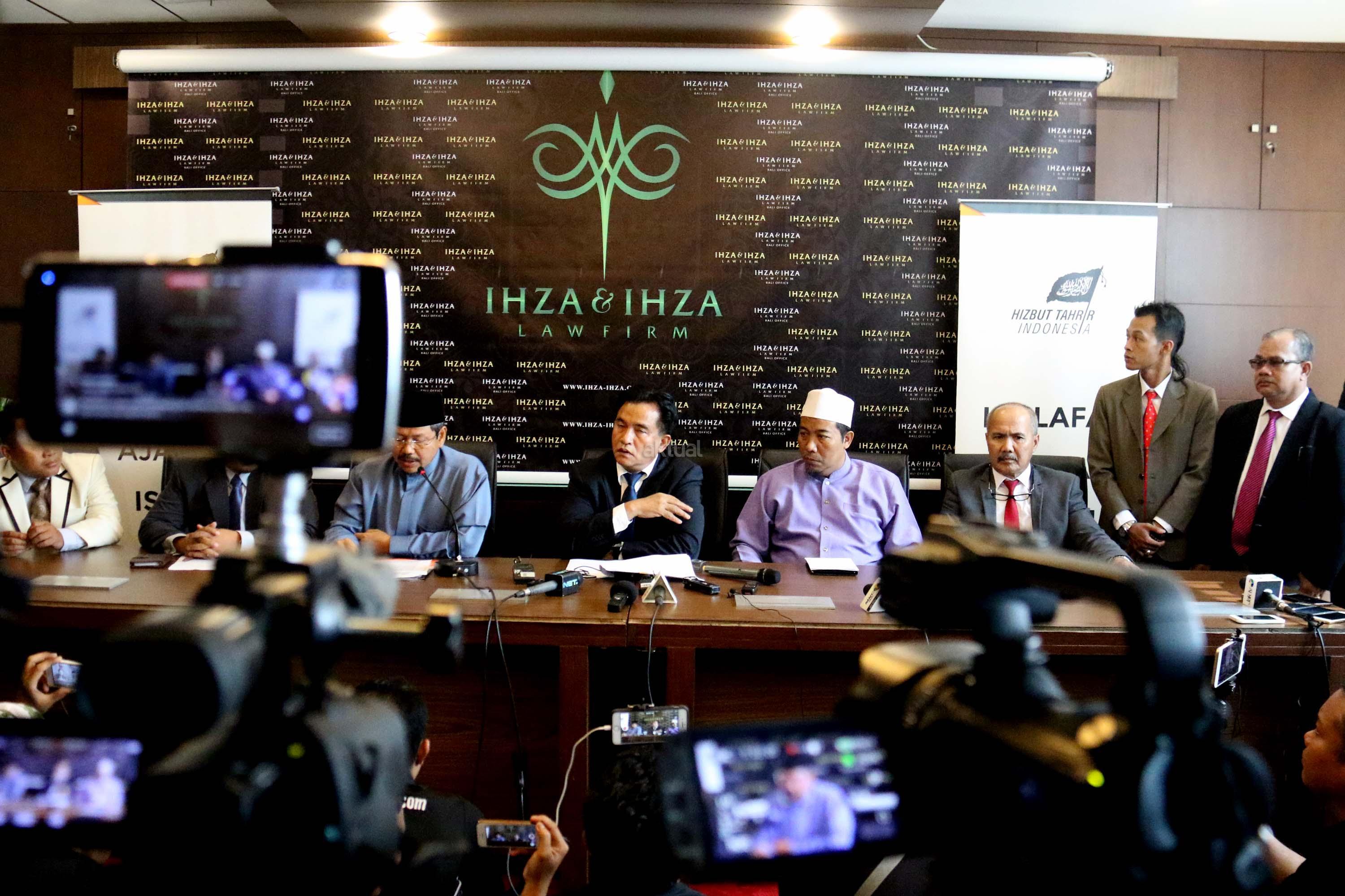 Hizbut Tahrir Indonesia (HTI), di kantornya, Jakarta, Selasa (23/5/2017). Dalam jumpa persnya Hizbut Tahrir Indonesia (HTI) telah resmi menunjuk Yusril Ihza Mahendara sebagai kuasa hukum. Itu dilakukan untuk menghadapi pemerintah yang berencana membubarkan HTI. AKTUAL/Munzir