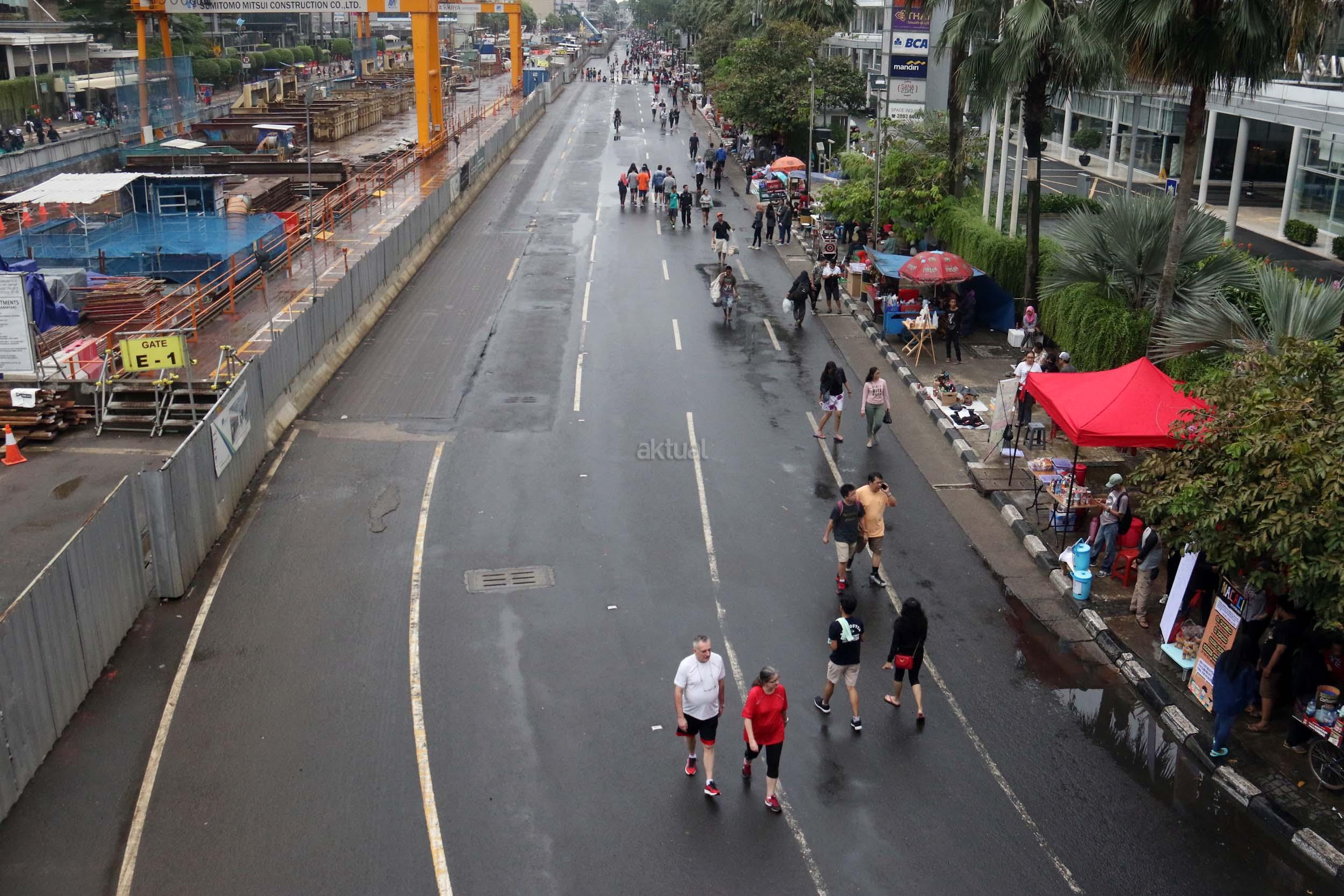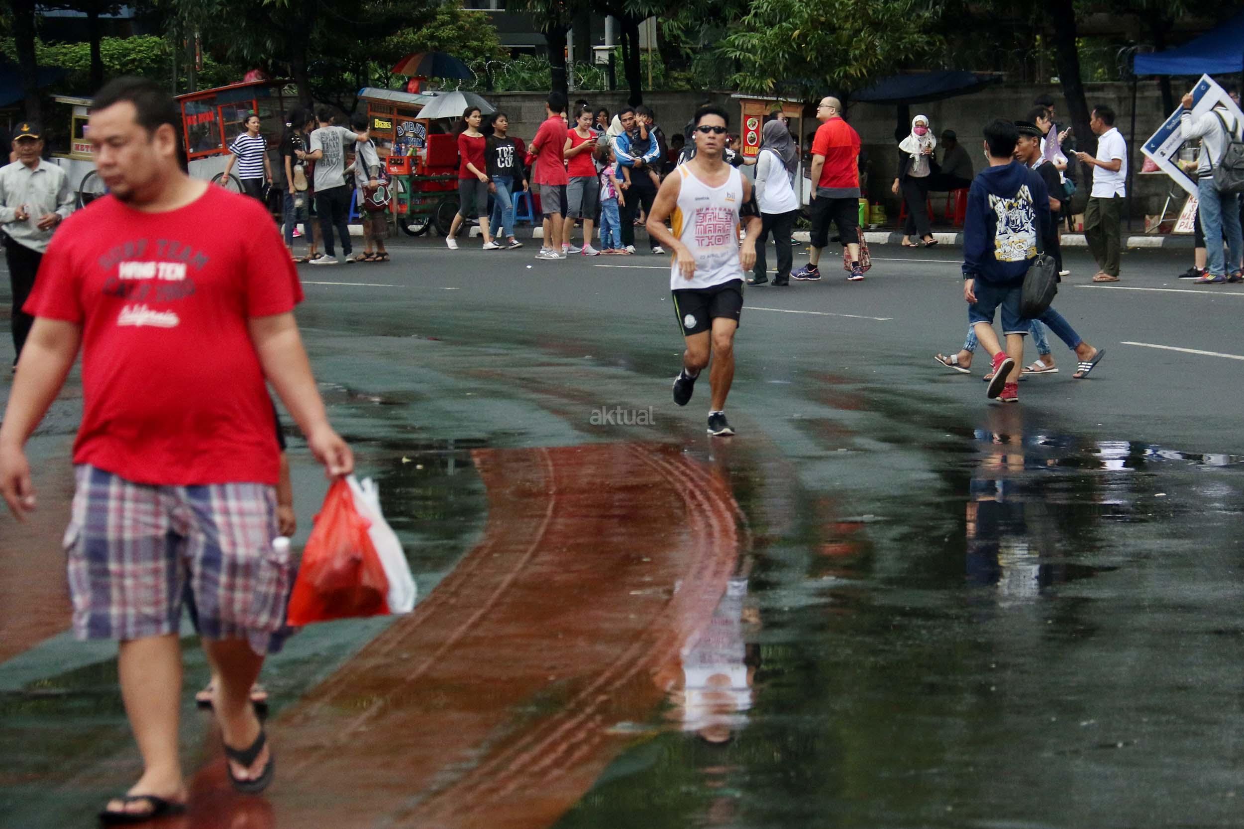 Hujan Guyur Jakarta, Warga Tetap Asik Olahraga di Area CFD