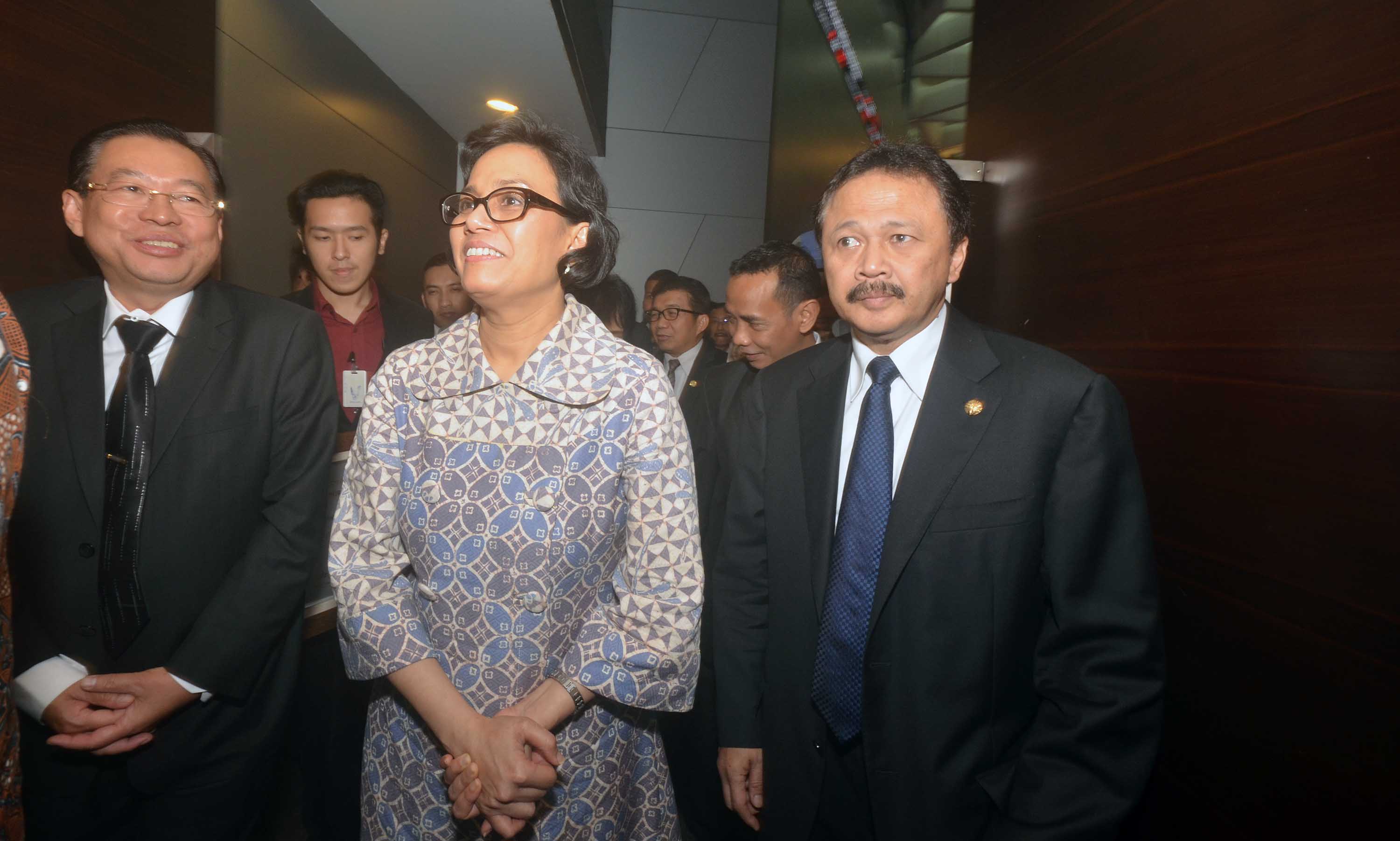 Managing Director Sinar Mas, G.Sulistiyanto (kiri) berbincang dengan Menteri Keuangan Sri Mulyani dan Dirut Bursa Efek Indonesia , Tito Sulistio usai menerima penghargaan sebagai lembaga yang berperan aktif dalam kampanye “Yuk Nabung Saham “di Main Hall, Gedung BEI, Jakarta, Rabu (10/8) Penghargaan disampaikan dalam peringatan HUT ke 39 Pasar Modal Indonesia . Dukungan Sinar Mas yang aktif melakukan sosialisasi di seluruh pilar bisnis dengan melibatkan pilar terkait seperti dari Sinar Mas Financial Services dan menggandeng pihak regulator.Keterlibatan Sinar Mas dalam ektor finansial, menurut Sulistiyanto tak hanya dilandasi pertimbangan raihan keuntungan semata, namun juga niatan berkontribusi memenuhi kebutuhan dasar masyarakat sekaligus mendorong peningkatan kesejahteraan mereka.