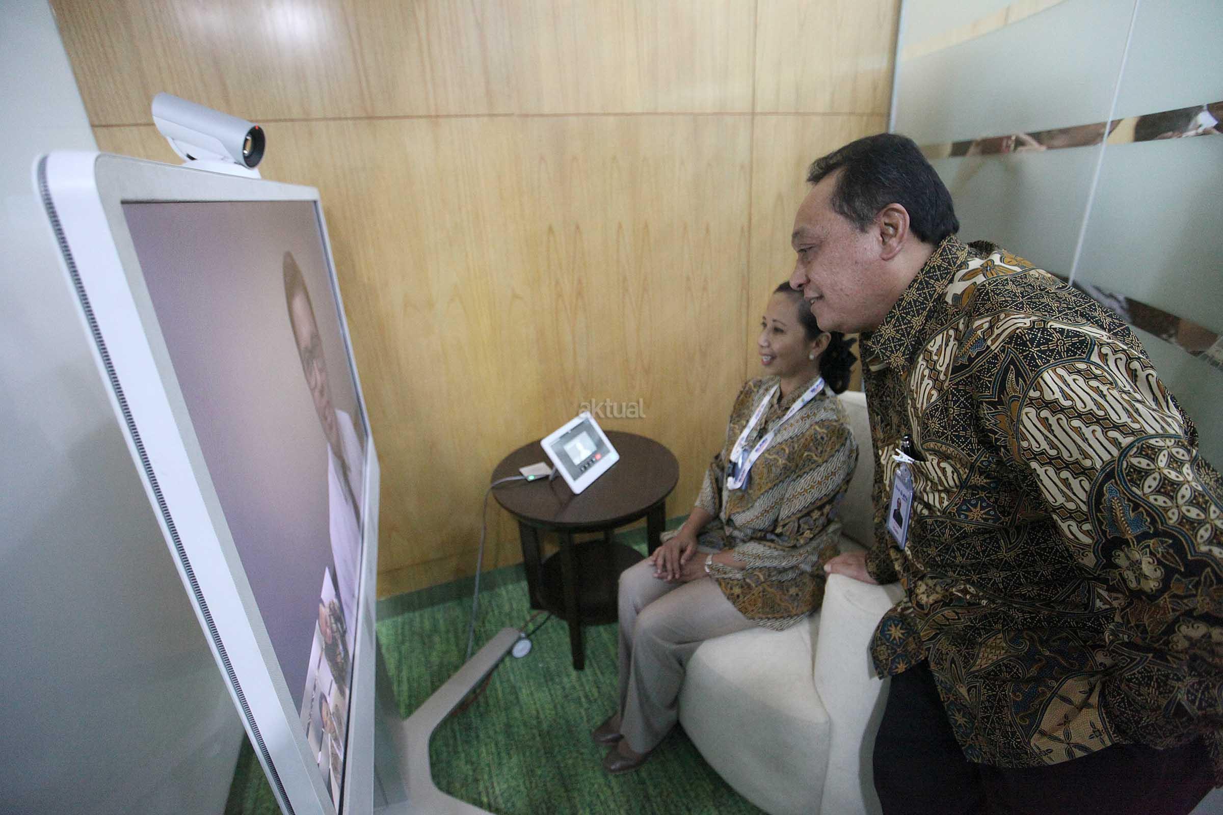 Menteri BUMN Rini M Soemarno (kiri) bersama Direktur Utama BTN Maryono mencoba fasilitas di ruang Smart Branch Bank BTN kantor Cabang Harmoni saat peresmian di Jakarta, Kamis (9/2). Peresmian Smart Branch yang dilakukan dalam rangka HUT ke-67 Bank BTN tersebut untuk memberikan fasilitas baru bagi nasabah dalam mengakses layanan perbankan seperti pembukaan rekening, transaksi perbankan hingga pengajuan pembiayaan. AKTUAL/Eko S Hilman