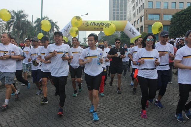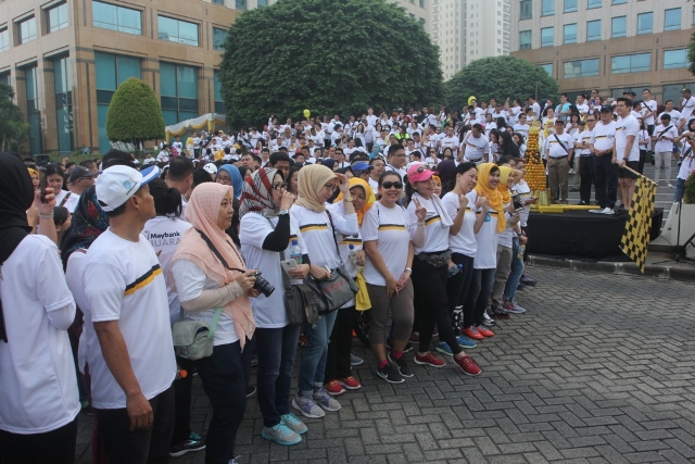 Presiden Direktur Maybank indonesia, Taswin Zakaria beserta Direksi dan Komisaris melepas start Fun Walk memperingati HUT ke-59 Maybank Indonesia di Jakarta, Minggu (13/5). Dilandasi spirit Maybank JUARA (Jujur, Unggul, Adaptif, Responsif dan Akuntabilitas), perayaan HUT kembali memberikan dukungan kepada yayasan Masyarakat Peduli Autis Indonesia (MPATI) sebagai bagian dari ikut memiliki kepekaan kepada sesama. AKTUAL/Eko S Hilman