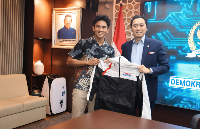 Jakarta, aktual.com – Wakil Ketua MPR RI sekaligus Ketua Fraksi Partai Demokrat, Edhie Baskoro Yudhoyono (Ibas) menyambut kedatangan pembalap motocross dan road race asal Magetan, Mario Suryo Aji, di Gedung DPR RI. Kunjungan ini menjadi momen istimewa di bulan Suci Ramadan, dimana Ibas menyampaikan kebanggaannya atas prestasi Mario Aji serta memberikan dukungan penuh untuk pengembangan sektor pembalap motor di Indonesia.