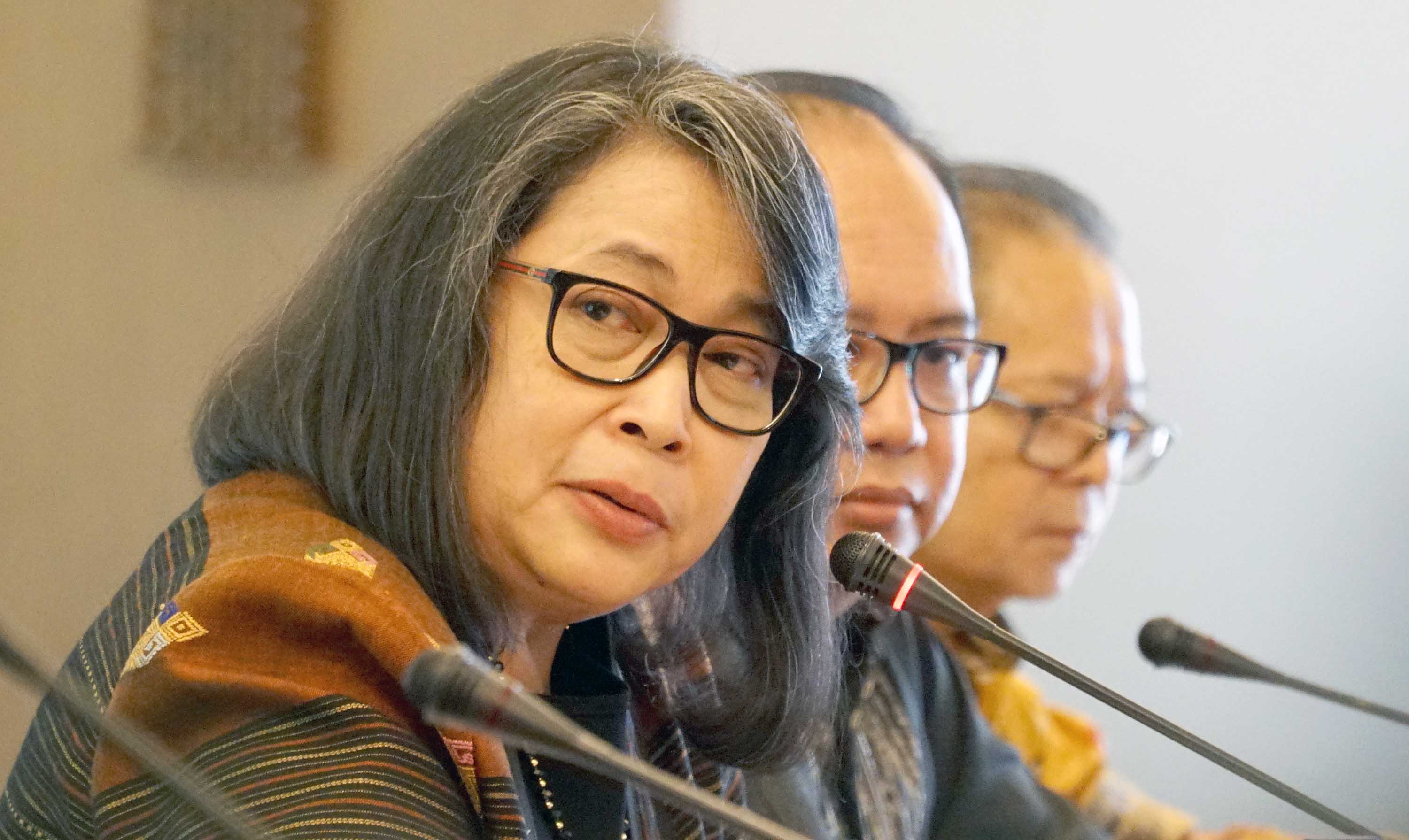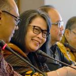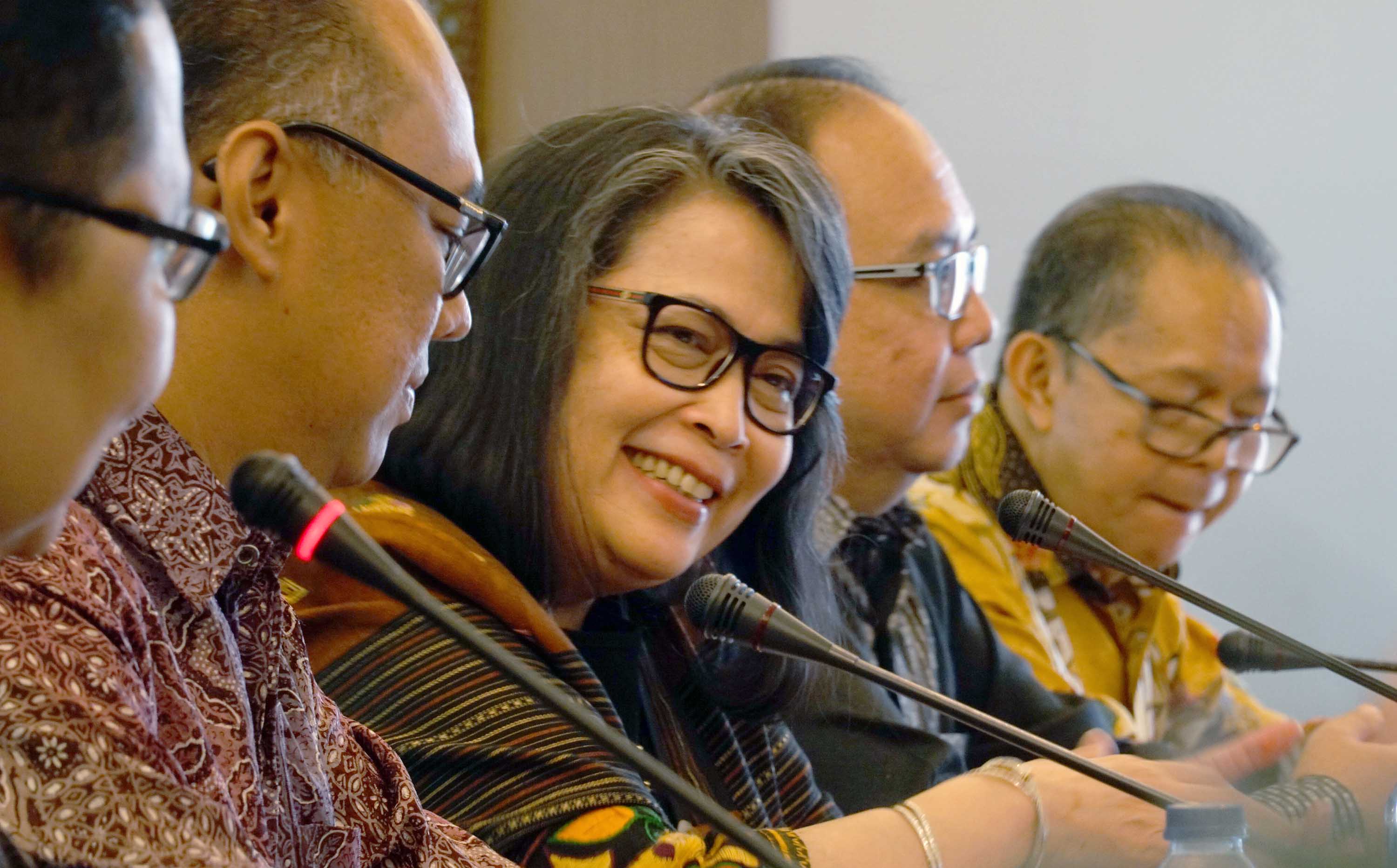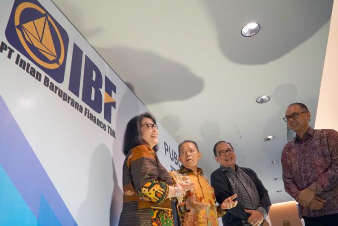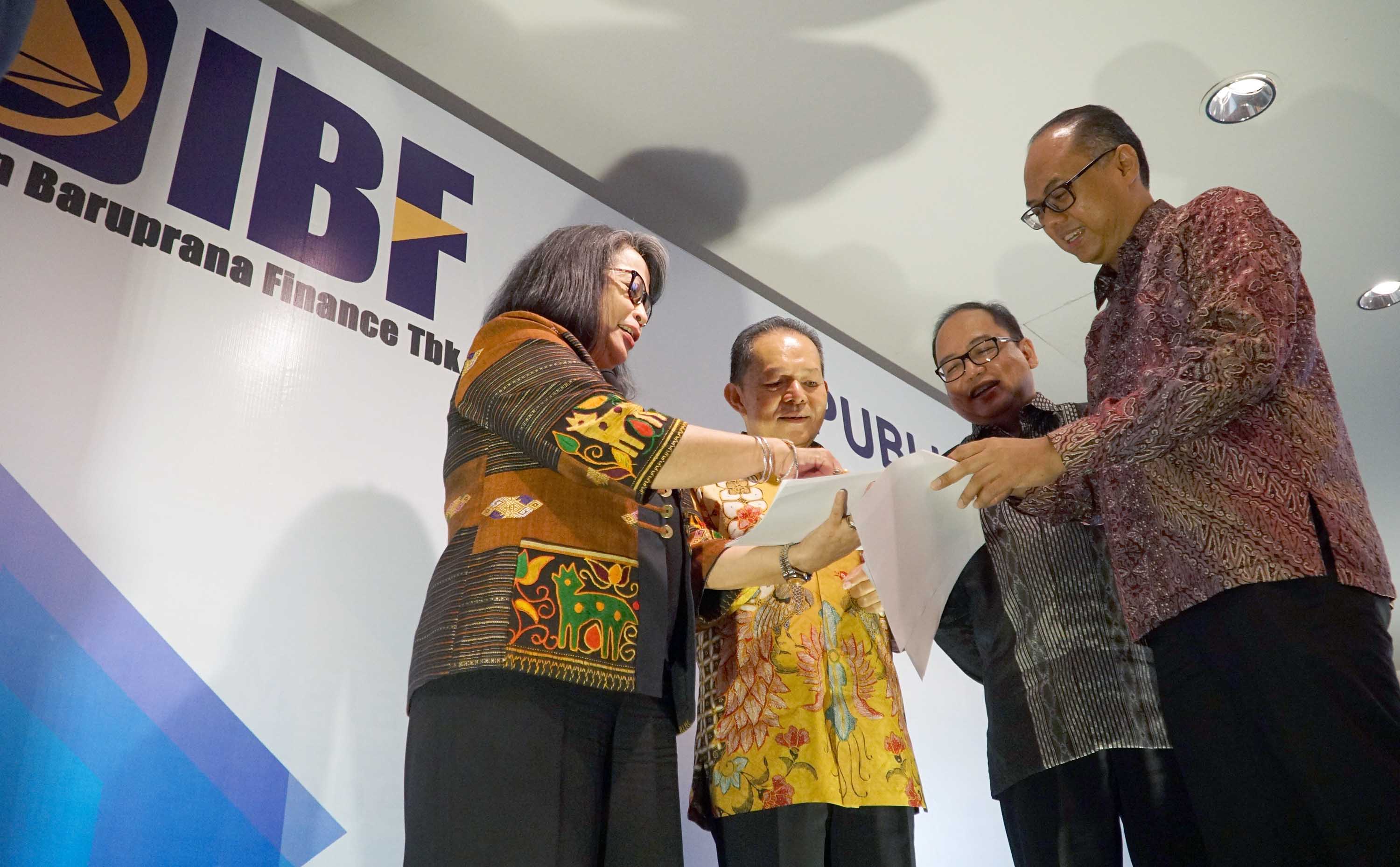 Kiri ke kanan, Direktur Utama PT Intan Baruprana Finance Tbk (IBFN) Carolina Dina Rusdiana , Komisaris Utama Willy Rumondor , Direktur Alexander Reyza dan Direktur Kurniawan Saktiaji berbincang usai paparan publik PT Intan Baruprana Finance Tbk (IBFN) di Jakarta, Kamis (20/12/2018). Dalam paparan publik kali ini perusahaan pembiayaan investasi ,IBFN menargetkan pertumbuhan pembiayaan hingga dua kali lipat di tahun 2019 serta perkenalan jajaran Direksi baru. Hingga saat ini mayoritas pendanaan untuk rencana penyaluran biaya di tahun mendatang berasal dari hasil rights issue, Dana hasil rights issue yang telah diterima perseroan sekitar Rp 77,768 miliar dimana juga menandai dimulai babak baru IBFN yang memiliki pemegang saham baru, PT Northcliff Indonesia. AKTUAL/Eko S Hilman