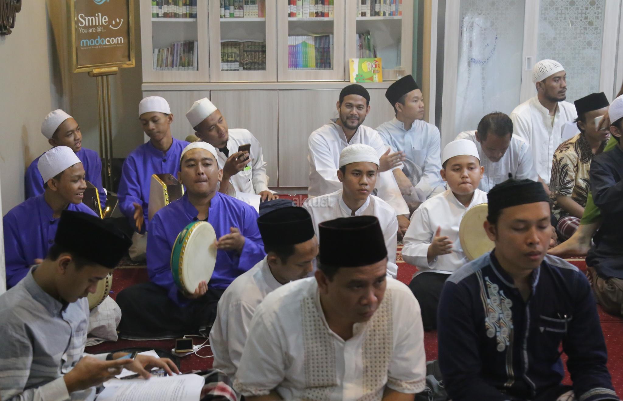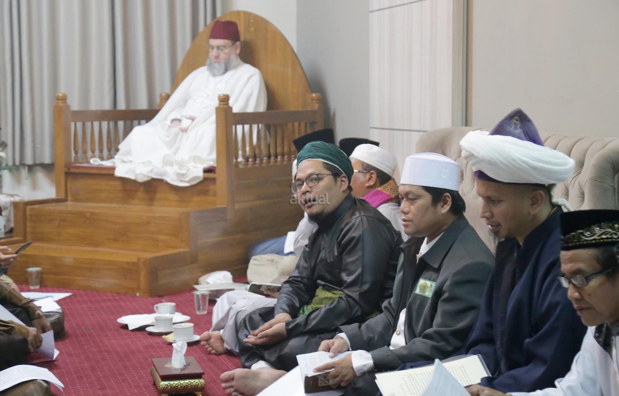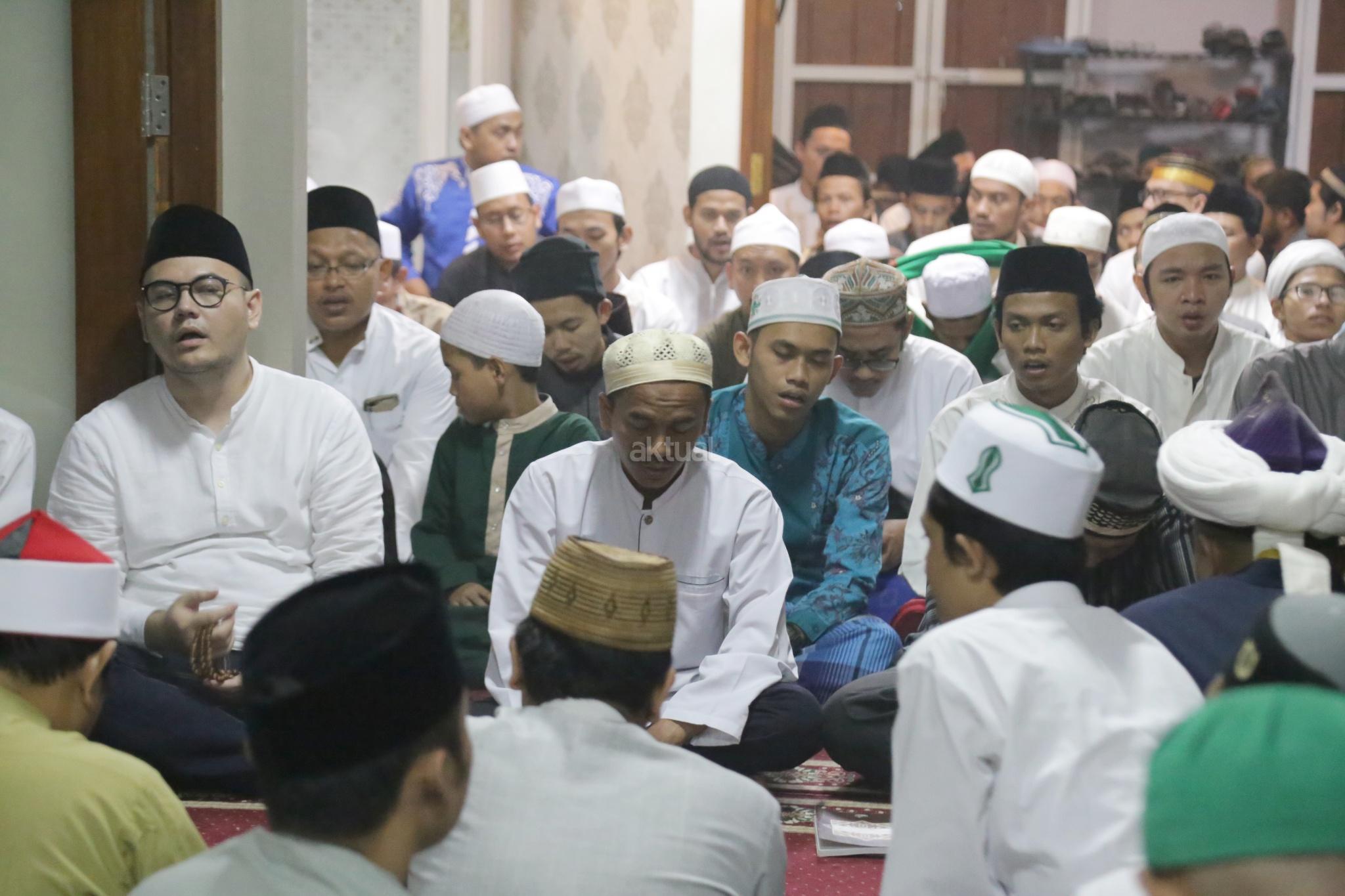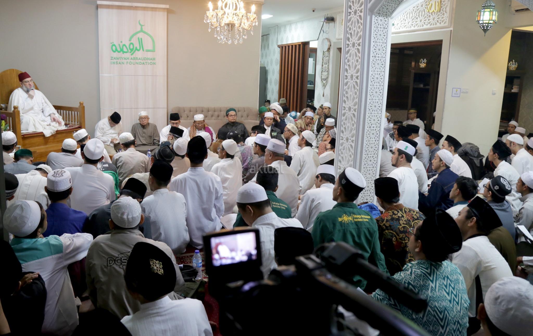 Suasana acara tajuk Malam Ijazah dan Mujahadah Kubro, JATMAN DKI di Zawiyah Arraudhah, Tebet, Jakarta Selatan, Minggu (29/4/18). Acara ini diisi dengan taushiyah dan pemberian ijazah kepada jemaah Majelis Ilmu Bulan Sya’ban. JATMAN DKI Jakarta mengelar acara Kajian Rutin Hadits Sunan Tirmidzi oleh KH. Ahmad Marwazie. Diikuti hampir seratus orang jamaah, acara hanya dijeda ishoma lalu dilanjut Pembacaan Khataman Kitab Hadist Arbaun Buldaniyah karya Syekh Yasin Fadani oleh Syeikh Dr. Yahya bin Abdurrazaq Ghoutsani, MA dan khotmil Qur’an jama’i. Ba’da Maghrib, Mudir Wustho DKI, KH. Muhammad Danial Nafis, M.Si memandu dzikir asasi/mujahadah. AKTUAL/Tino Oktaviano