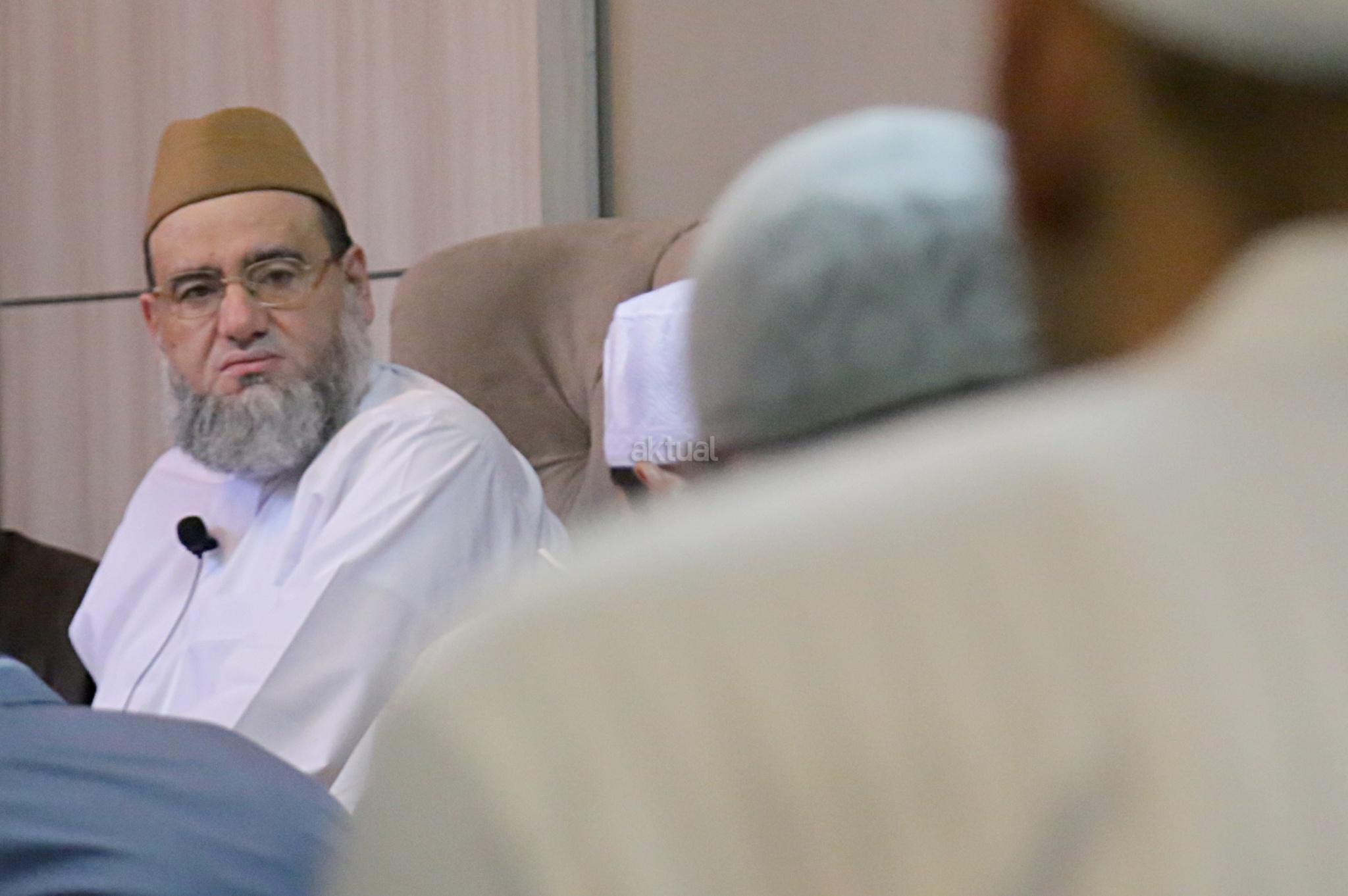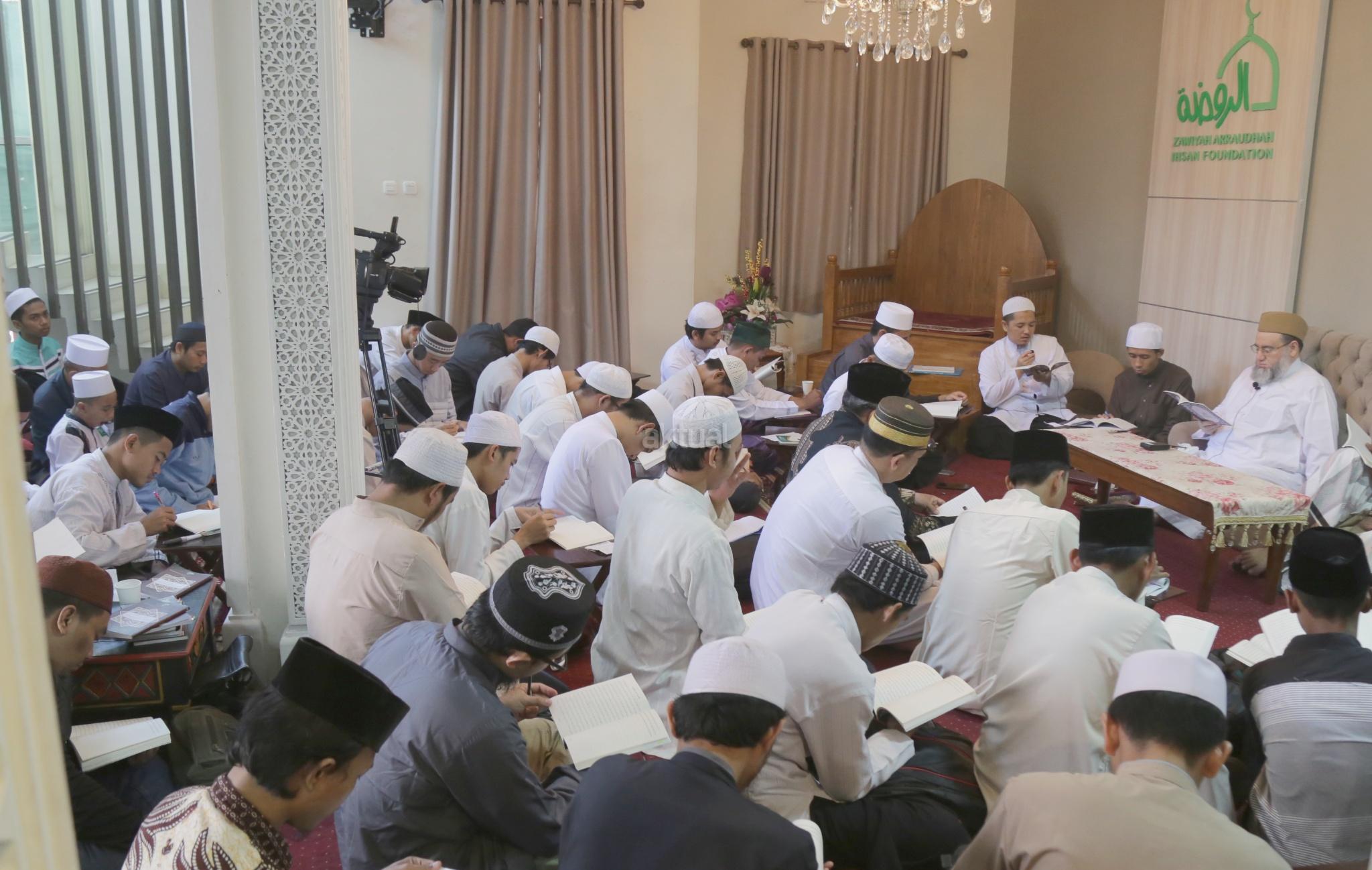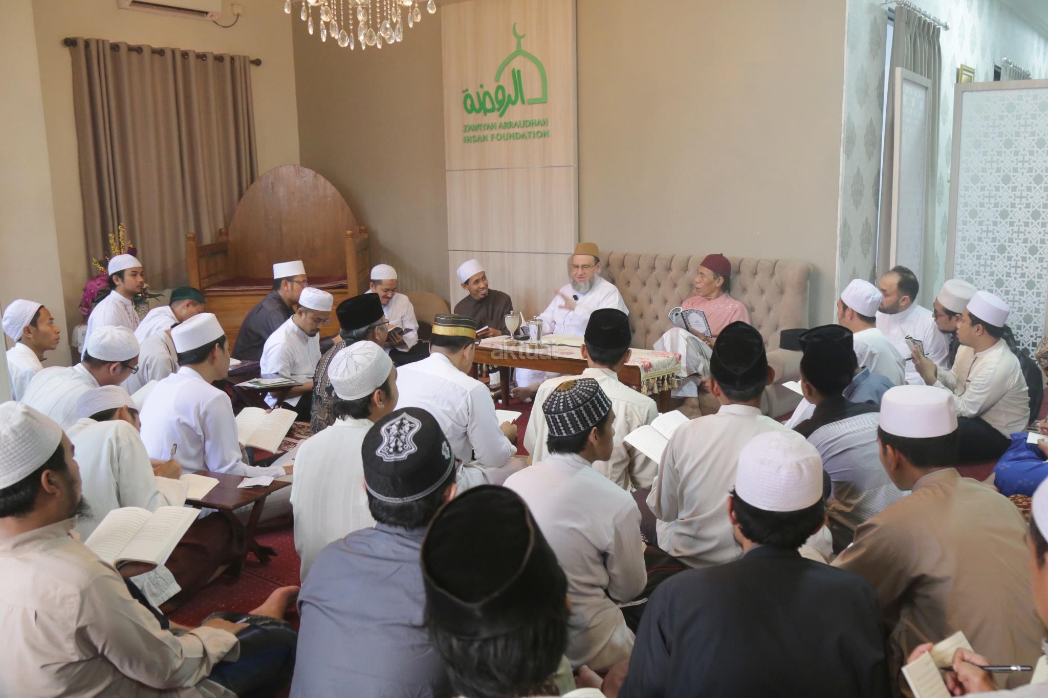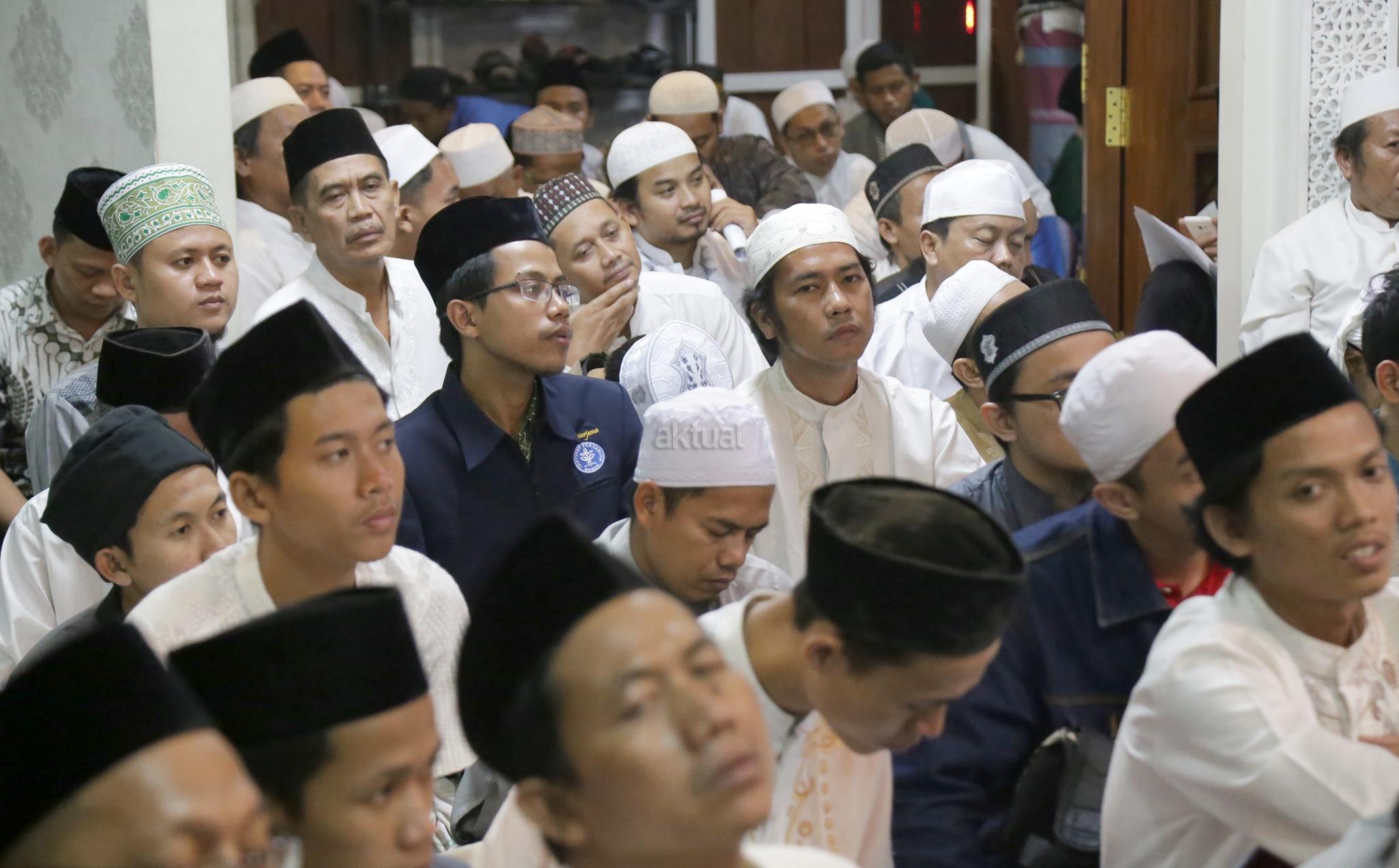 Suasana acara tajuk Malam Ijazah dan Mujahadah Kubro, JATMAN DKI di Zawiyah Arraudhah, Tebet, Jakarta Selatan, Minggu (29/4/18). Acara ini diisi dengan taushiyah dan pemberian ijazah kepada jemaah Majelis Ilmu Bulan Sya’ban. JATMAN DKI Jakarta mengelar acara Kajian Rutin Hadits Sunan Tirmidzi oleh KH. Ahmad Marwazie. Diikuti hampir seratus orang jamaah, acara hanya dijeda ishoma lalu dilanjut Pembacaan Khataman Kitab Hadist Arbaun Buldaniyah karya Syekh Yasin Fadani oleh Syeikh Dr. Yahya bin Abdurrazaq Ghoutsani, MA dan khotmil Qur’an jama’i. Ba’da Maghrib, Mudir Wustho DKI, KH. Muhammad Danial Nafis, M.Si memandu dzikir asasi/mujahadah. AKTUAL/Tino Oktaviano