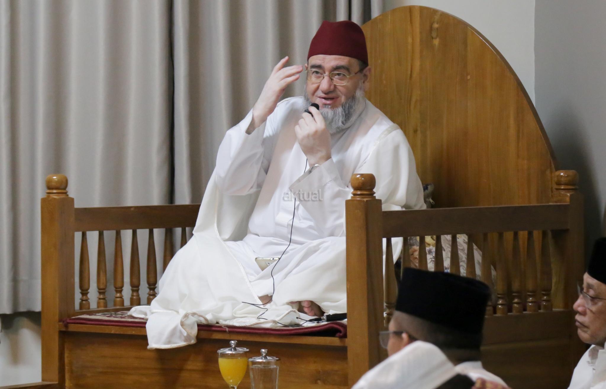 Ulama dari Madinah Munawarah Syekh Dr. Yahya bin Abdurrazaq Ghoutsani memberikan tausiyah saat acara tajuk Malam Ijazah dan Mujahadah Kubro, Ahad, di Zawiyah Arraudhah, Tebet, Jakarta Selatan Minggu (29/4/18). Acara ini diisi dengan taushiyah dan pemberian ijazah kepada jemaah Majelis Ilmu Bulan Sya’ban. JATMAN DKI Jakarta mengelar acara Kajian Rutin Hadits Sunan Tirmidzi oleh KH. Ahmad Marwazie. Diikuti hampir seratus orang jamaah, acara hanya dijeda ishoma lalu dilanjut Pembacaan Khataman Kitab Hadist Arbaun Buldaniyah karya Syekh Yasin Fadani oleh Syeikh Dr. Yahya bin Abdurrazaq Ghoutsani, MA dan khotmil Qur’an jama’i. Ba’da Maghrib, Mudir Wustho DKI, KH. Muhammad Danial Nafis, M.Si memandu dzikir asasi/mujahadah. AKTUAL/Tino Oktaviano