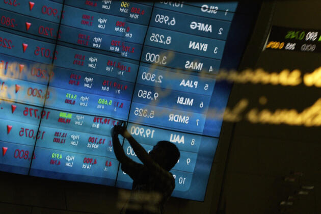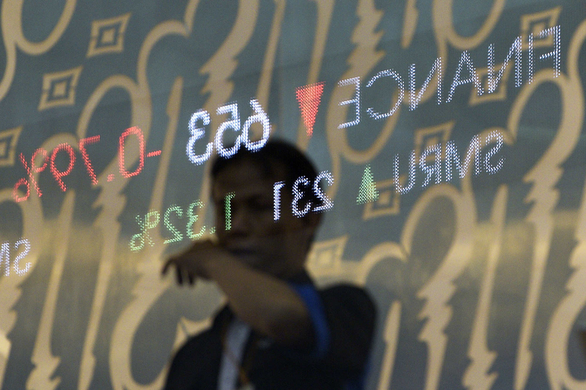 Seorang karyawan mengamati pergerakan angka Indeks Harga Saham Gabungan (IHSG) di Bursa Efek Indonesia, Jakarta, Senin (2/11). IHSG pada Senin sore ditutup menguat tipis sebesar 9,40 poin atau 0,2 persen ke 4.464,58 dengan 100 saham menguat, 175 melemah, dan 76 stagnan. ANTARA FOTO/Sigid Kurniawan/kye/15.
