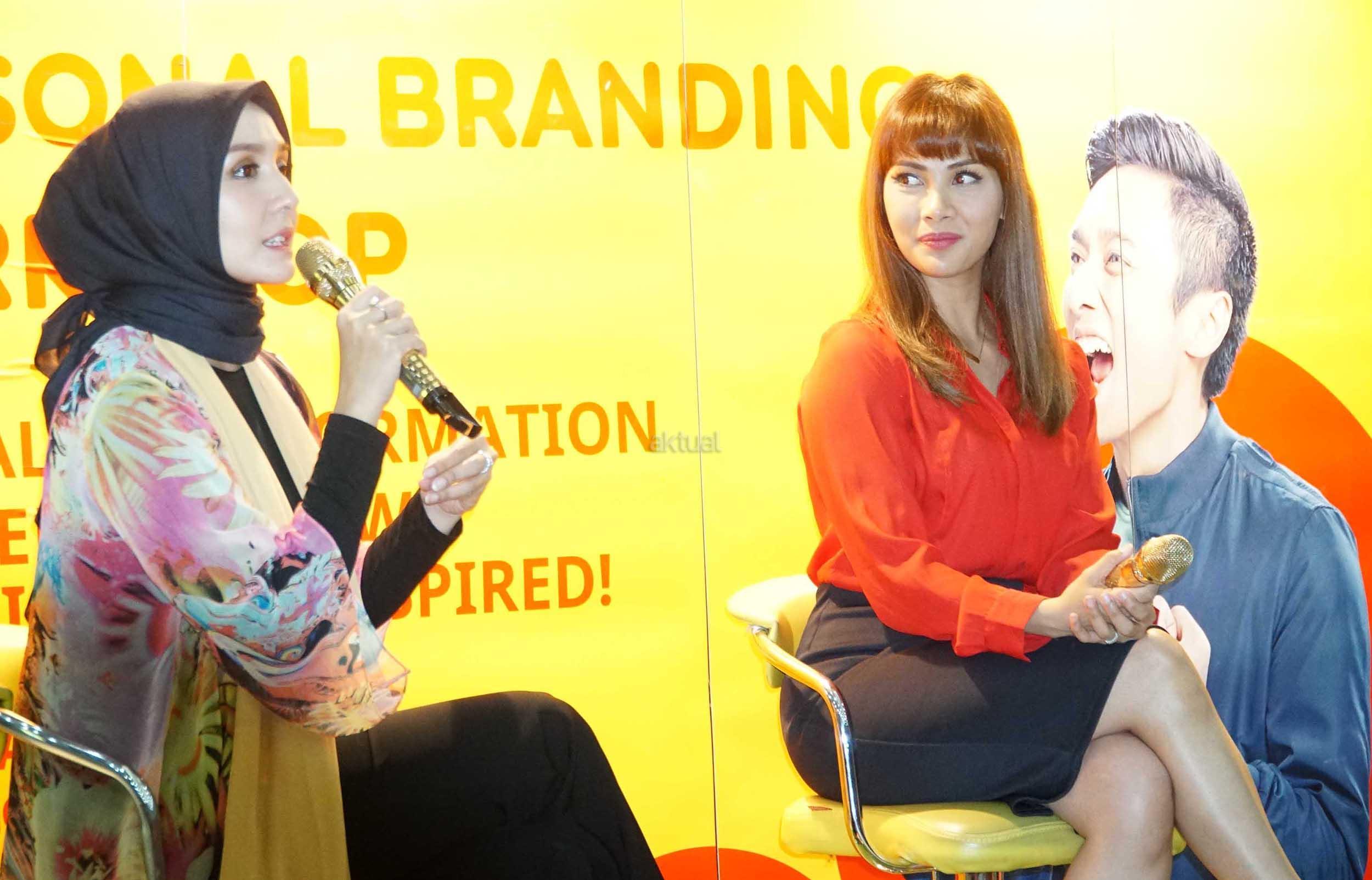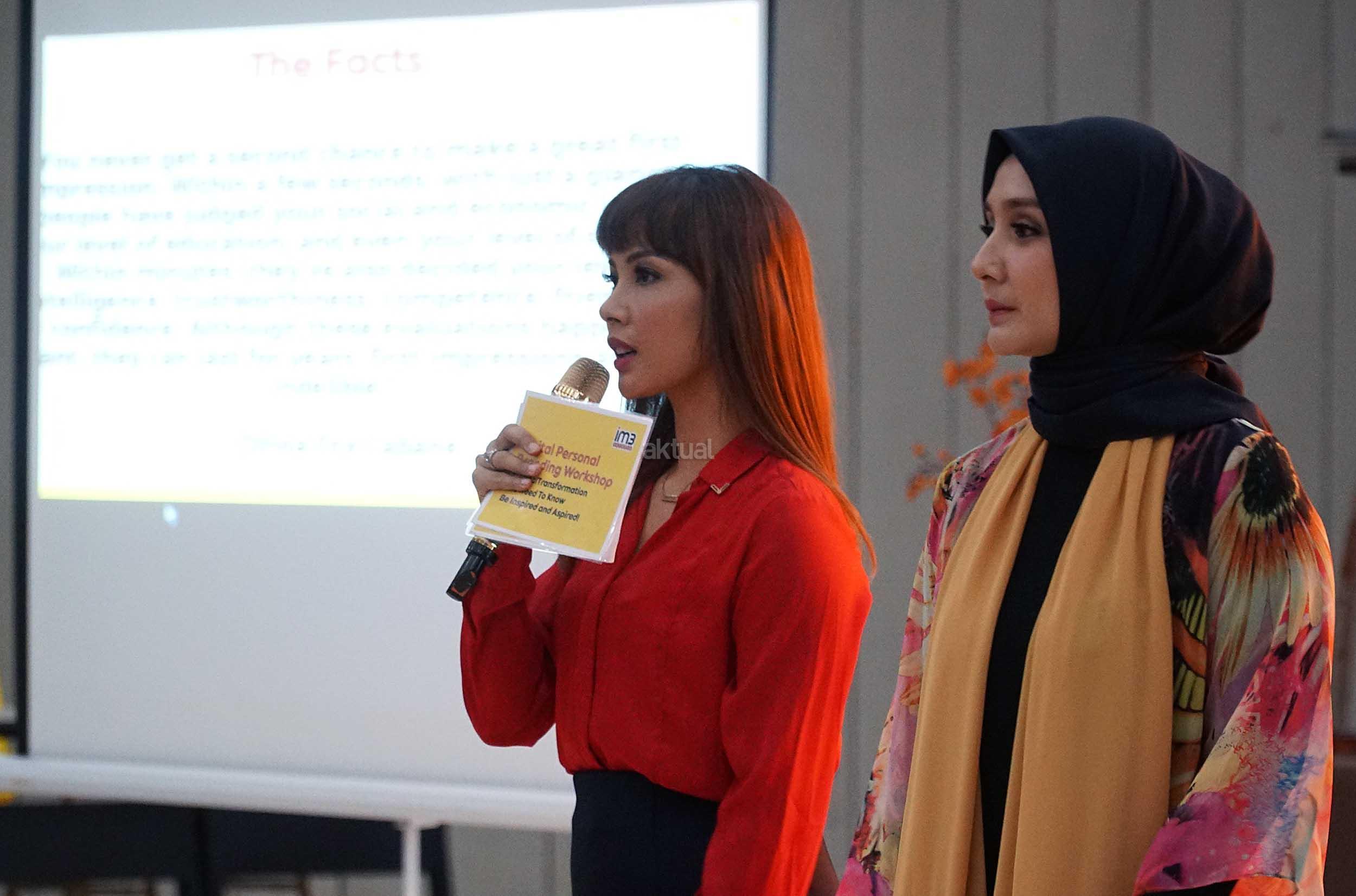 Digital Endorser & TV Host, Nadia Mulya (kiri) bersama Digital Endorser & Psycholist, Intan Erlita (kanan) saat menjawab pertanyaan peserta Workshop Digital Personal Branding di Universitas Mercubuana, Kamis (21/12/2017). IM3 Ooredoo menyadari bahwa era digital telah mengubah tingkah laku dan karakter masyarakat, sekaligus menciptakan generasi digital. AKTUAL/Eko S Hilman