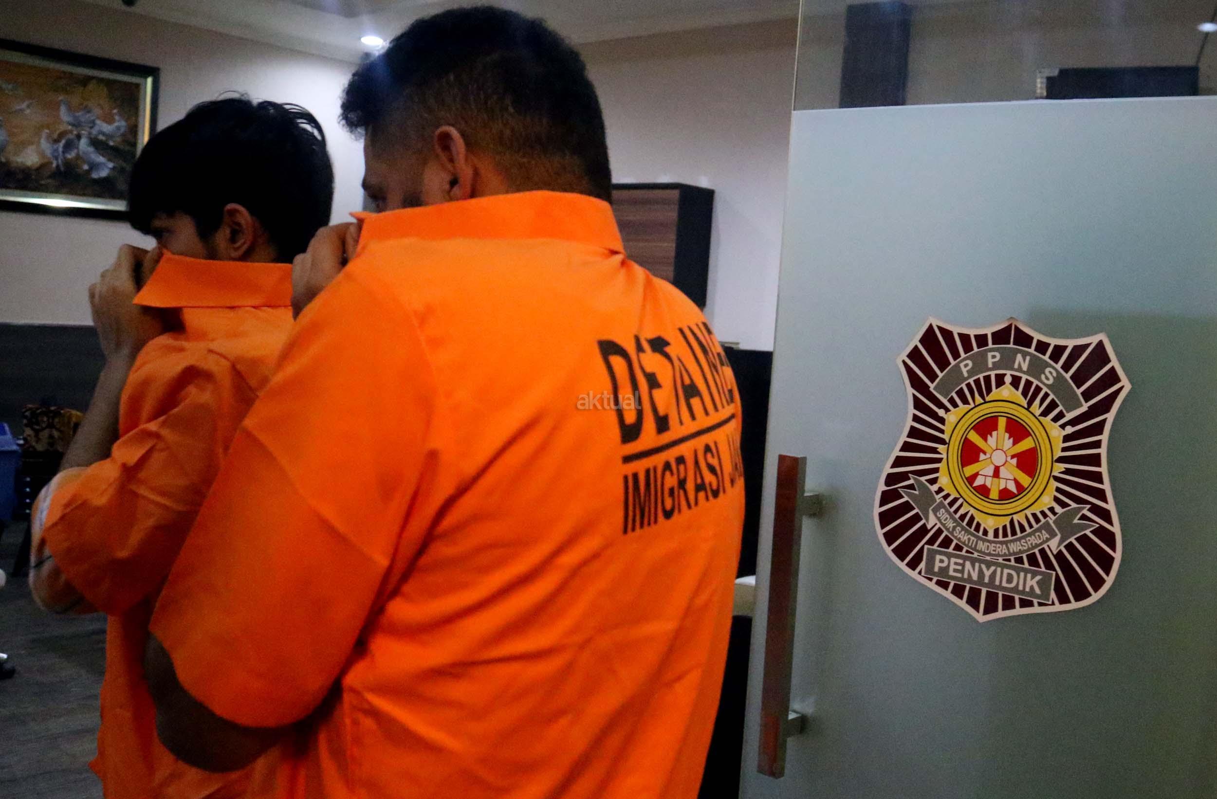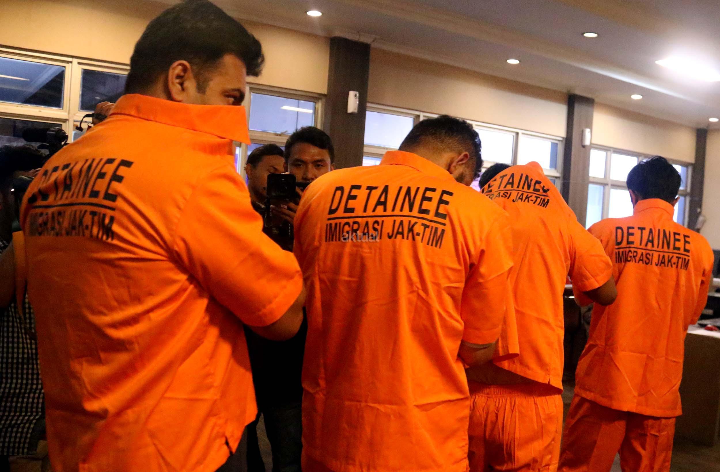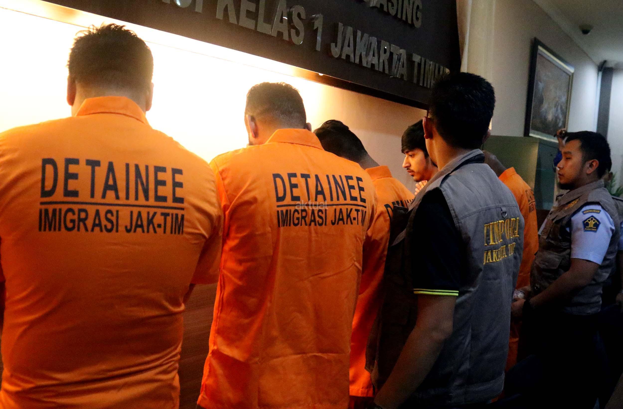 Petugas Imigrasi membawa para WNA yang berhasil diamankan untuk dimintain keterangan di kantor Imigrasi Kelas I Jakarta Timur, Rabu (18/1/2017). Kantor imigrasi jakarta timur mengamankan sebanyak 15 warga negara asing yang tinggal tanpa disertai dokumen yang resmi atau menyalahi ijin. Ke 15 wna tersebut diamankan dalam 2 kali kegiatan di dua apartemen yang berada di wilayah administrasi jakarta timur dan ke 15 warga negara asing tersebut berasal dari berbagai negara.