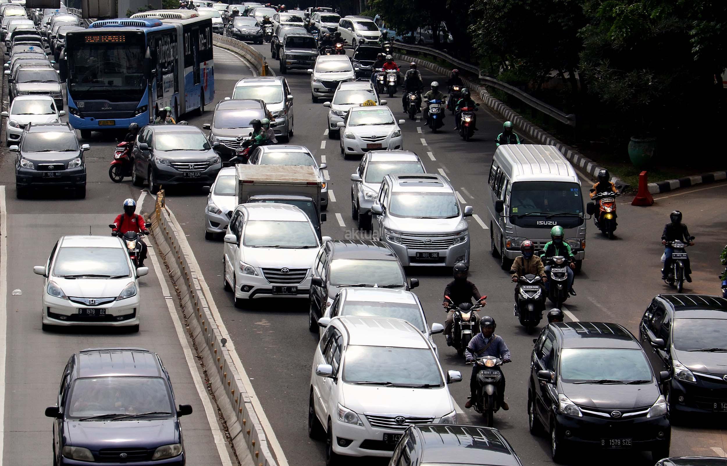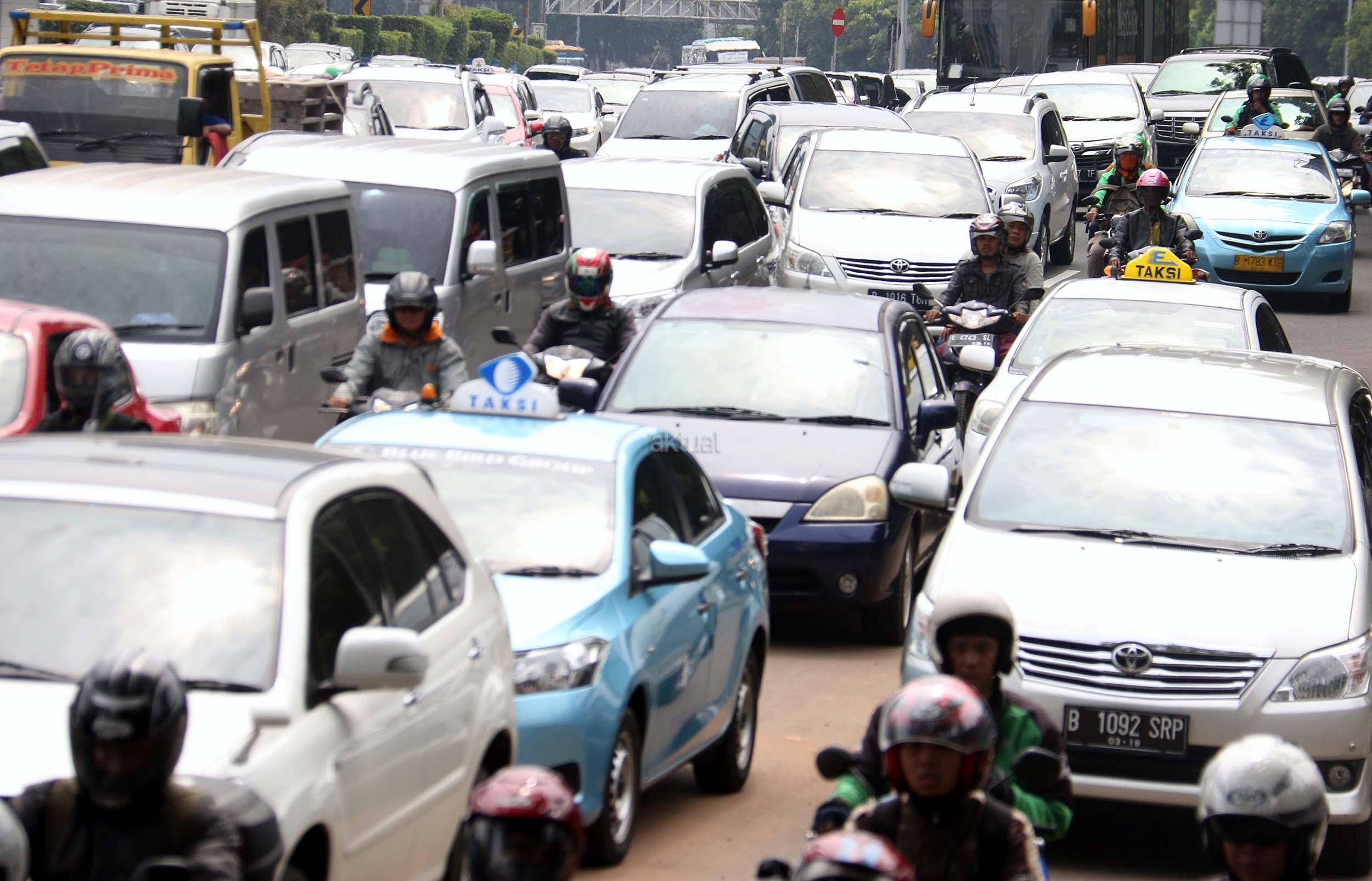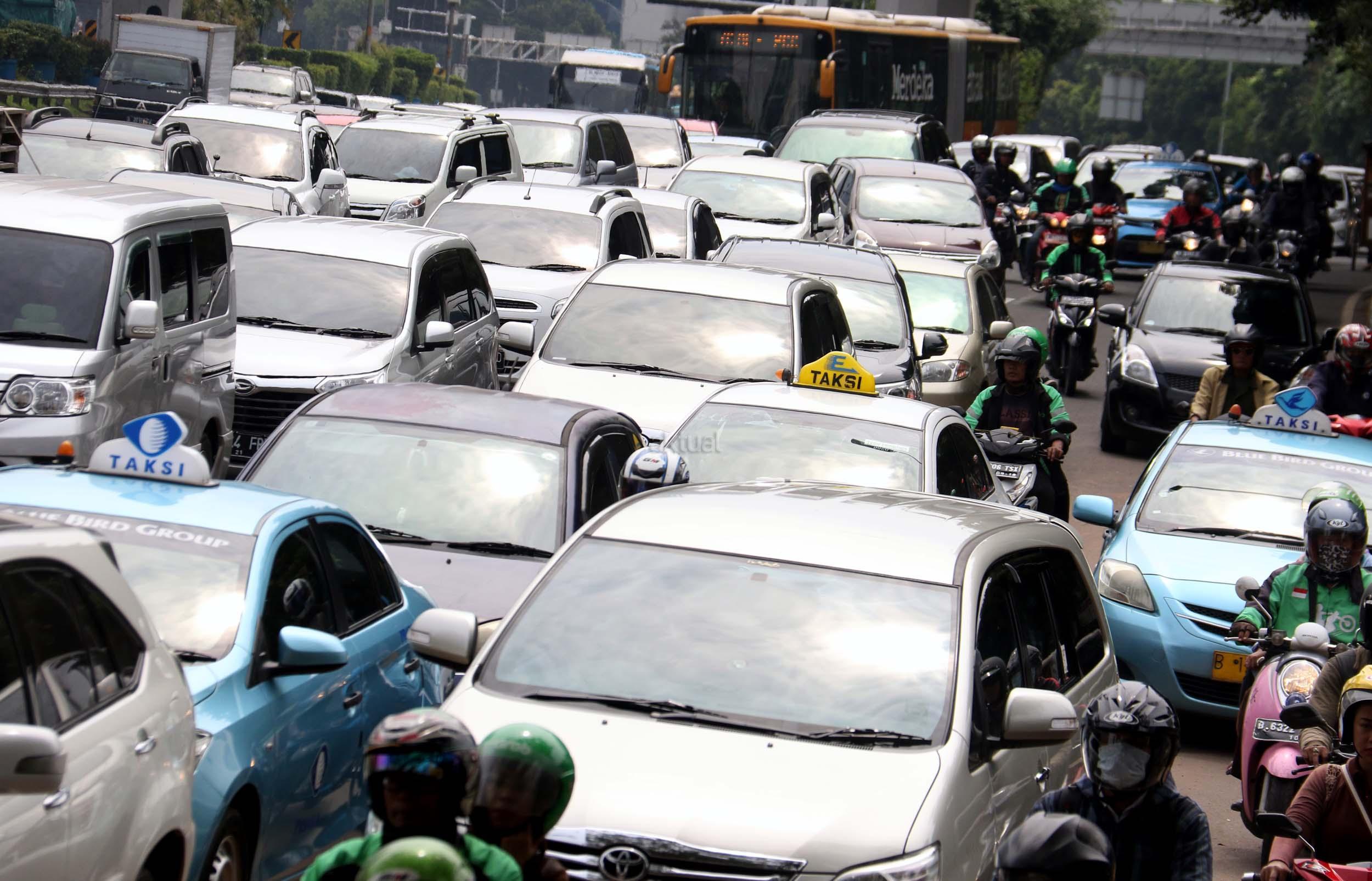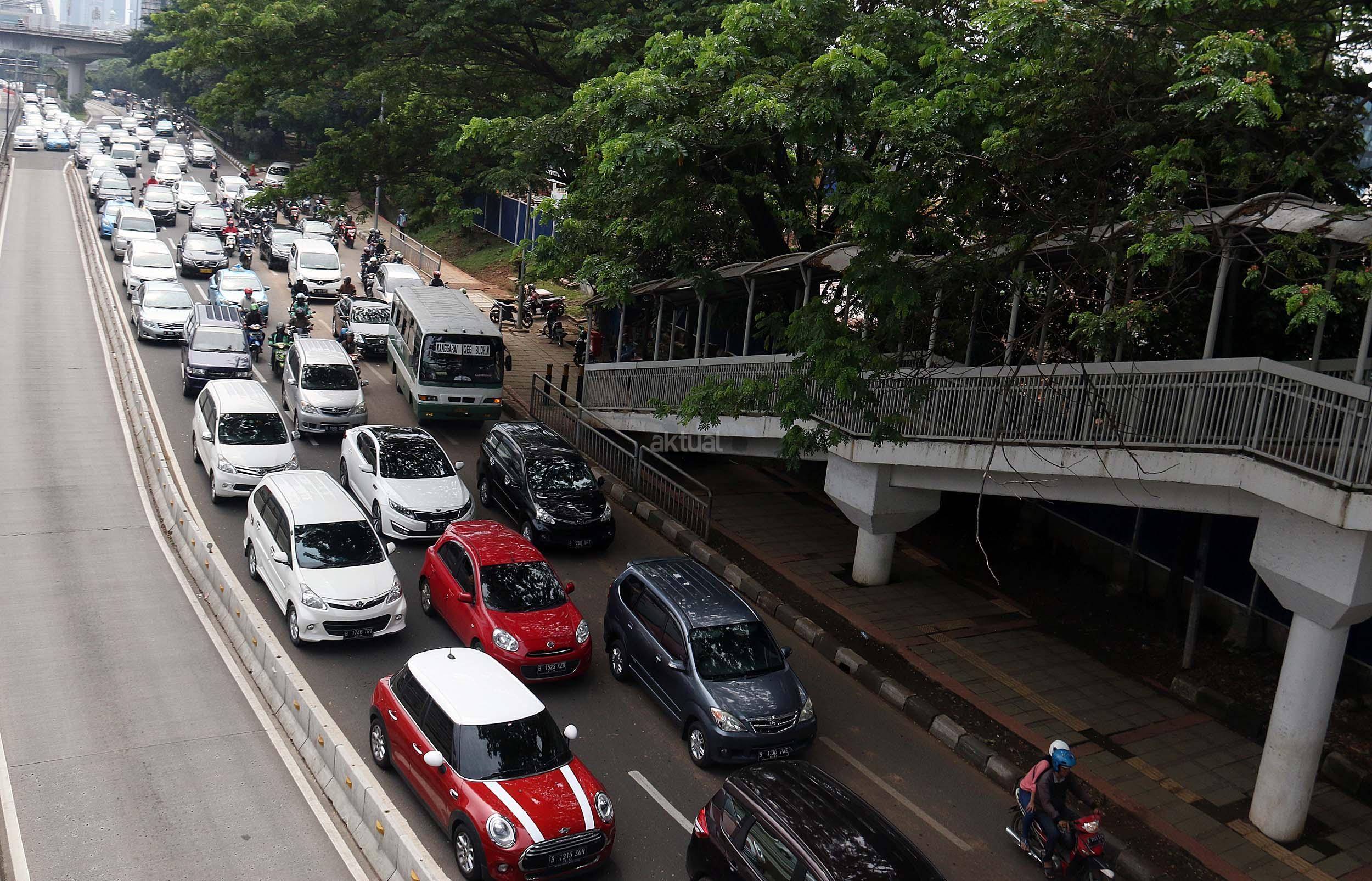 Suasana kemacetan lalu lintas di Jalan Gatot Soebroto, Jakarta, Senin (28/11/2016). Menurut survey bank data media internasional Numbeo, Jakarta menempati peringkat ke-17 sebagai kota termacet di dunia dan memiliki indeks kemacetan 237,25 dengan rata-rata waktu tempuh di jalan 48,57 menit one way. AKTUAL/Munzir