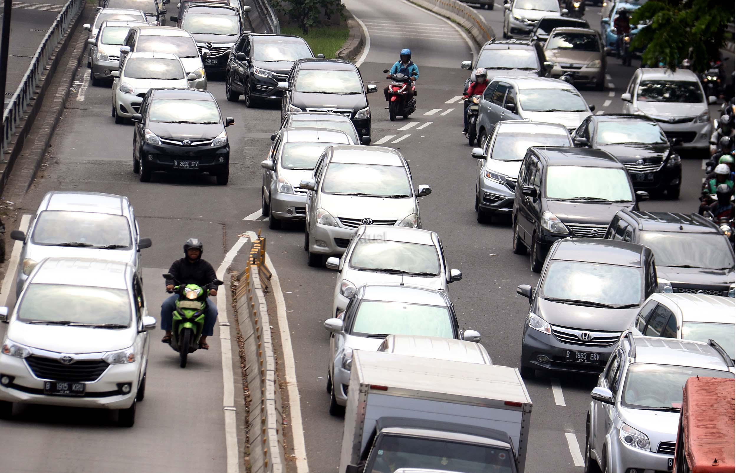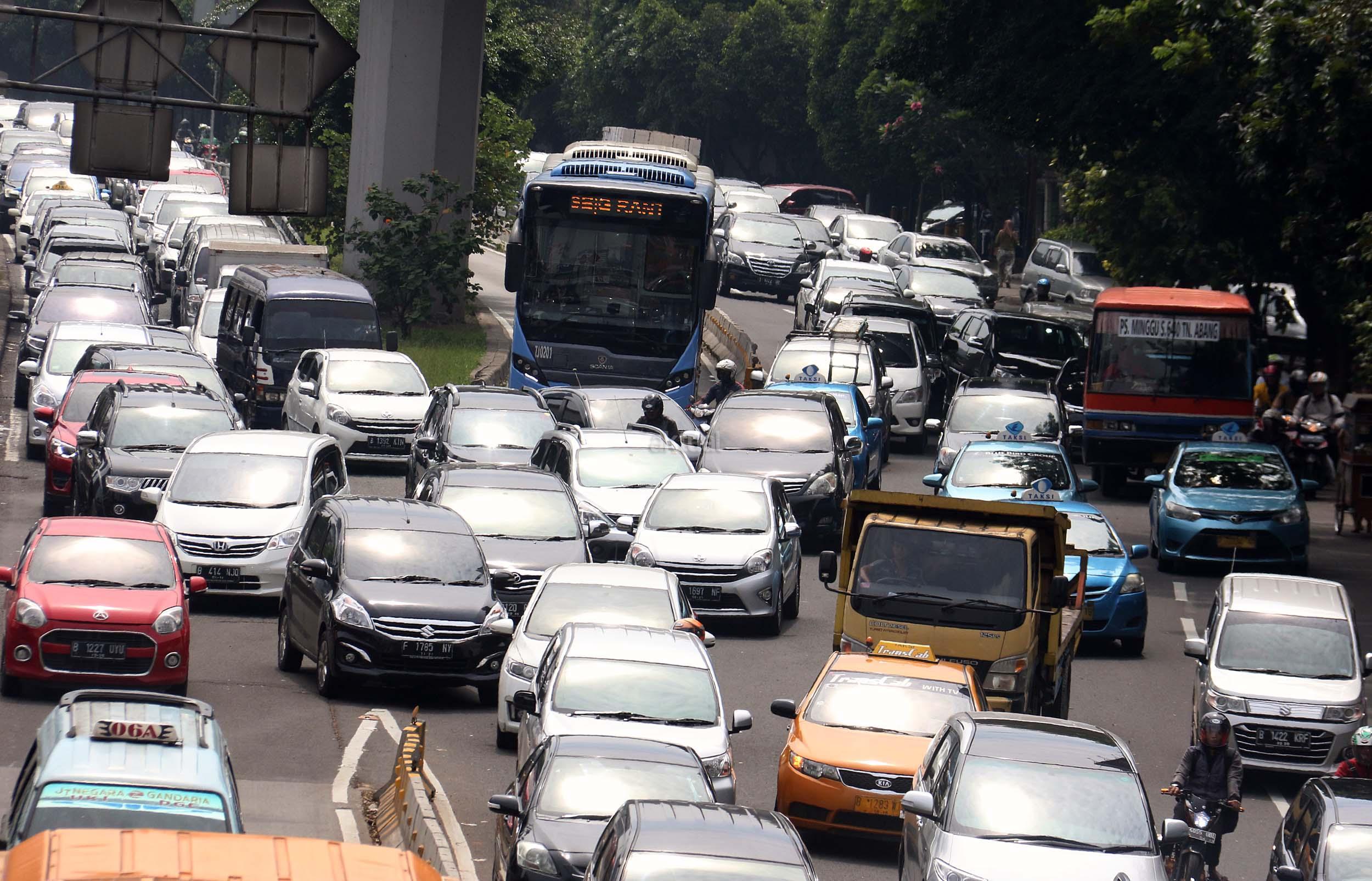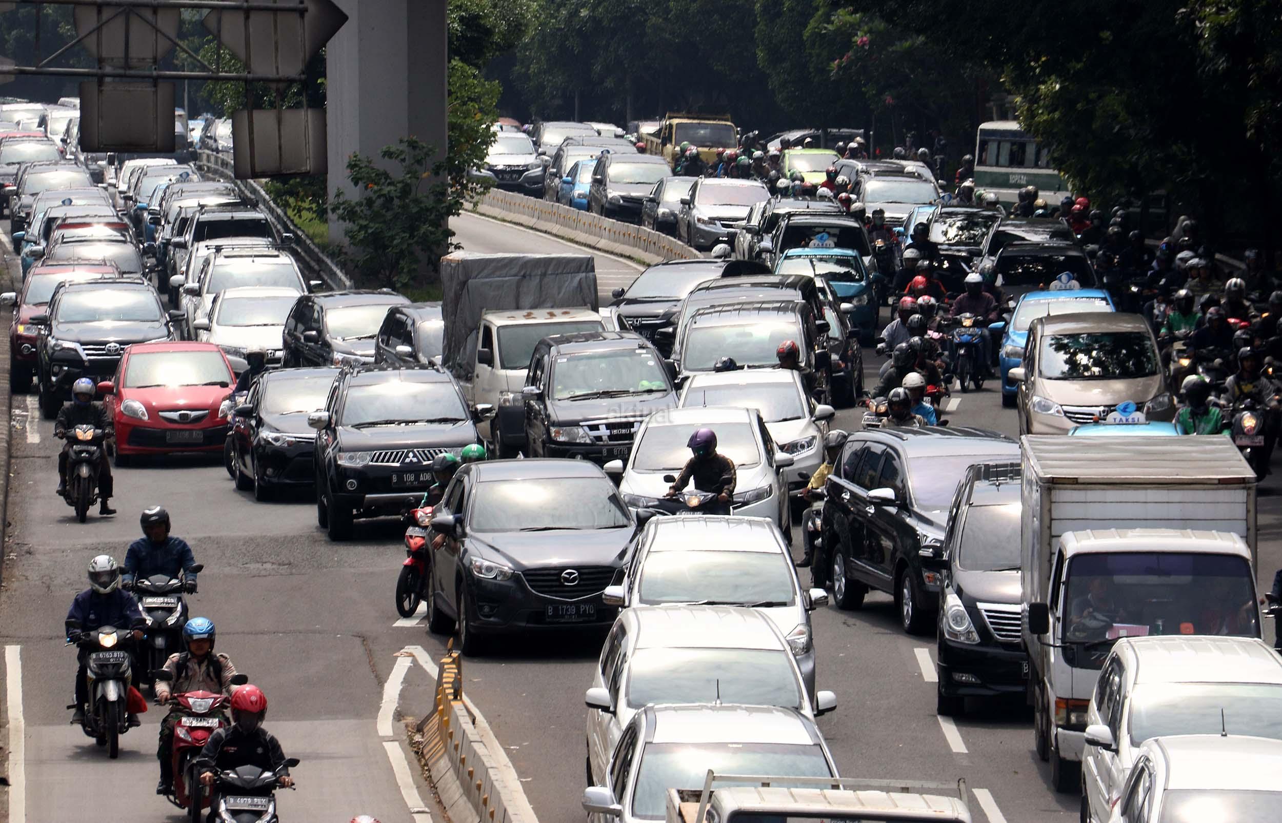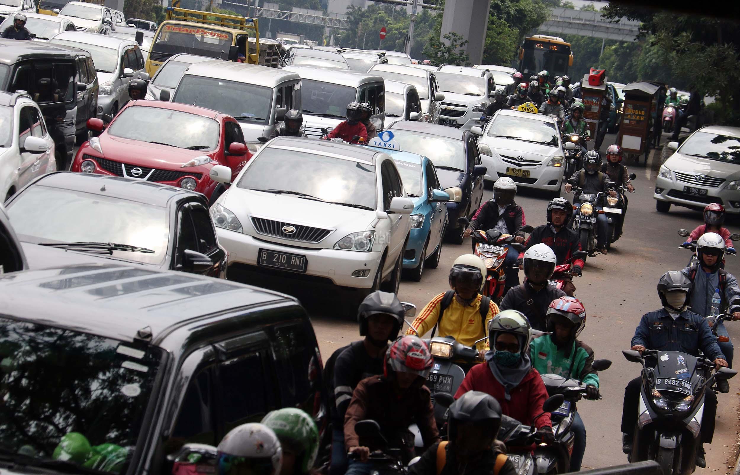 Suasana kemacetan lalu lintas di Jalan Gatot Soebroto, Jakarta, Senin (28/11/2016). Menurut survey bank data media internasional Numbeo, Jakarta menempati peringkat ke-17 sebagai kota termacet di dunia dan memiliki indeks kemacetan 237,25 dengan rata-rata waktu tempuh di jalan 48,57 menit one way. AKTUAL/Munzir