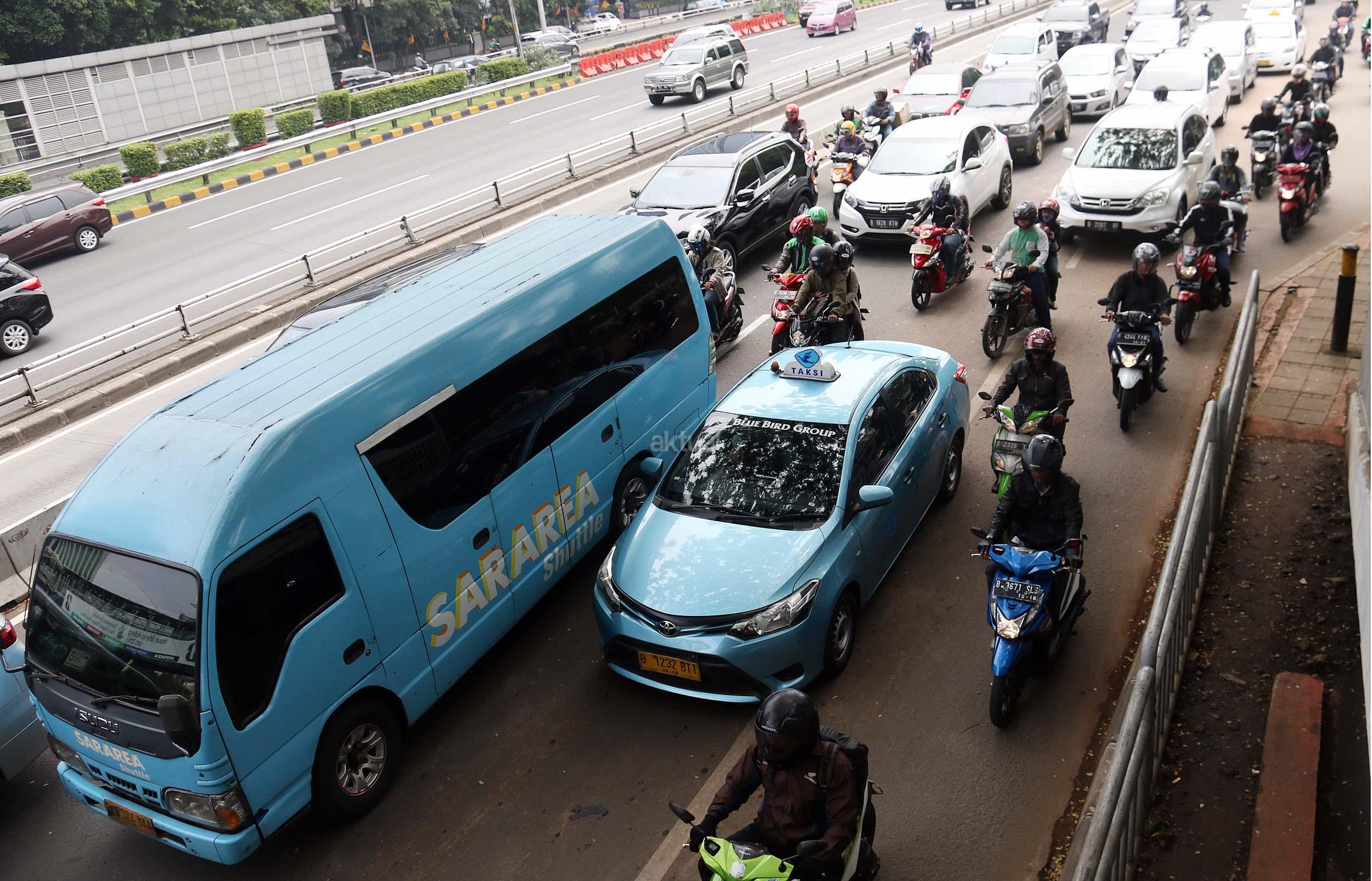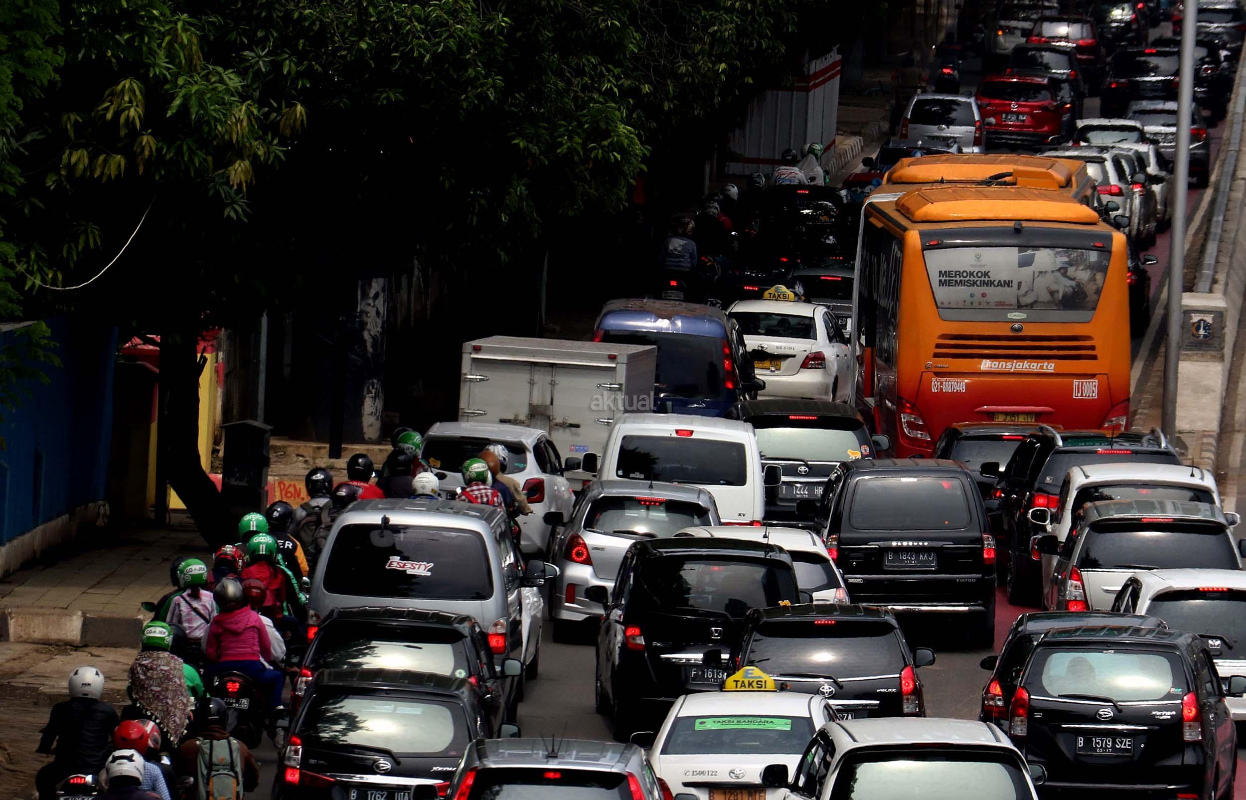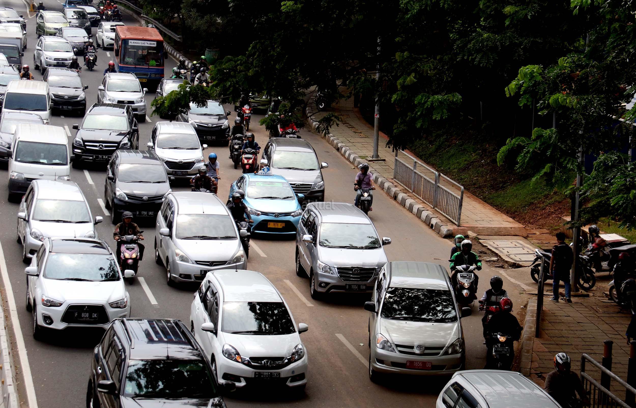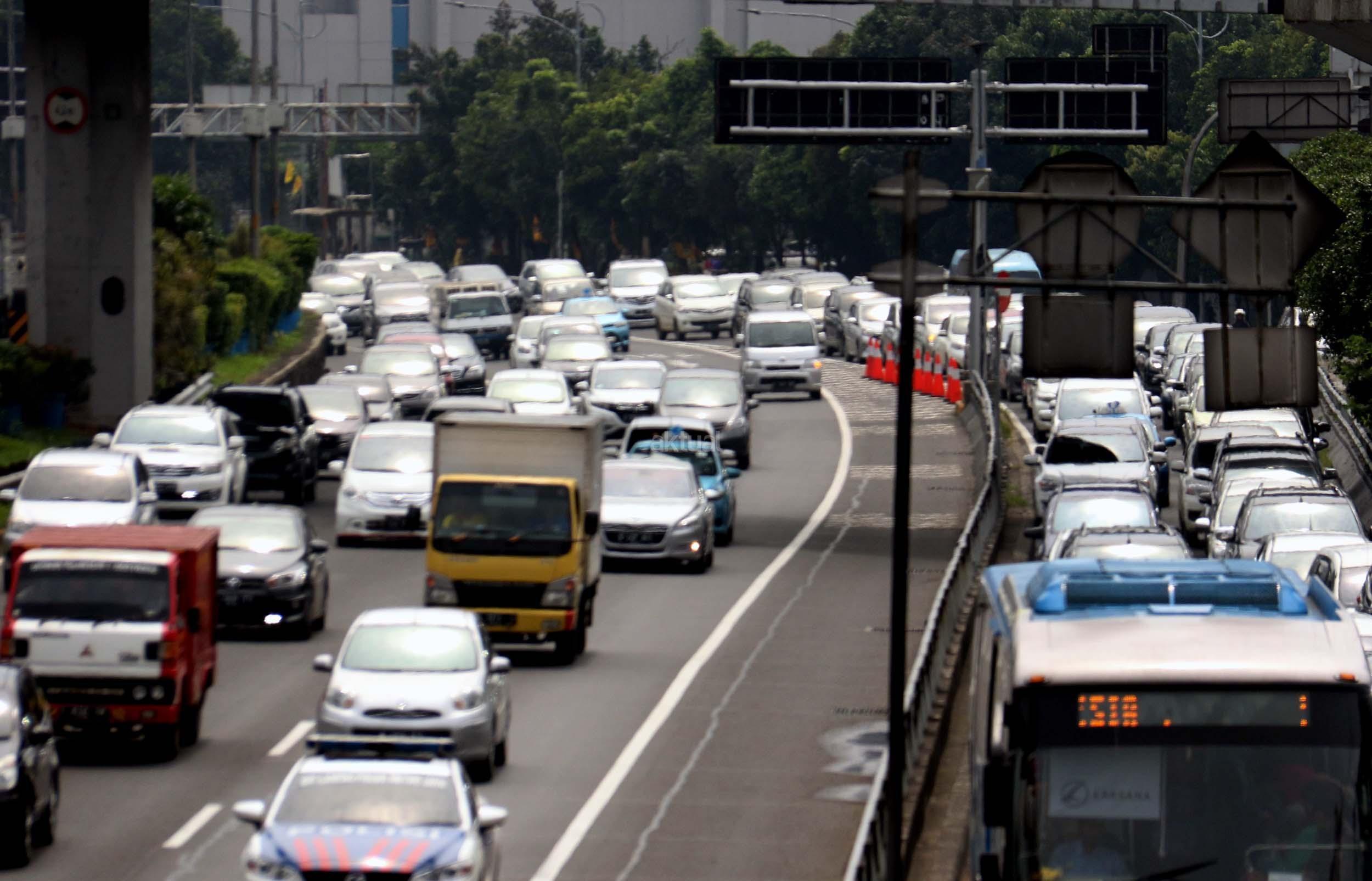 Suasana kemacetan lalu lintas di Jalan Gatot Soebroto, Jakarta, Senin (28/11/2016). Menurut survey bank data media internasional Numbeo, Jakarta menempati peringkat ke-17 sebagai kota termacet di dunia dan memiliki indeks kemacetan 237,25 dengan rata-rata waktu tempuh di jalan 48,57 menit one way. AKTUAL/Munzir