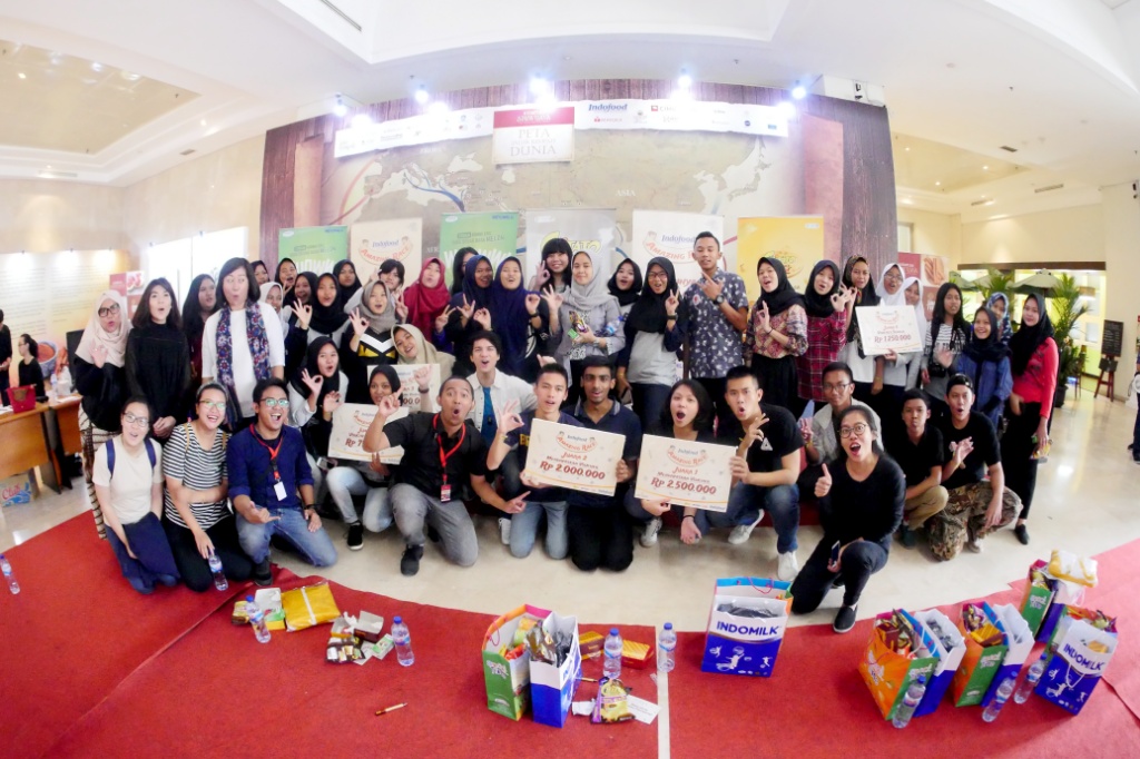 Digital Marketing Manager PT Indofood Sukses Makmur Tbk Vini Juliana dan Bintang Tamu Endy Arfian foto bersama peseta usai acara Indofood Amazing Race dan Pameran Jalur Rempah Museum Nasional, Jakarta Pusat, Sabtu (18/11). Kegiatan ini digelar Indofood dan Jalur Rempah dengan tujuan agar anak-anak muda lebih mengenal tentang rempah-rempah Indonesia dan perdagangannya yang melegenda. AKTUAL/HO