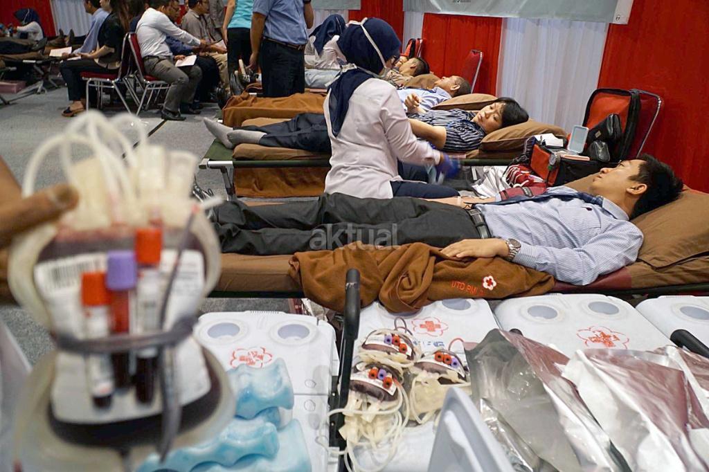 Para peserta donor darah di Kantor Sudirman Plaza, jakarta, senin (9/10). Indofood bekerja sama dengan PMI mengelar acara donor darah dalam rangka memperingati Hari Sumpah Pemuda.Secara rutin, Indofood melaksnakan Donor darah sejak tahun 1994 yang dilaksanakan setiap 3 bulan sekali. Kegiatan donor darah yang melibatkan karyawan Indofood dan masyarakat sekitar kantor pusat, sepanjang tahun 2016 lalu mengumpulkan sekitar 1.600 kantong darah. Kali ini dengan semangat ” Ayo Gelorakan Peduli Sesama” acara ini menargetkan sekitar 500 pendonor yang berpartisipasi dalam acara ini. AKTUAL/Eko S Hilman