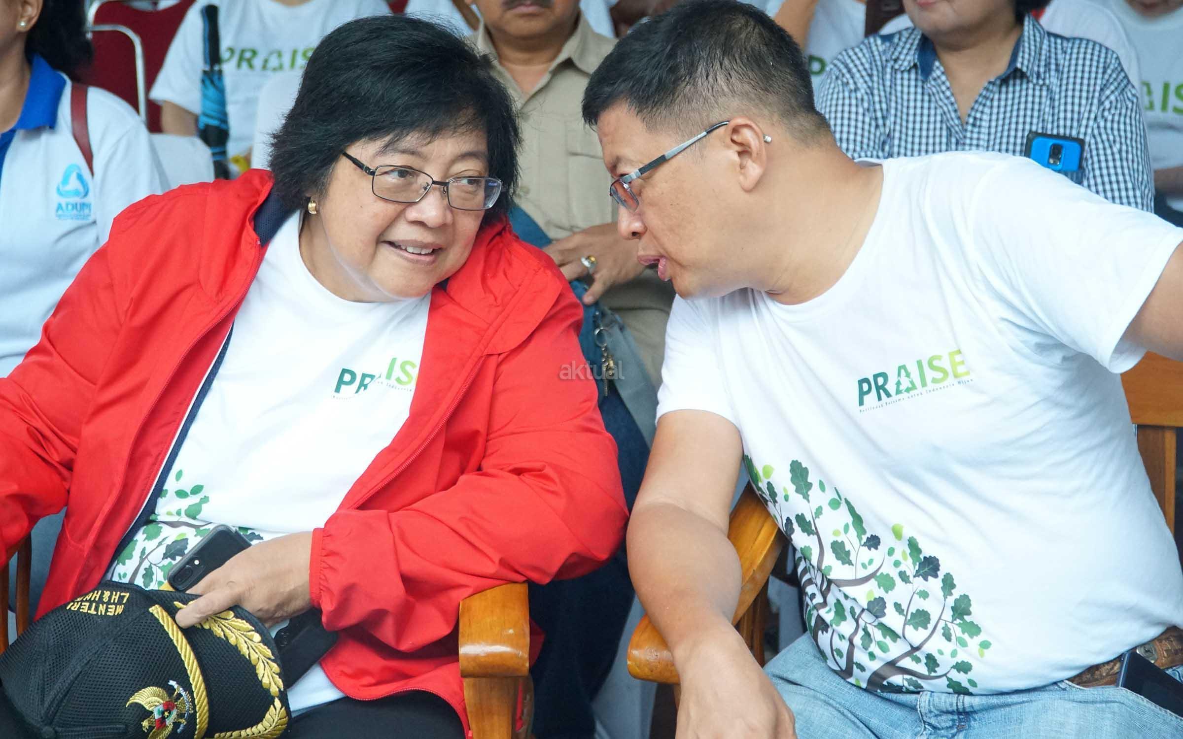 Menteri Lingkungan Hidup dan Kehutanan Siti Nurbaya Bakar (kiri) berbincang dengan GM Corporate Communications PT Indofood Sukses Makmur Tbk Stefanus Indrajati (kiri) disela kegiatan peringatan Hari Peduli Sampah Nasional 2017, di Jakarta, Minggu (19/2). Pada kesempatan itu juga diluncurkan Aliansi untuk Kemasan dan Daur Ulang bagi Indonesia Berkelanjutan, PRAISE (Packaging and Recycling Alliance for Indonesia Sustainable Environtment) yang diprakarsai 6 perusahaan consumer goods Indonesia. AKTUAL/Eko S Hilman