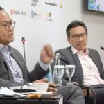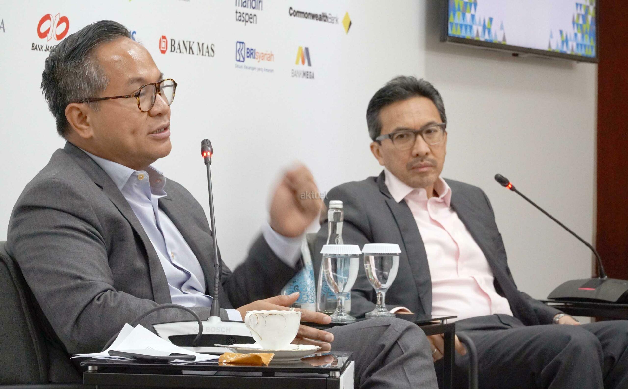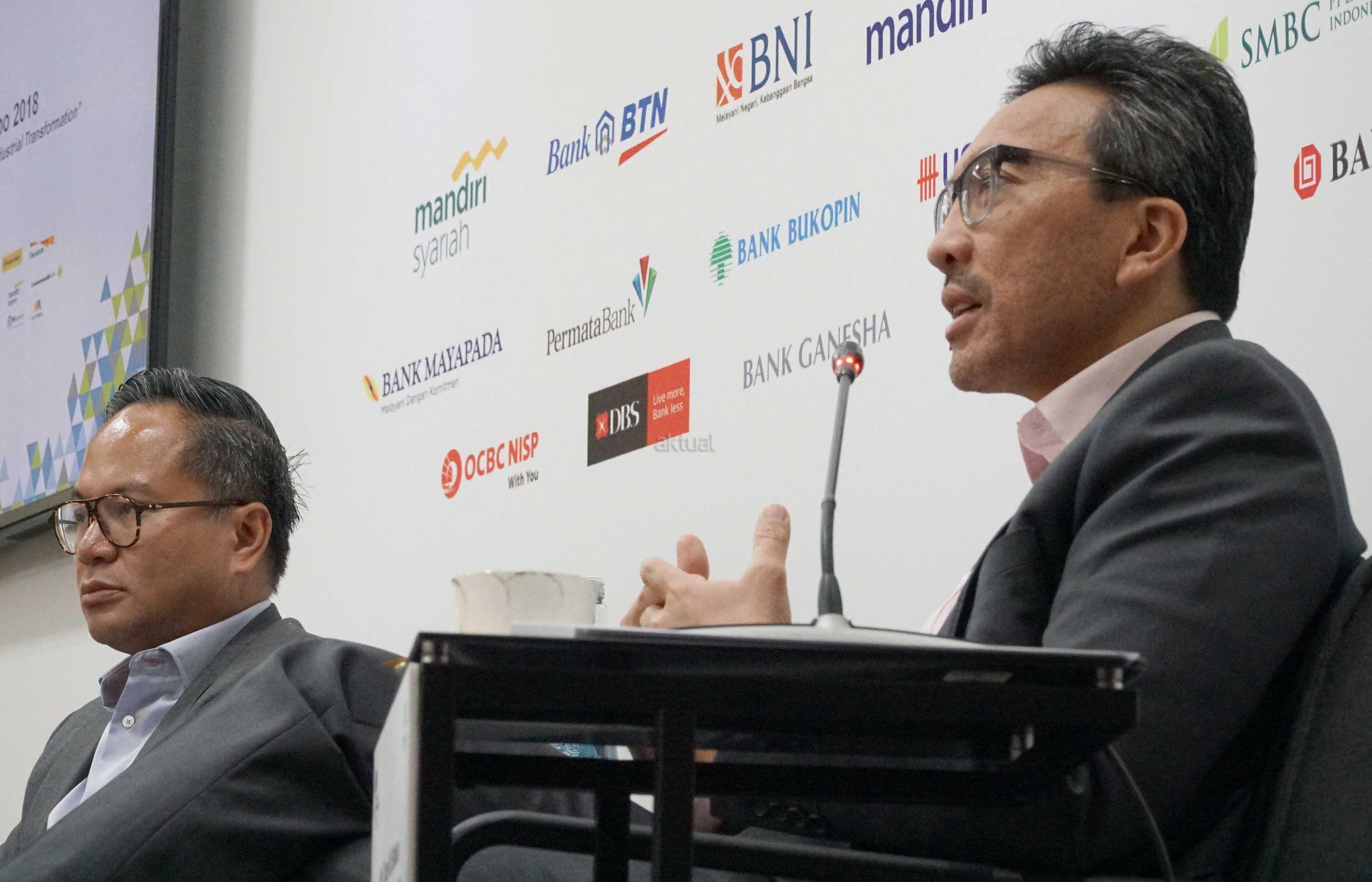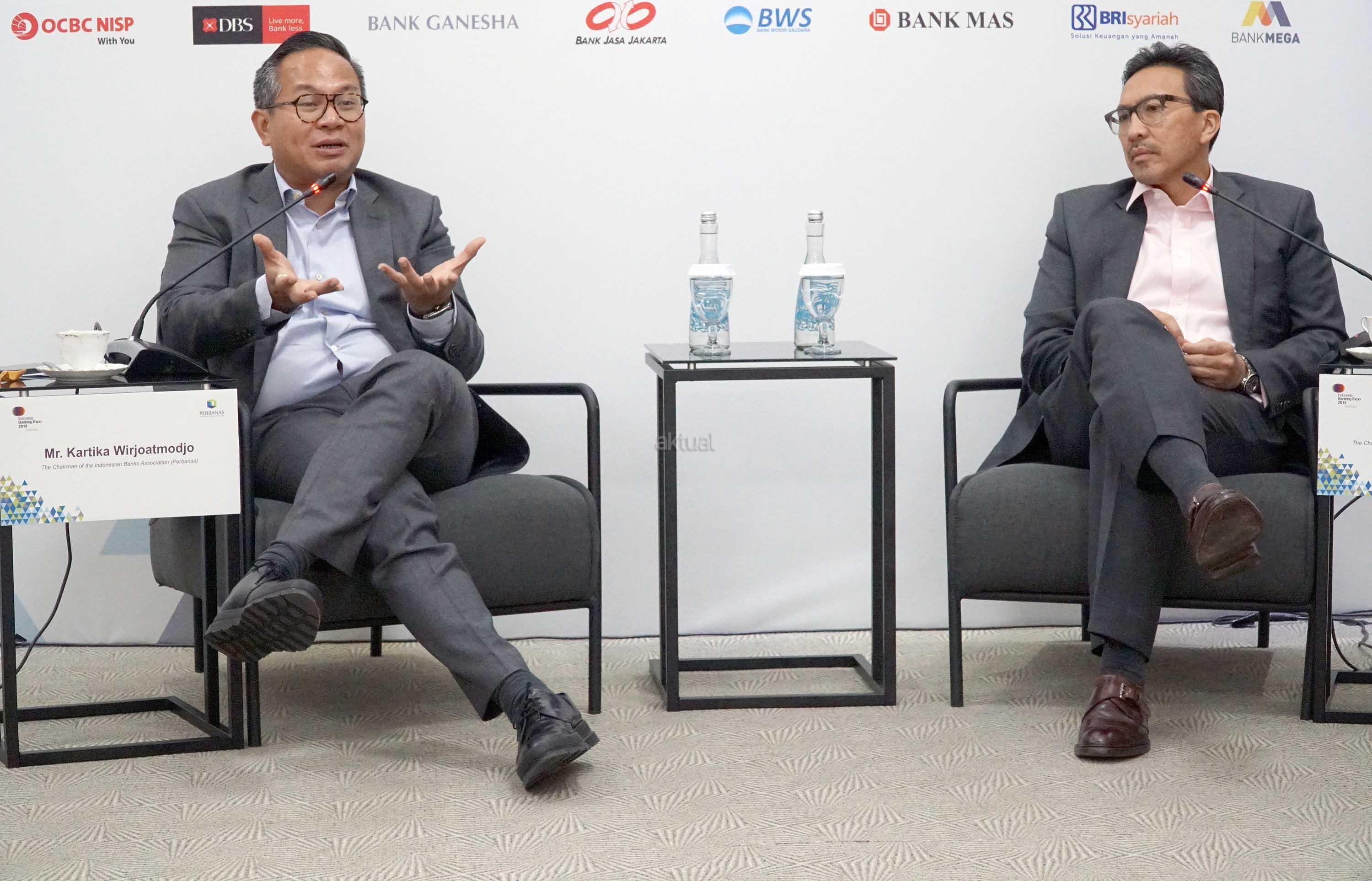 Ketua Steering Committee IBEX 2018 Tigor M. Siahaan (kanan) bersama Ketua Umum Perhimpunan Bank Nasional (Perbanas) Kartika Wirjoatmodjo (kiri) memberikan penjelasan kepada wartawan saat konferensi pers Indonesia Banking Expo (IBEX) 2018 di Jakarta, Rabu (14/11/2018). Perbanas akan menggelar IBEX 2018 pada Kamis (15/11/2018) dengan tema besar ‘Generasi Baru Perbankan Dalam Transformasi Industri Keempat’. Acara akan menghadirkan nara sumber dari berbagai sektor terkait dengan perbankan, untuk membahas peran teknologi dalam transformasi industri generasi keempat serta bagaimana sektor perbankan harus menyikapinya. AKTUAL/Eko S Hilman