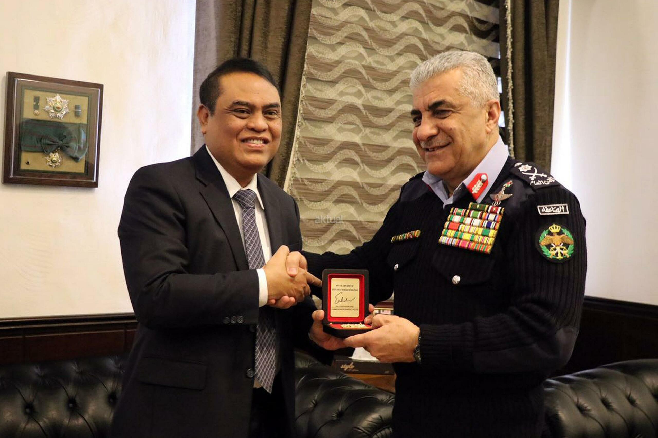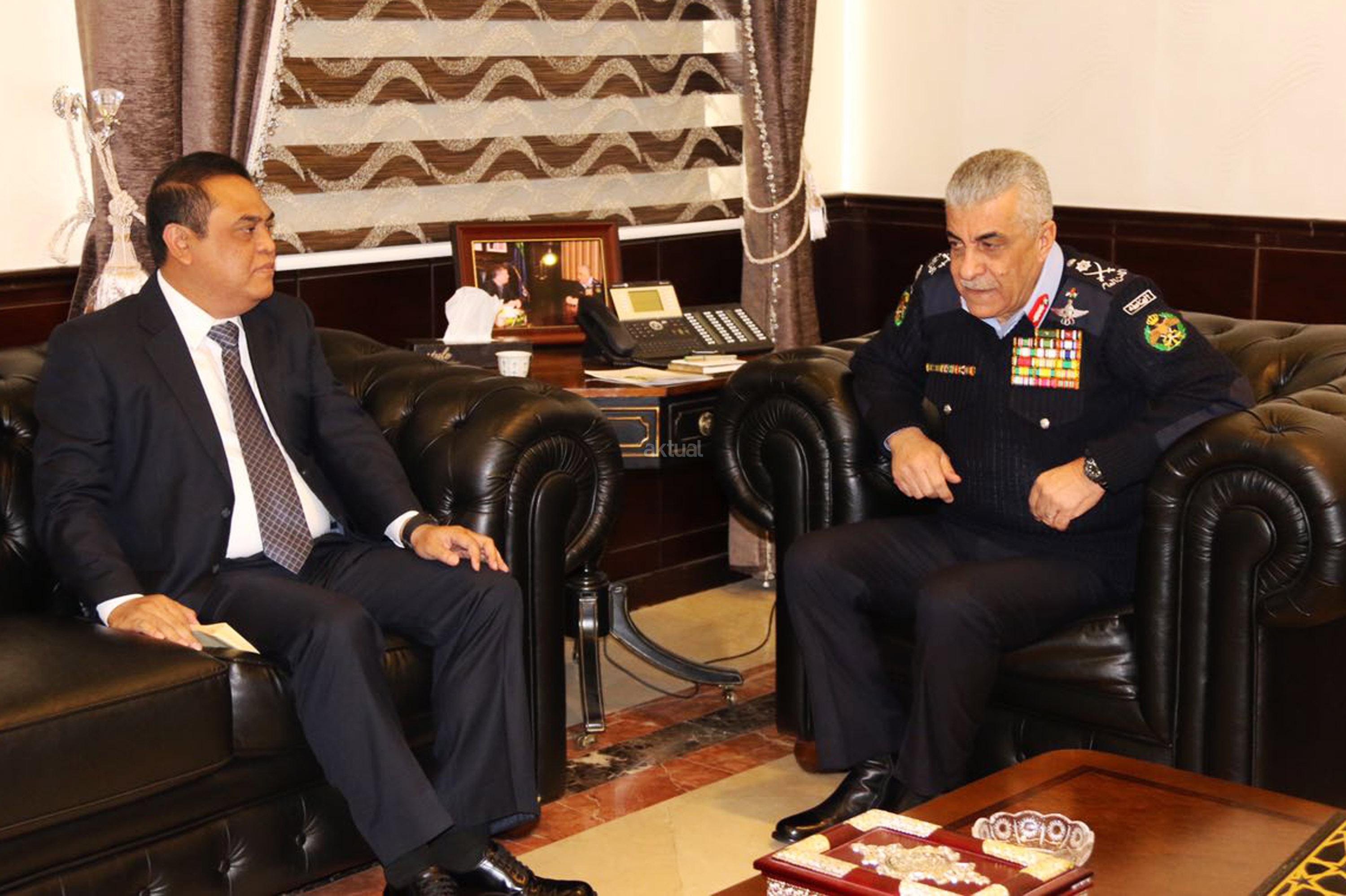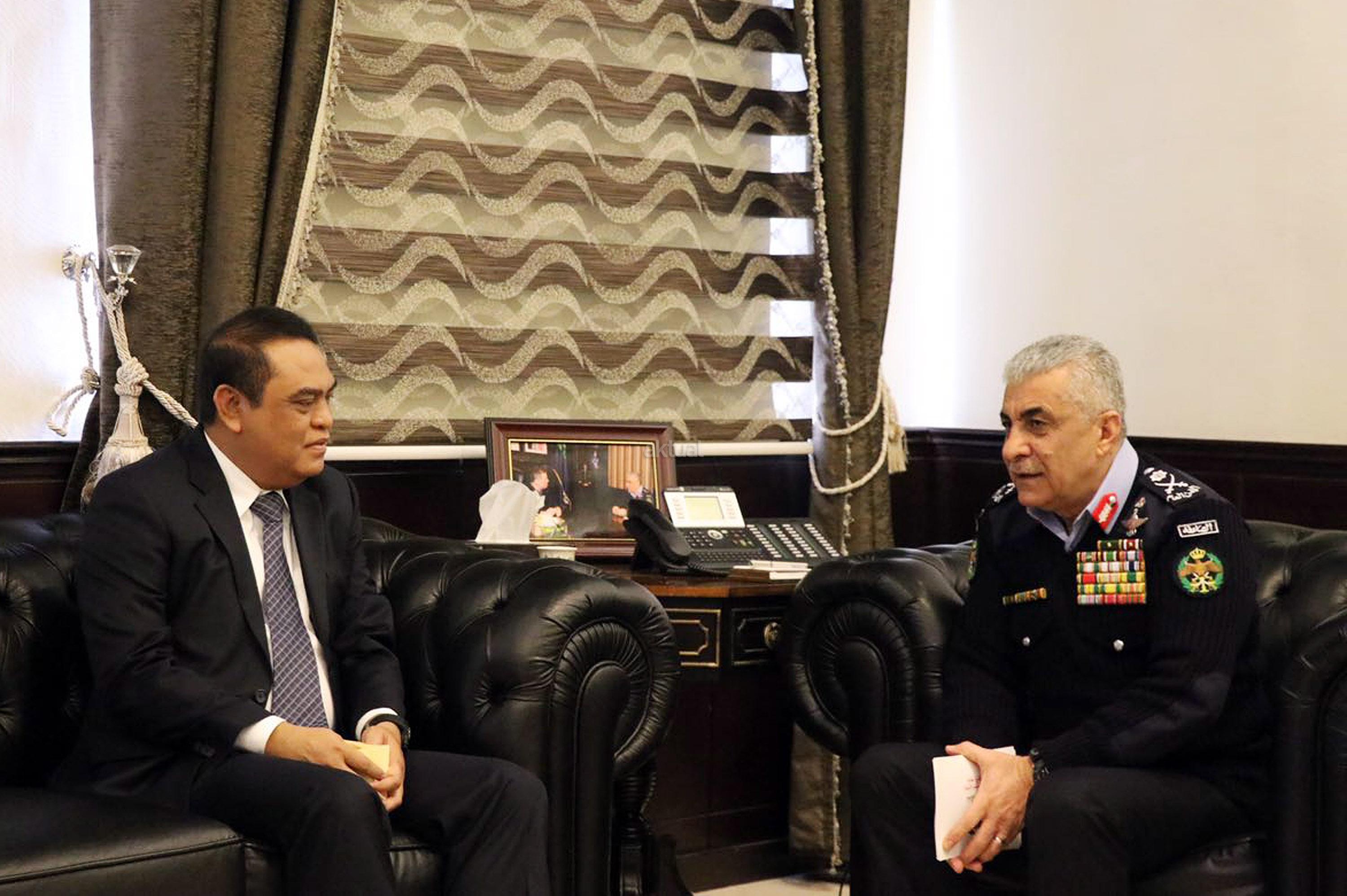 Wakapolri Komjen Pol Syafruddin bertemu dengan Kepala Public Security Departement (PSD) Kerajaan Jordania Mayor Jenderal Ahmad Sarhan Al Faqih saat kunjungan kerja di Jordania, Rabu (18/1/2017). Pertemuan tersebut dilakukan guna membahas kerjasama keamanan antara Indonesia dengan Jordania dalam pencegahan terorisme di kedua negara mengingat Jordania memiliki intelejen keamanan terkuat kedua didunia yang fokus pada keamanan dalam negeri. AKTUAL/HO