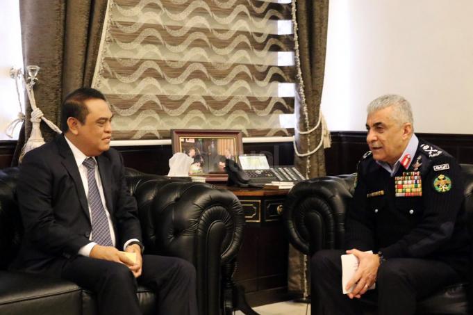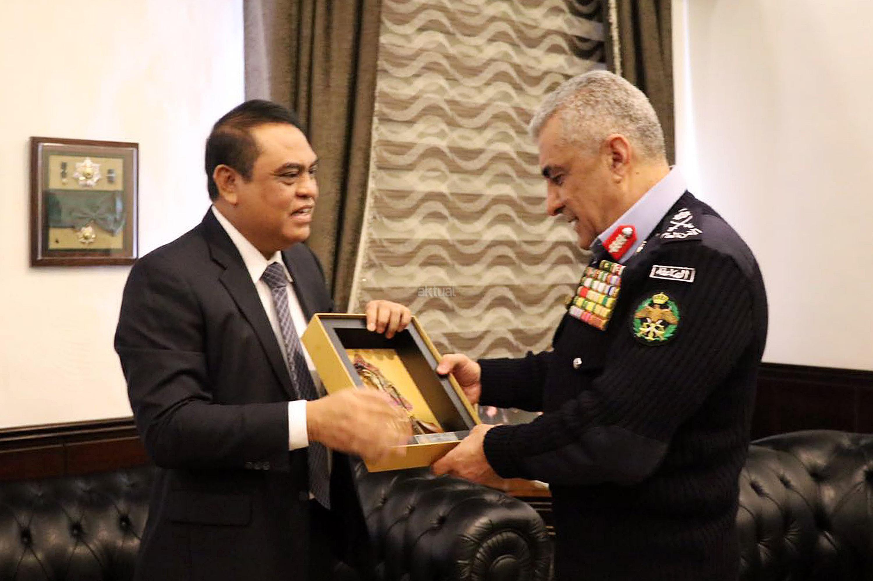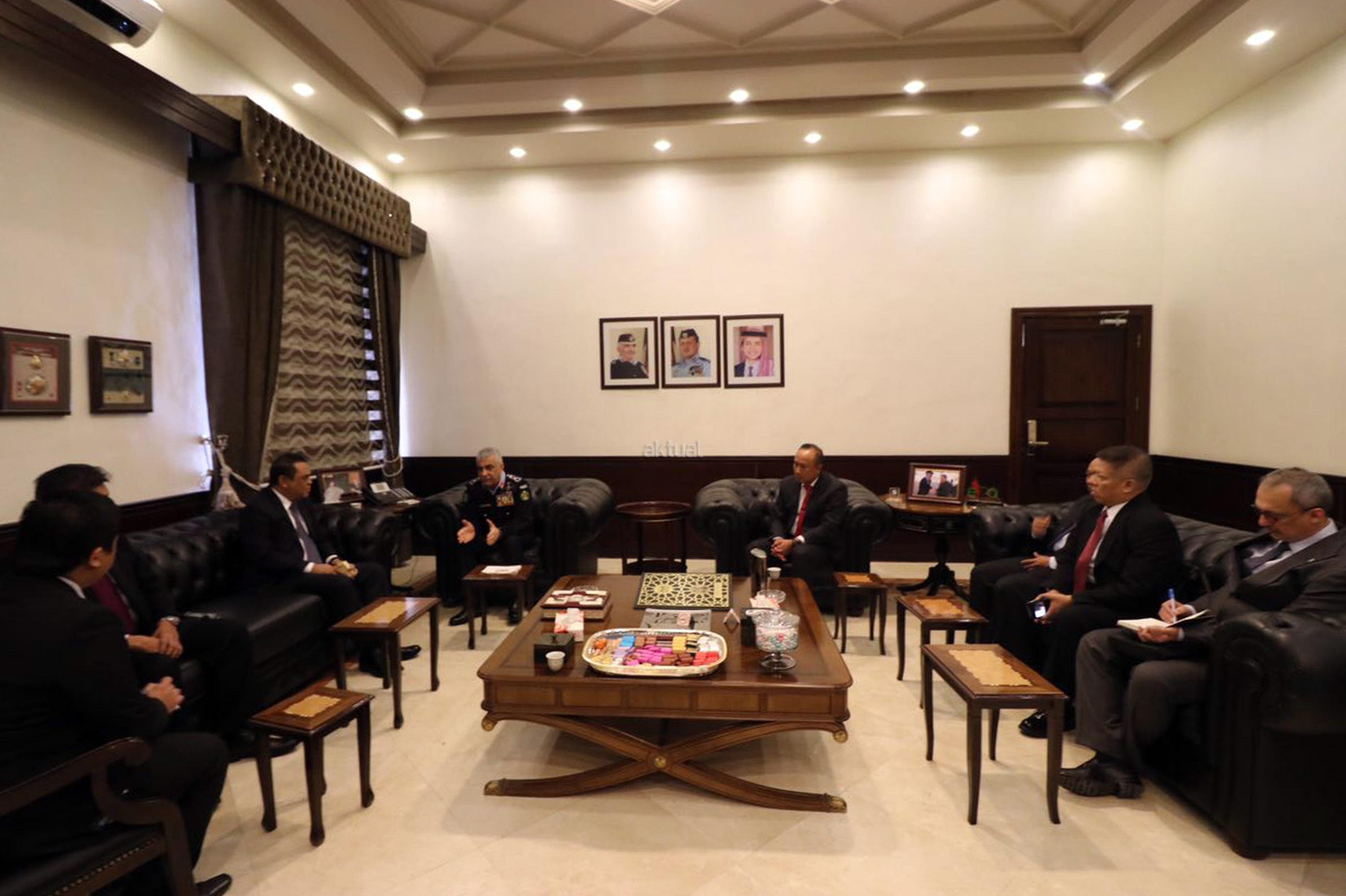 Wakapolri Komjen Pol Syafruddin bertemu dengan Kepala Public Security Departement (PSD) Kerajaan Jordania Mayor Jenderal Ahmad Sarhan Al Faqih saat kunjungan kerja di Jordania, Rabu (18/1/2017). Pertemuan tersebut dilakukan guna membahas kerjasama keamanan antara Indonesia dengan Jordania dalam pencegahan terorisme di kedua negara mengingat Jordania memiliki intelejen keamanan terkuat kedua didunia yang fokus pada keamanan dalam negeri. AKTUAL/HO