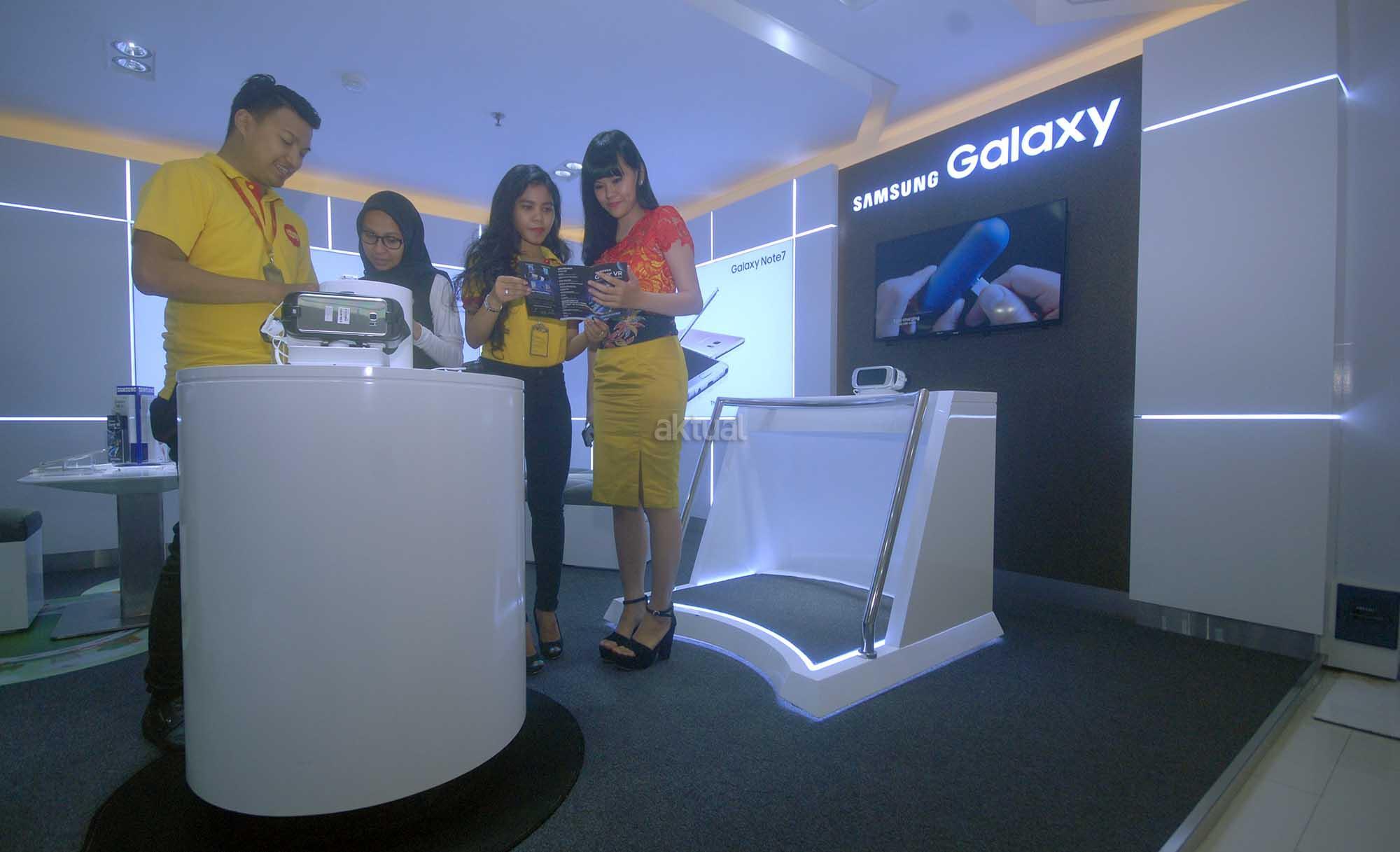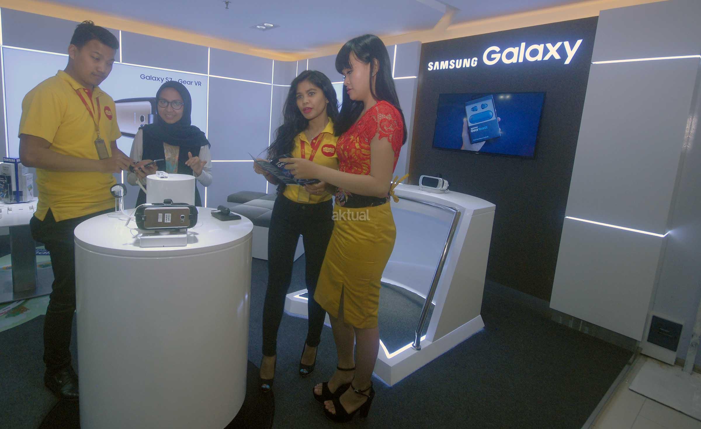 Pengunjung dan pelanggan Indosat di Samsung Galaxy Studio Experience Center pertama dan terlengkap di operator channel di indonesia pada gerai Indosat Ooredoo sarinah,Jakarta, usai pembukaaannya Rabu (5/10). Samsung Galaxy Studio Experience Center yang desain dan tata ruangnya dilengkapi beragam fasilitas bernuansa digital lifestyle experience tersebut, dapat dinikmati pelanggan, seperti layar besar dengan tampilan hiburan video streaming dari iflix serta music streaming melalui spotify pada smartphone samsung dengan stream On.Hal lainnya, layanan yang mengusung konsep one stop service ini menyediakan pula samsung terbaru yang dibundling dengan paket data yang transparan di jaringan tercepat di Indonesia, serta berbagai aplikasi konten digital yang semakin memudahkan pelanggan mengakses dunia digital.