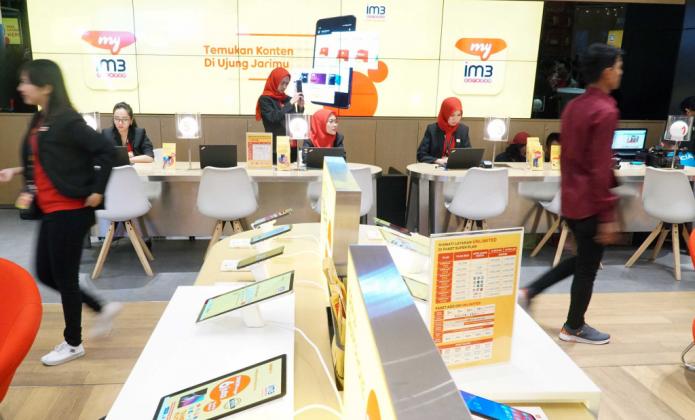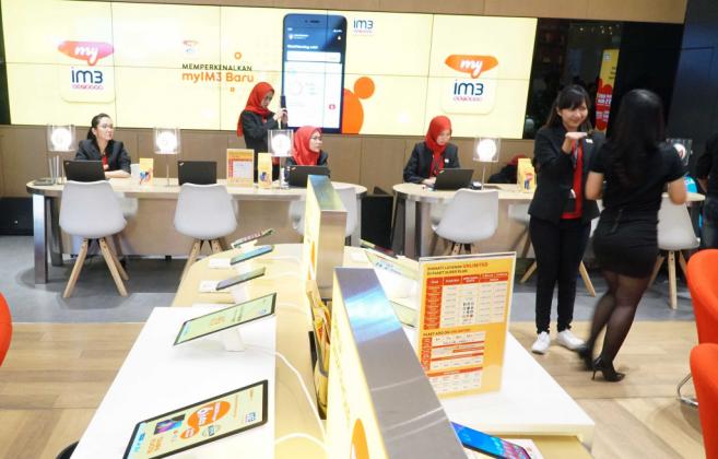 Suasana gerai Indosat Ooredoo dengan konsep digital pertama di Indonesia, di Mall Kota Kasablanka, Jakarta, Kamis (21/2) . AKTUAL/STR-Eko S Hilman