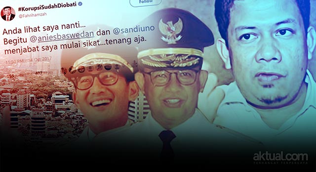 “Anda lihat saya nanti. Begitu @aniesbaswedan dan @sandiuno menjabat saya mulai sikat. Tenang aja,” twitt Fahri melalui akun twitter pribadinya @Fahrihamzah.