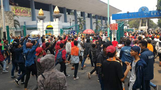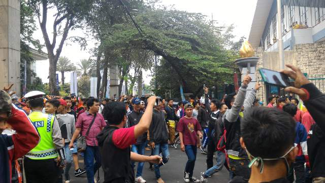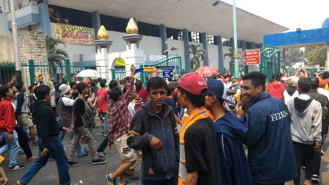 Jakarta, Aktual.com — Ribuan massa yang menggunakan atribut The Jakmania terus berdatangan ke Gelora Bung Karno. Massa yang menggunakan atribut The Jakmania terus memancing keributan kepada suporter Persib, yakni Bobotoh di Pintu VIII Gelora Bung Karno.