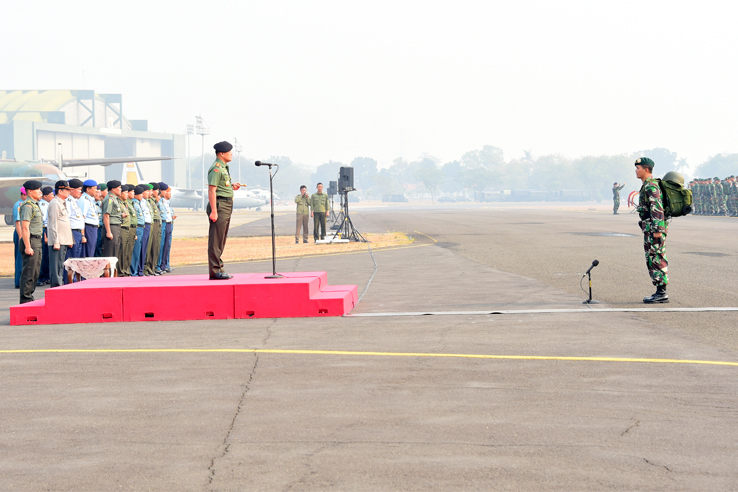Pasukan TNI itu diberangkatkan menggunakan satu pesawat Hercules dan tiga pesawat NC-295. Mereka langsung diberangkatkan melalui Lanud Halim Perdanakusuma, untuk masa penugasan selama 14 hari serta dibekali dengan berbagai perlengkapan untuk penanggulangan kebakaran dan asap.