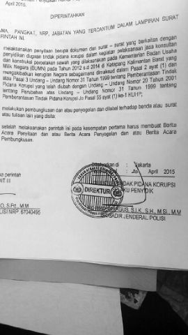 Direktorat Tindak Pidana Korupsi (Dittipikor) Bareskrim Polri sedang mengusut dugaan korupsi cetak sawah yang terjadi di Kabupaten Ketapang, Kalimantan Barat. Proyek cetak sawah yang diduga fiktif itu merupakan hasil gabungan dari sejumlah perusahaan BUMN yang bernilai Rp 317 miliar. Perusahaan itu antara lain Bank BNI, PT Askes, Pertamina, Pelindo, Hutama Karya, BRI, dan Perusahaan Gas Negara (PGN).