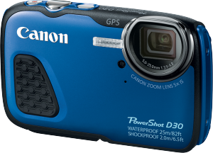Kamera anti-air besutan Canon ini dibekali lensa 12 MP dengan CMOS sensor, video FullHD, dan GPS. Ia diklaim dapat bertahan hingga kedalaman 25 meter. Berkat fitur HS System, Canon Powershot D30 melahirkan gambar dengan resolusi tetap bagus sekalipun berada di kondisi redup.