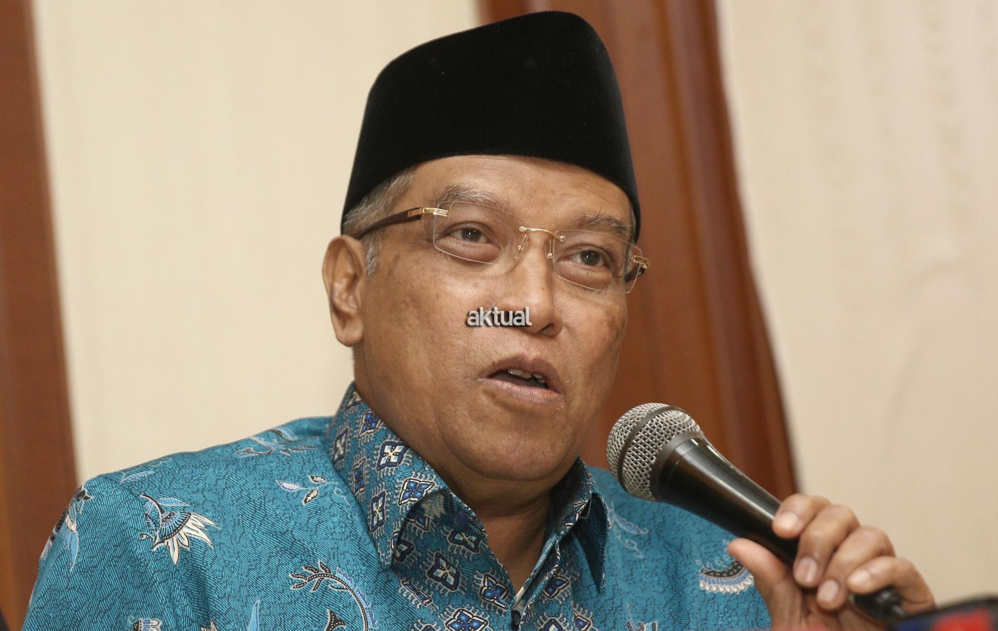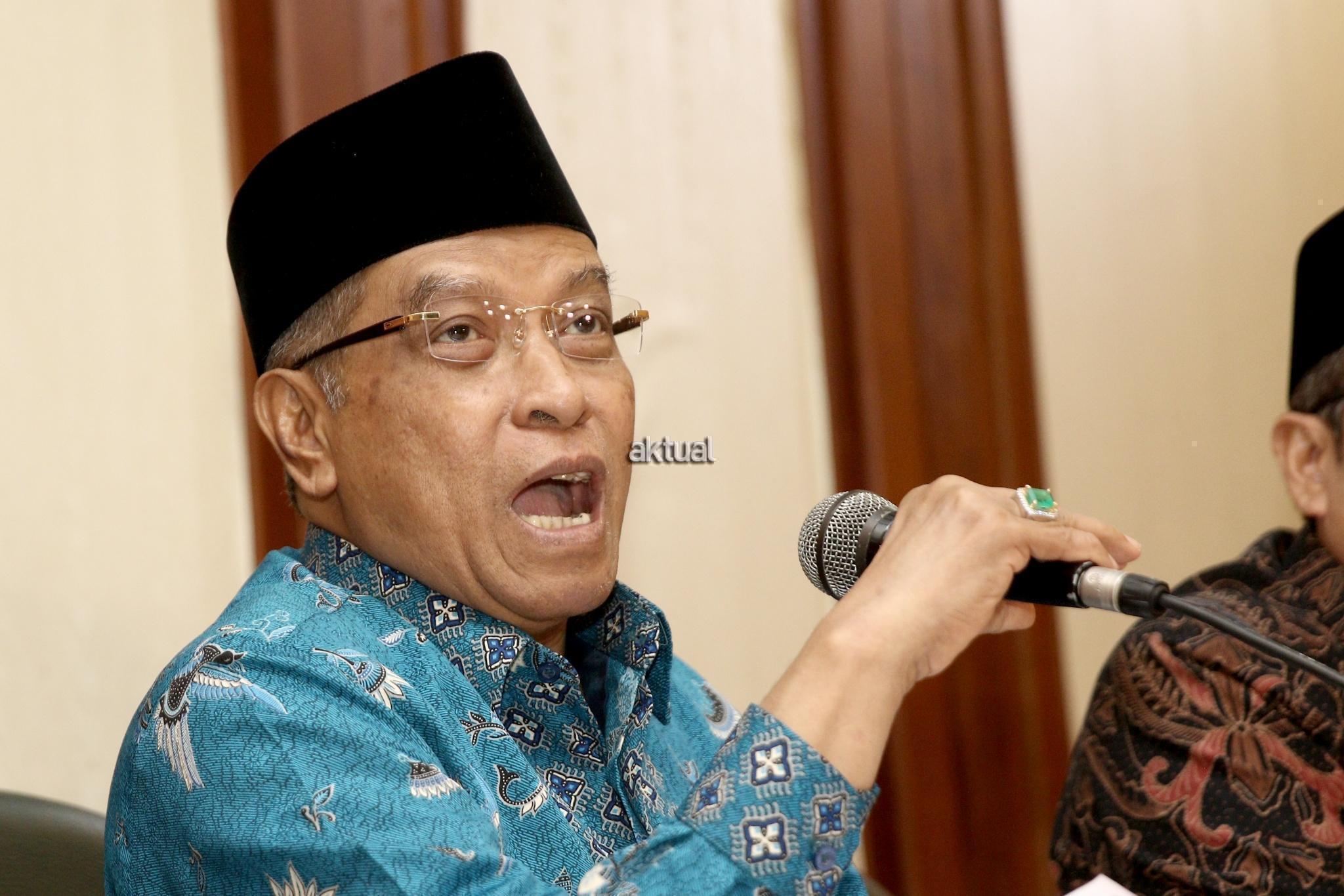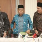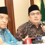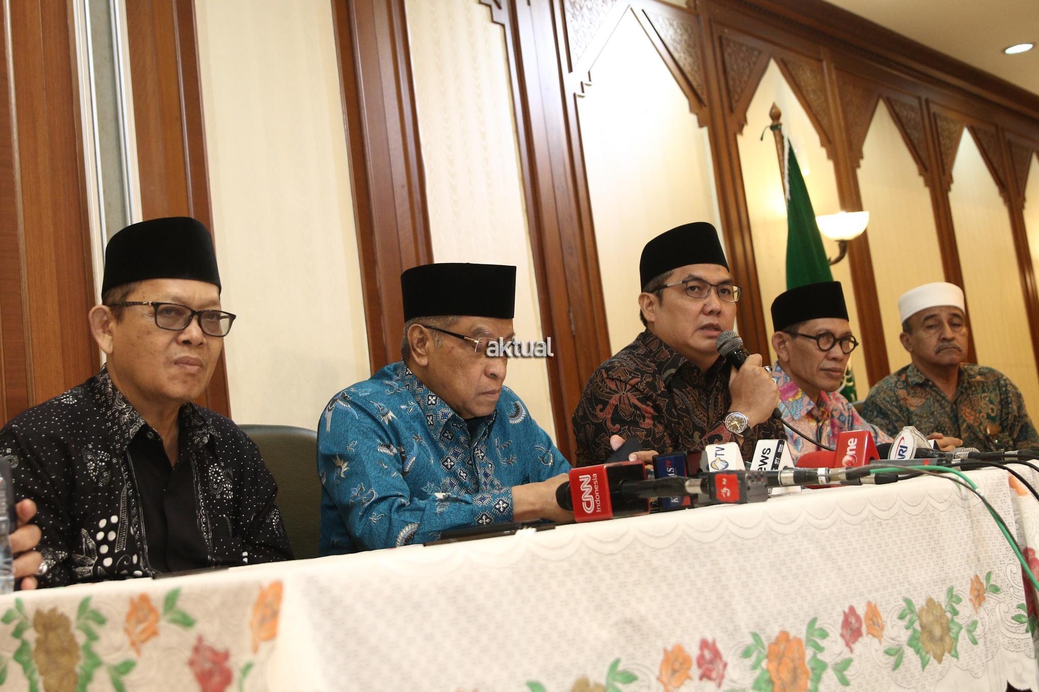 Ketua Umum PBNU KH. Said Aqil Siraj didampingi Waketum PBNU Maksum Mahfudl, Sekjen PBNU Helmy Faisal Zaini saat konferensi pers seputar pembakaran bendera Tauhid di kantor PBNU, Jakarta, Rabu (24/10/2018). PBNU menyatakan sebagai bentuk jaminan atas tegaknya Negara Kesatuan Republik Indonesia (NKRI) maka segala bentuk upaya menuju makar harus ditindak tegas. Menurutnya, berdasarkan temuan tim pencari fakta yang dibentuk PBNU, pengibaran HTI tak cuma terjadi di Garut. AKTUAL/Tino Oktaviano