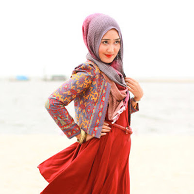 “Untuk kali ini aku coba bermain dengan warna gradasi. Tapi, kalau untuk bahannya, aku gunakan bahan sifoen, karena yang nyaman untuk digunakan saat Muslimah beribadah, ” urainya sedikit berpromosi.