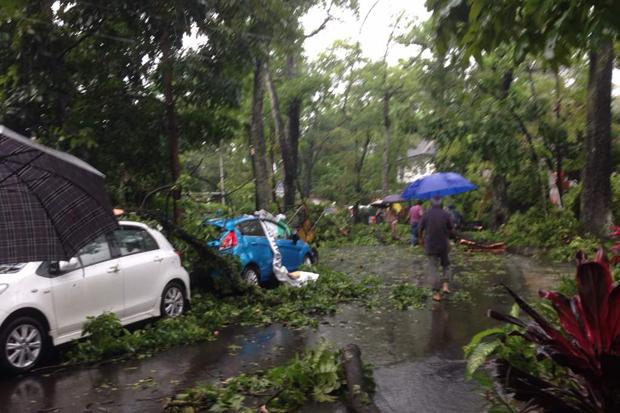 Adapun mobil yang terkena pohon tumbang yakni Honda Mobilio B 1977 NOB, Daihatsu Xenia B 1323 UIP, Daihatsu Sirion B 1743 WOP, Toyota Avanza B 2201 TB, Daihatsu Terios B 1531 TW, Toyota Kijang Kapsul B 1502 EMN dan Toyota Yaris B 1400 TIM.