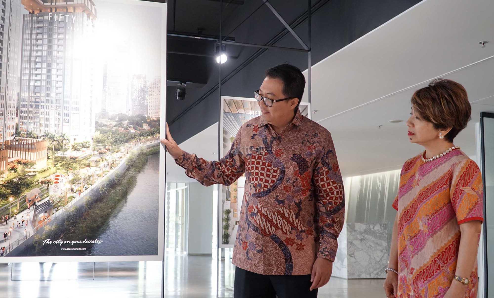 Direktur Pengelolaan Modal dan Investasi Intiland Archied Noto (kiri) bersama Direktur Pemasaran Intiland Susan Pranata melihat gambar maket Fifty Seven Promenade disela-sela soft launching proyek tersebut di Jakarta, Selasa (22/8/2017). Fifty Seven Promenade meliliki area pengembangan seluas 3,2 hektar yang menyediakan beragam fungsi seperti kondominium, perkantoran, apartemen servis, dan area ritel promenade. AKTUAL/Eko S Hilman