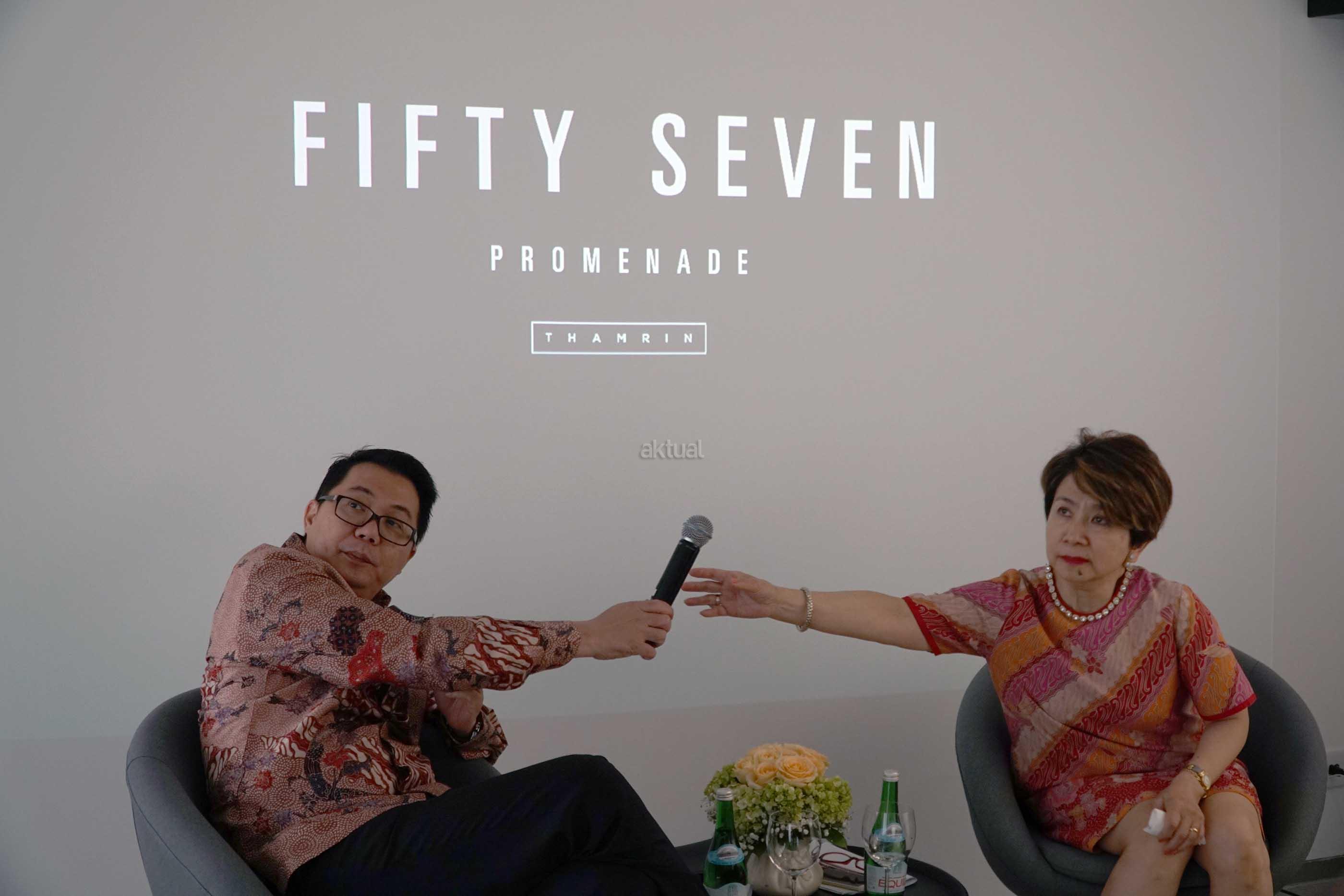 Direktur Pengelolaan Modal dan Investasi Intiland Archied Noto (kiri) bersama Direktur Pemasaran Intiland Susan Pranata saat jumpa pers disela-sela soft launching proyek tersebut di Jakarta, Selasa (22/8/2017). Fifty Seven Promenade meliliki area pengembangan seluas 3,2 hektar yang menyediakan beragam fungsi seperti kondominium, perkantoran, apartemen servis, dan area ritel promenade.