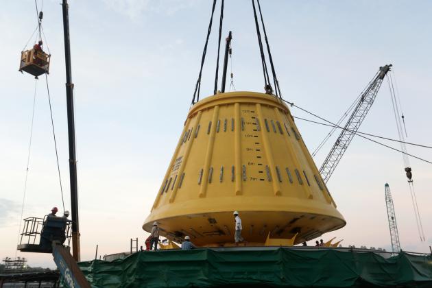 Pekerja menyelesaikan pengerjaan alat untuk pengeboran minyak lepas pantai (bouya) di salah satu perusahaan di Batam, Kepulauan Riau, Sabtu (12/3). Realisasi investasi asing di Kawasan Perdagangan Bebas dan Pelabuhan Bebas Batam menurun pada tahun 2015 hanya 86,65 juta dolar AS turun dari tahun sebelumnya yang mencapai 156,90 juta dolar AS. ANTARA FOTO/M N Kanwa/nz/16.