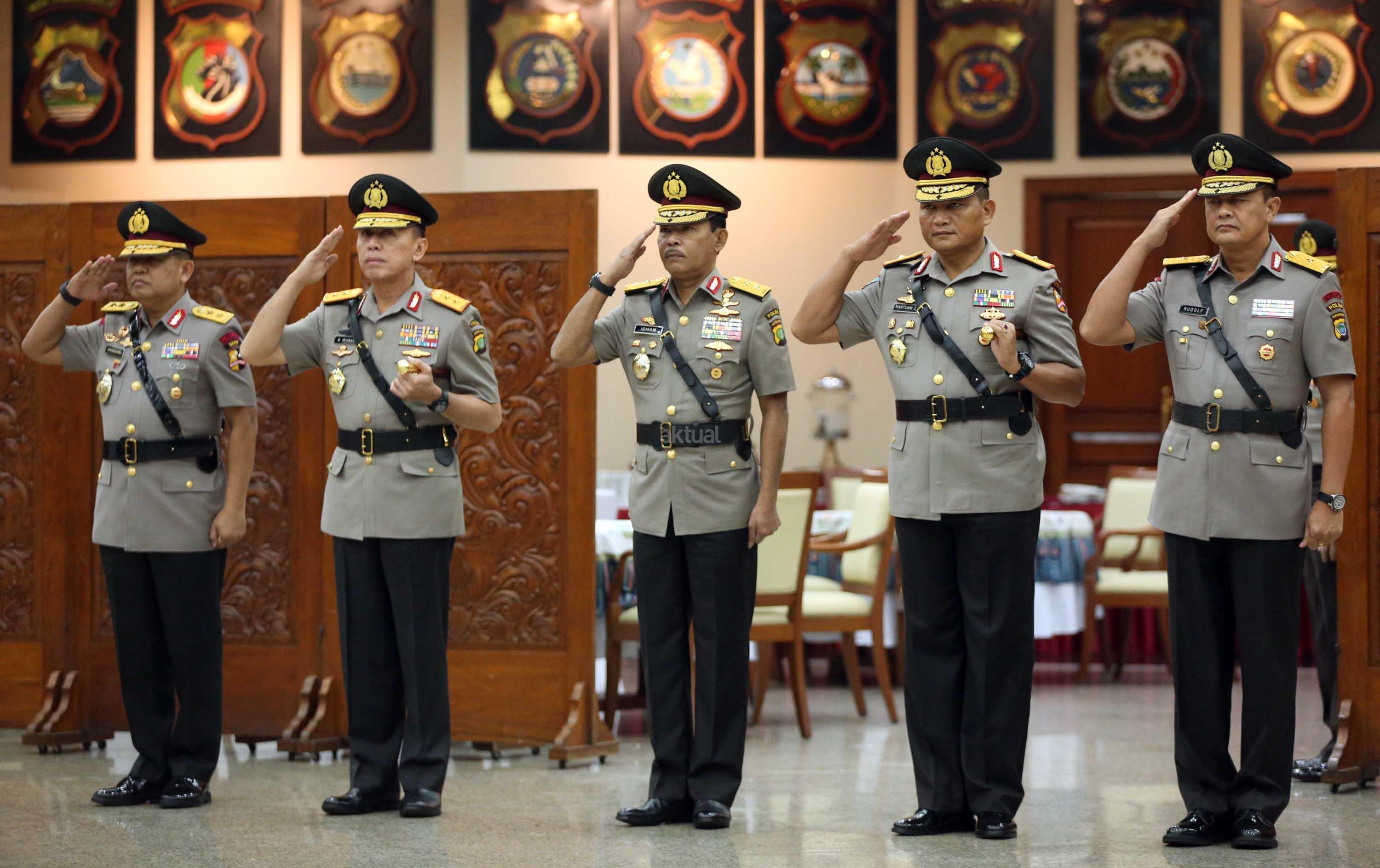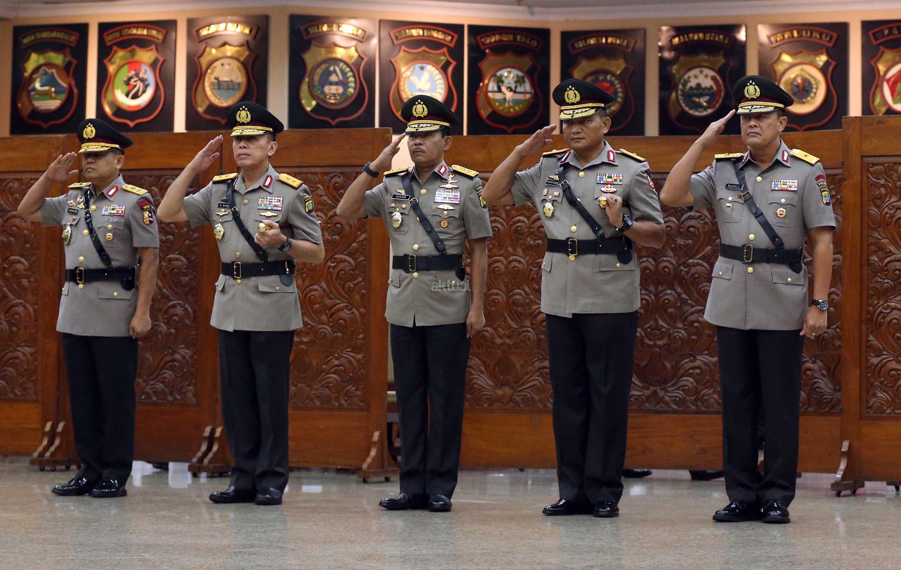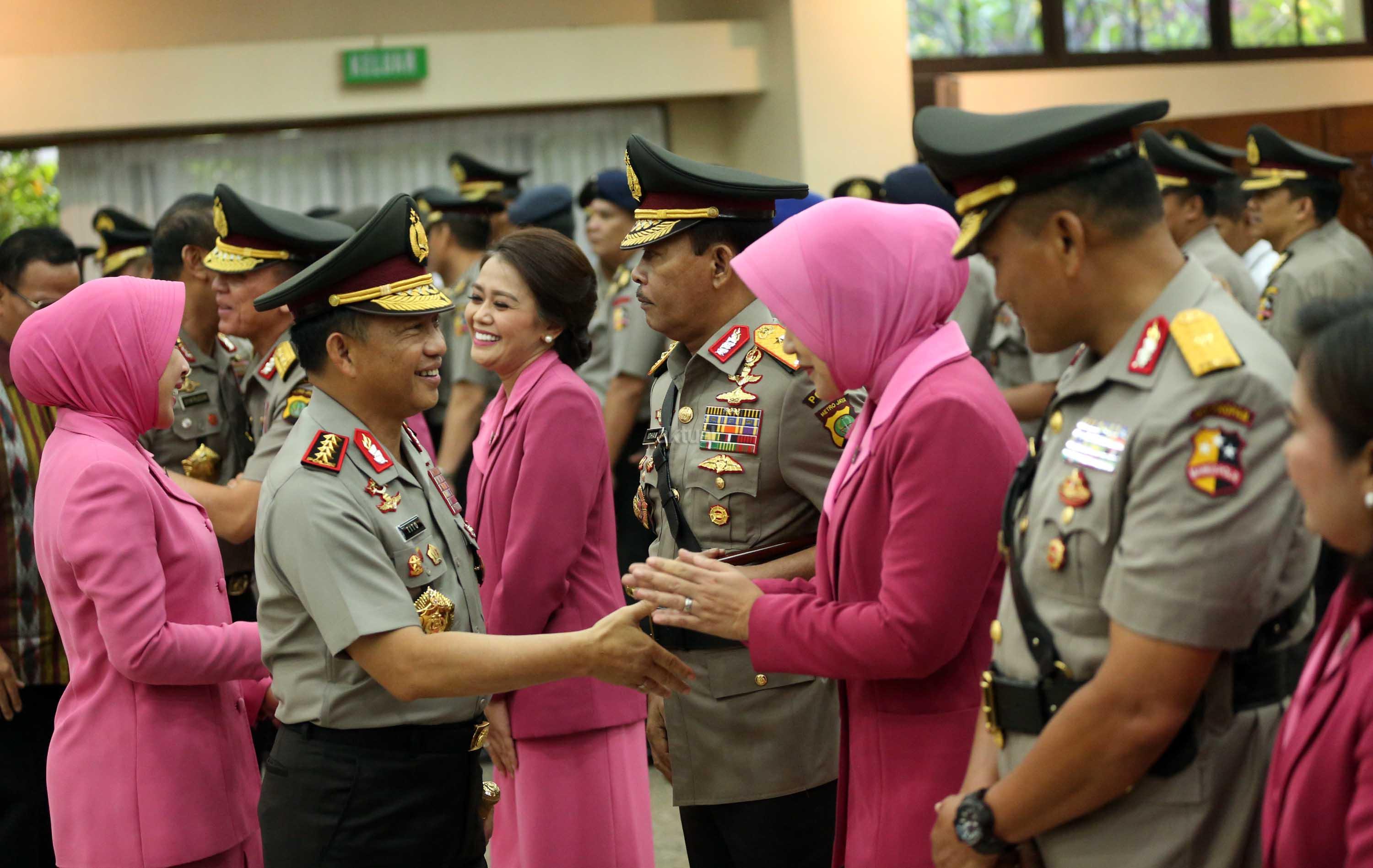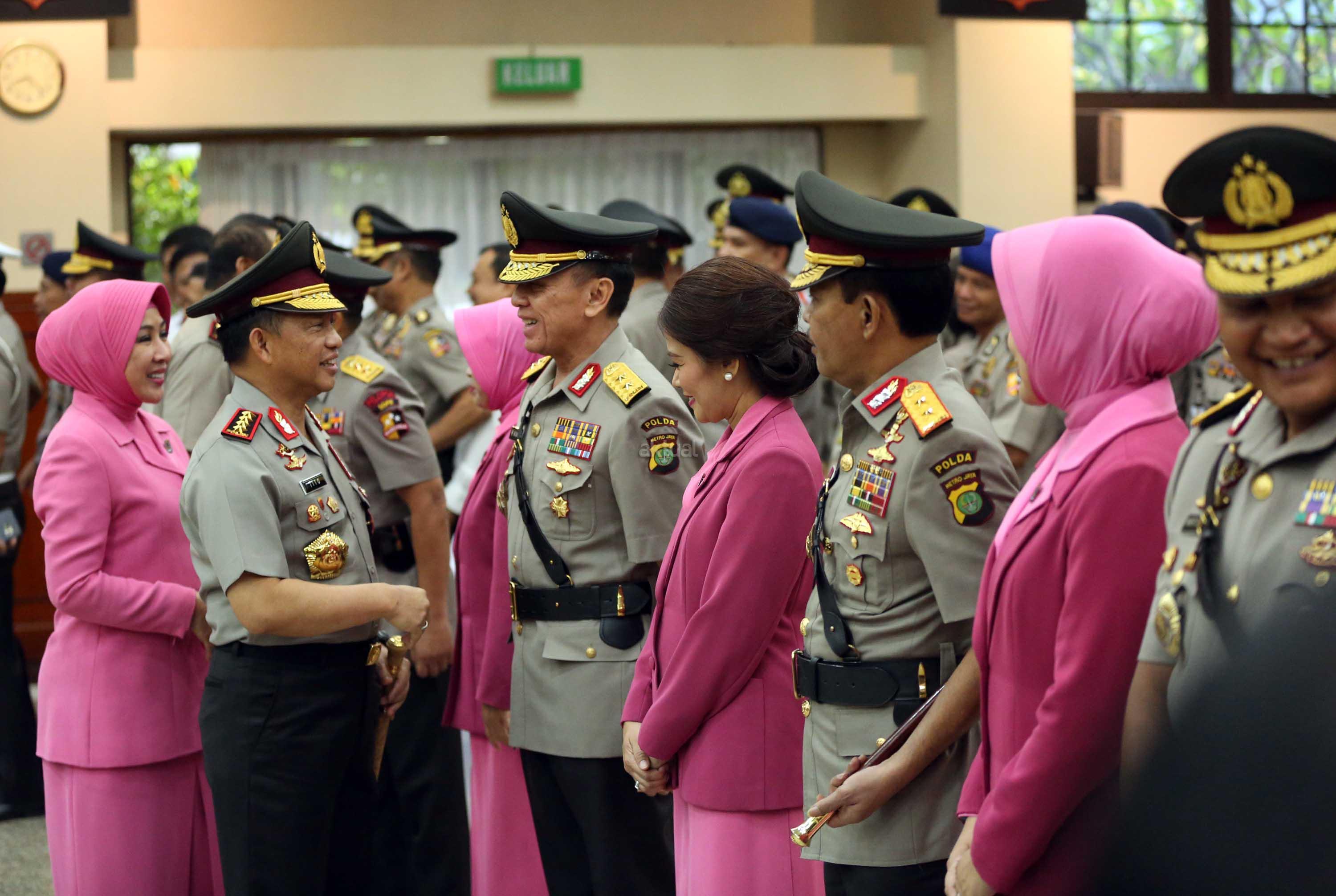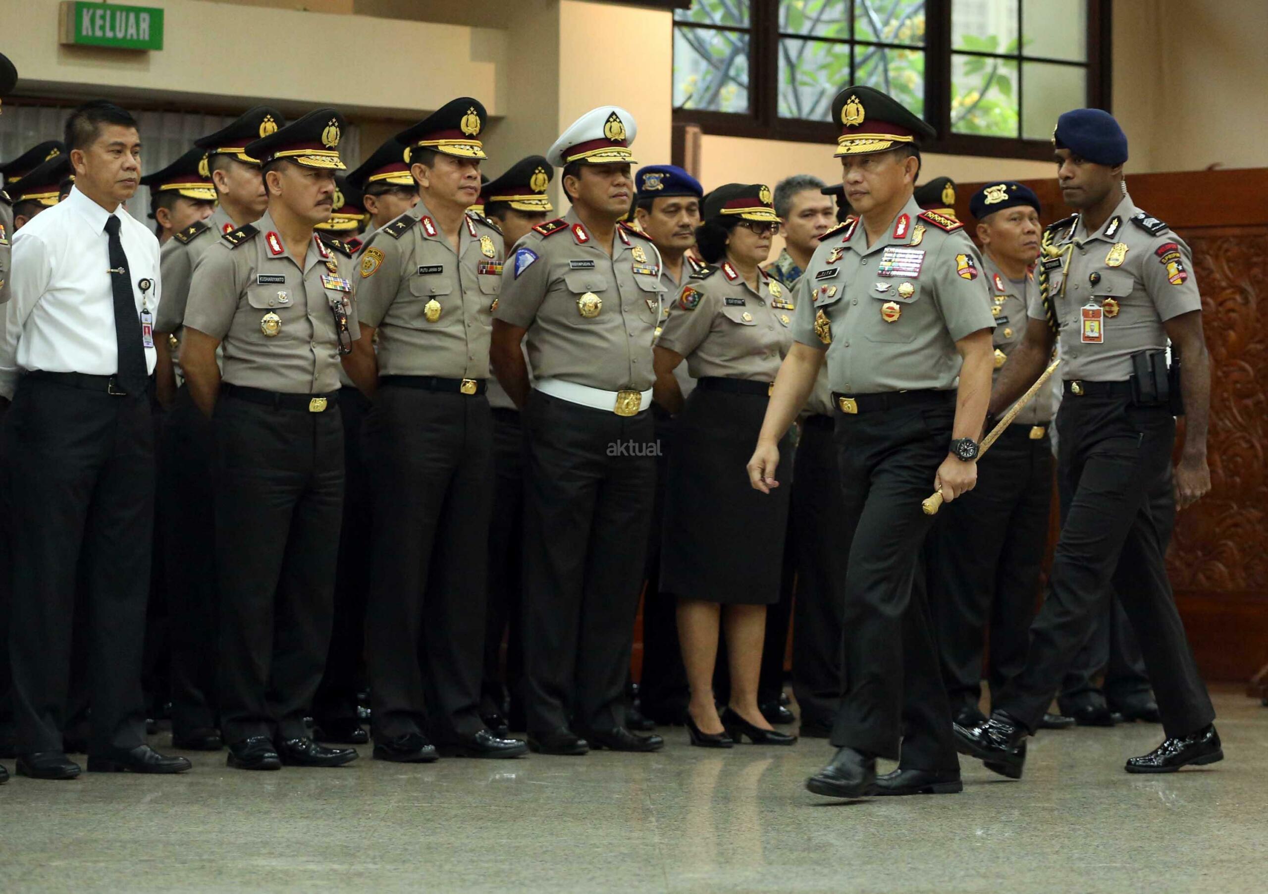 Kapolri Jenderal Tito Karnavian bersiap memimpin acara serah terima jabatan (sertijab) Kapolda Metro Jaya di Rupatama Mabes Polri, Rabu (26/7). Inspektur Jenderal (Irjen) Idham Aziz resmi menjabat sebagai Kapolda Metro Jaya. AKTUAL/Tino Oktaviano